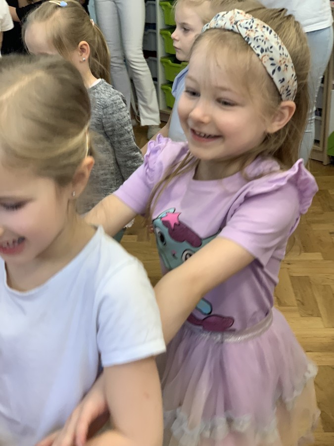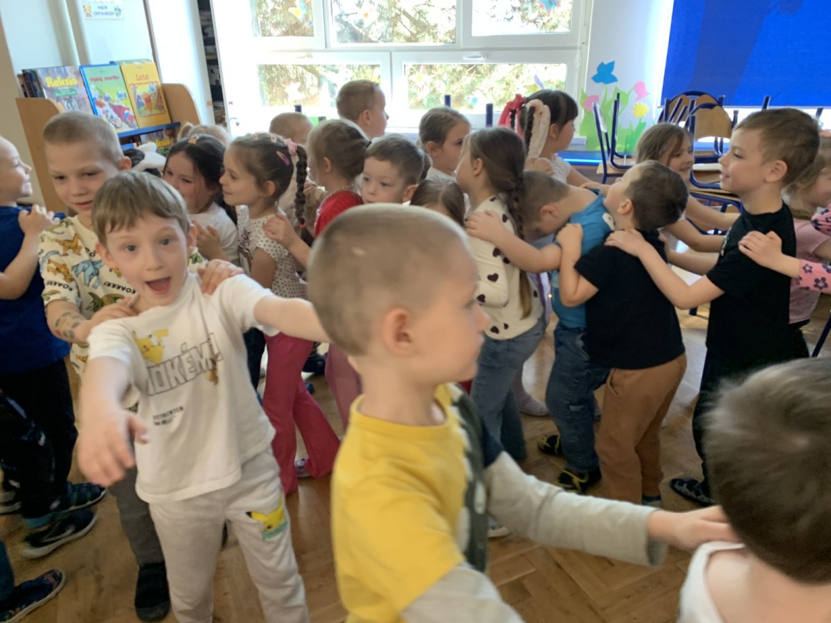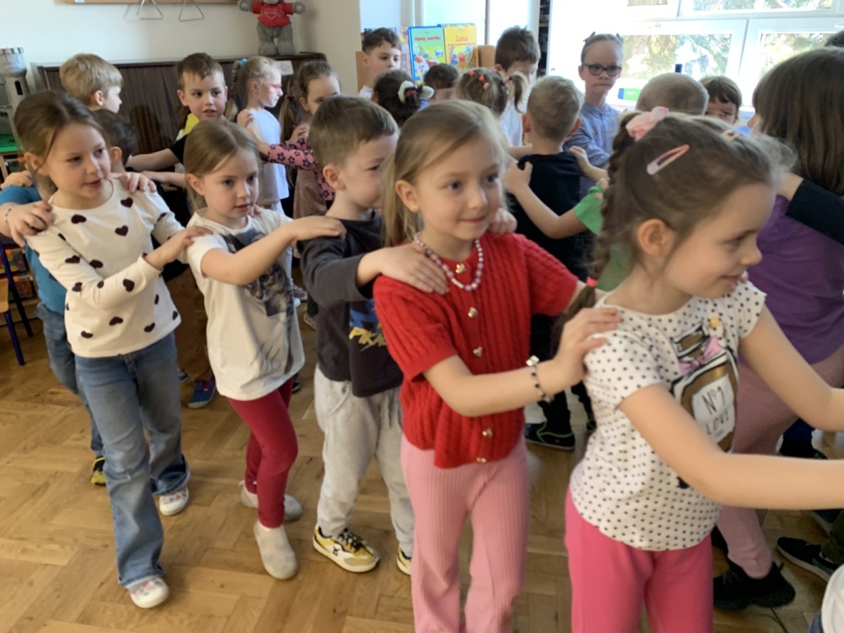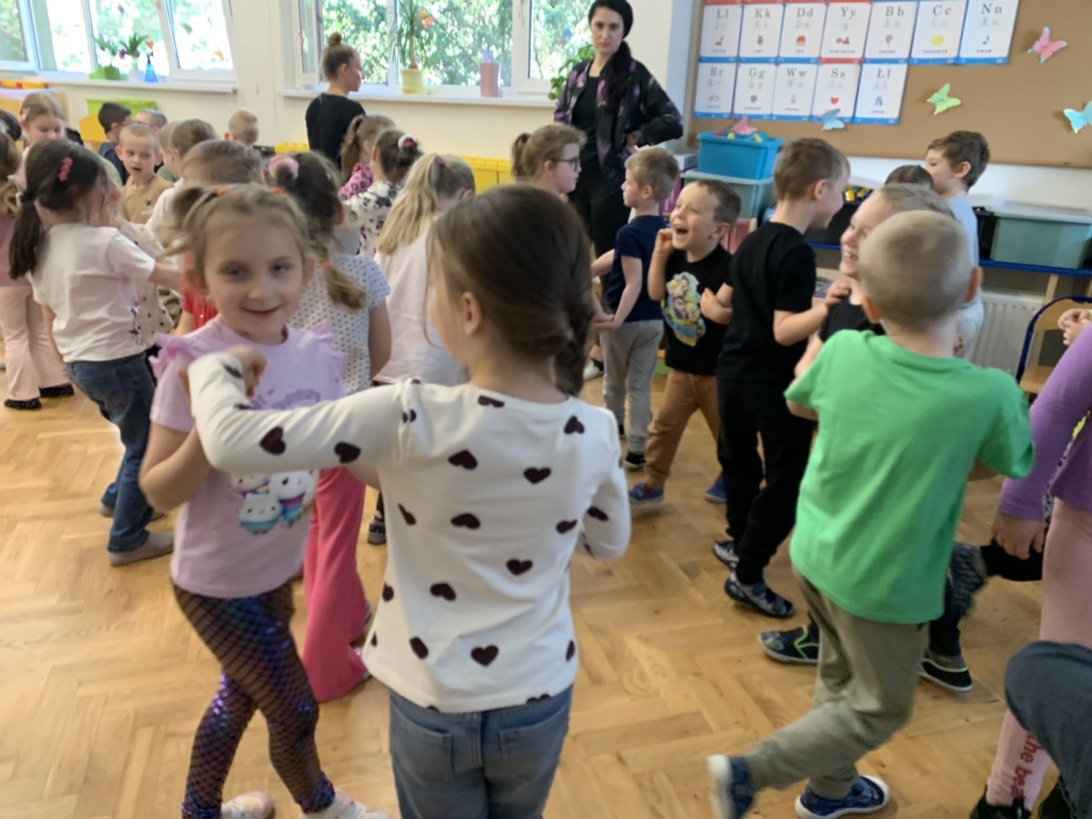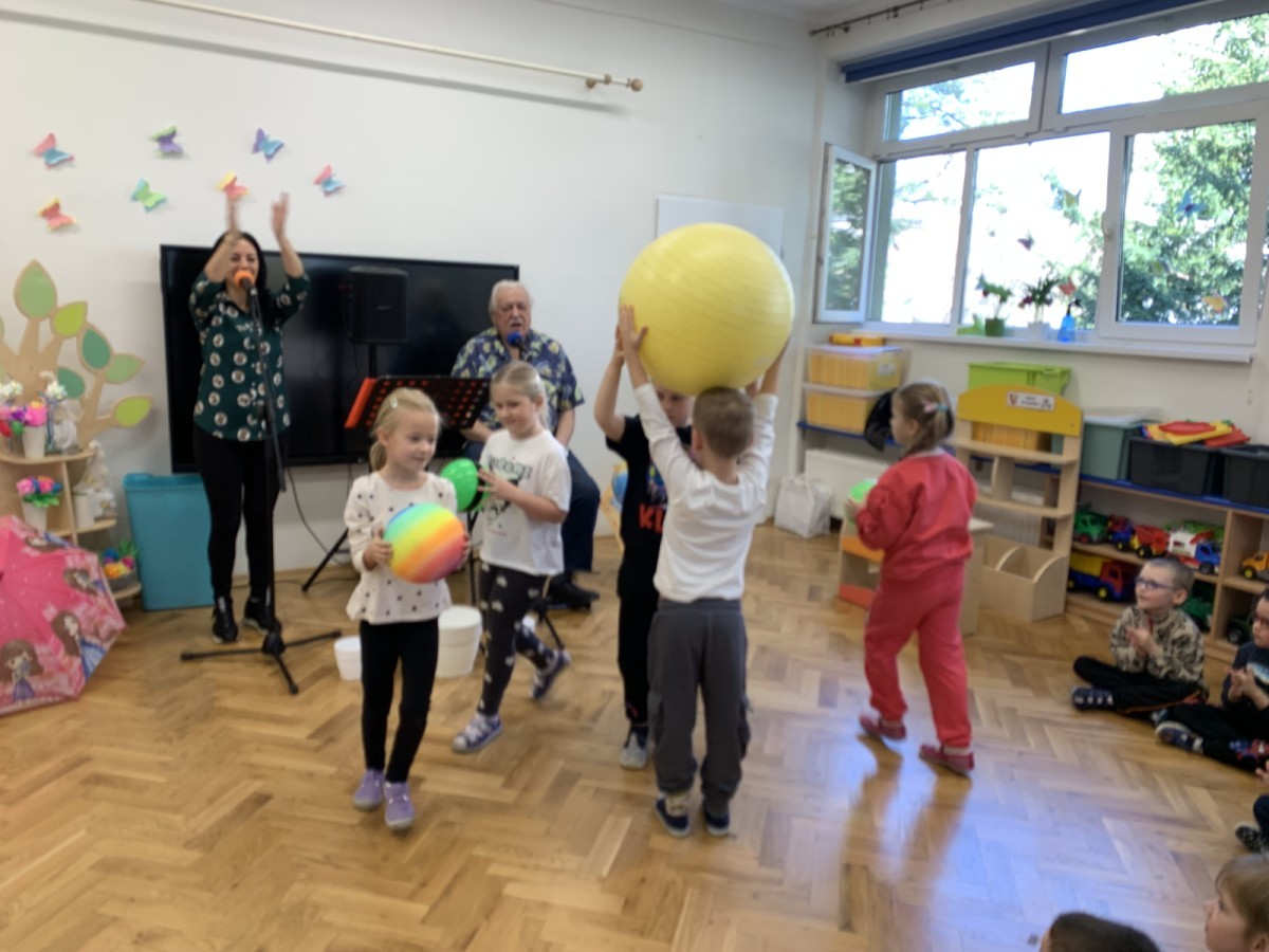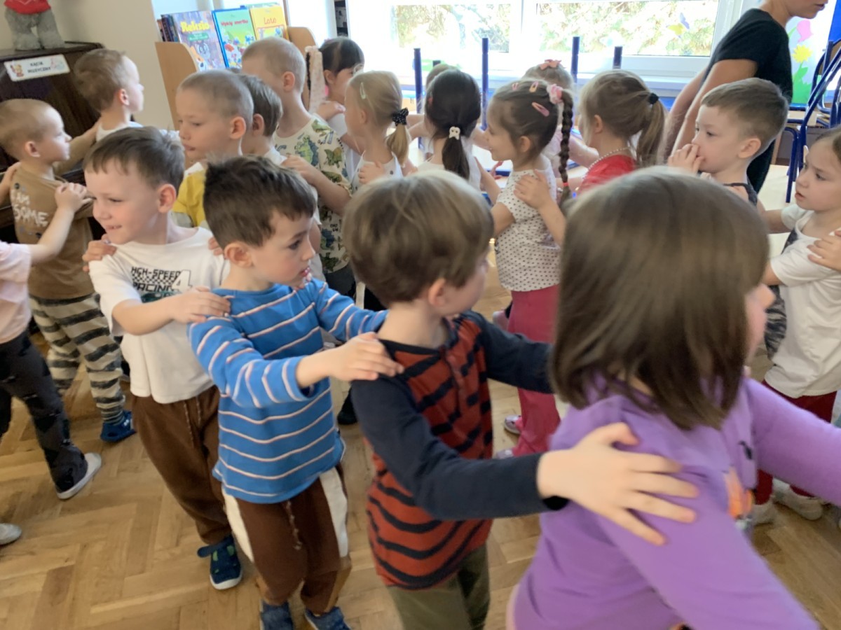 Przedszkolaki z ogromnym zaangażowaniem brały udział w zabawie – śpiewały, klaskały i poruszały się w rytm muzyki. Na twarzach dzieci nie brakowało uśmiechów, a cała sala wypełniła się pozytywną energią 😊✨