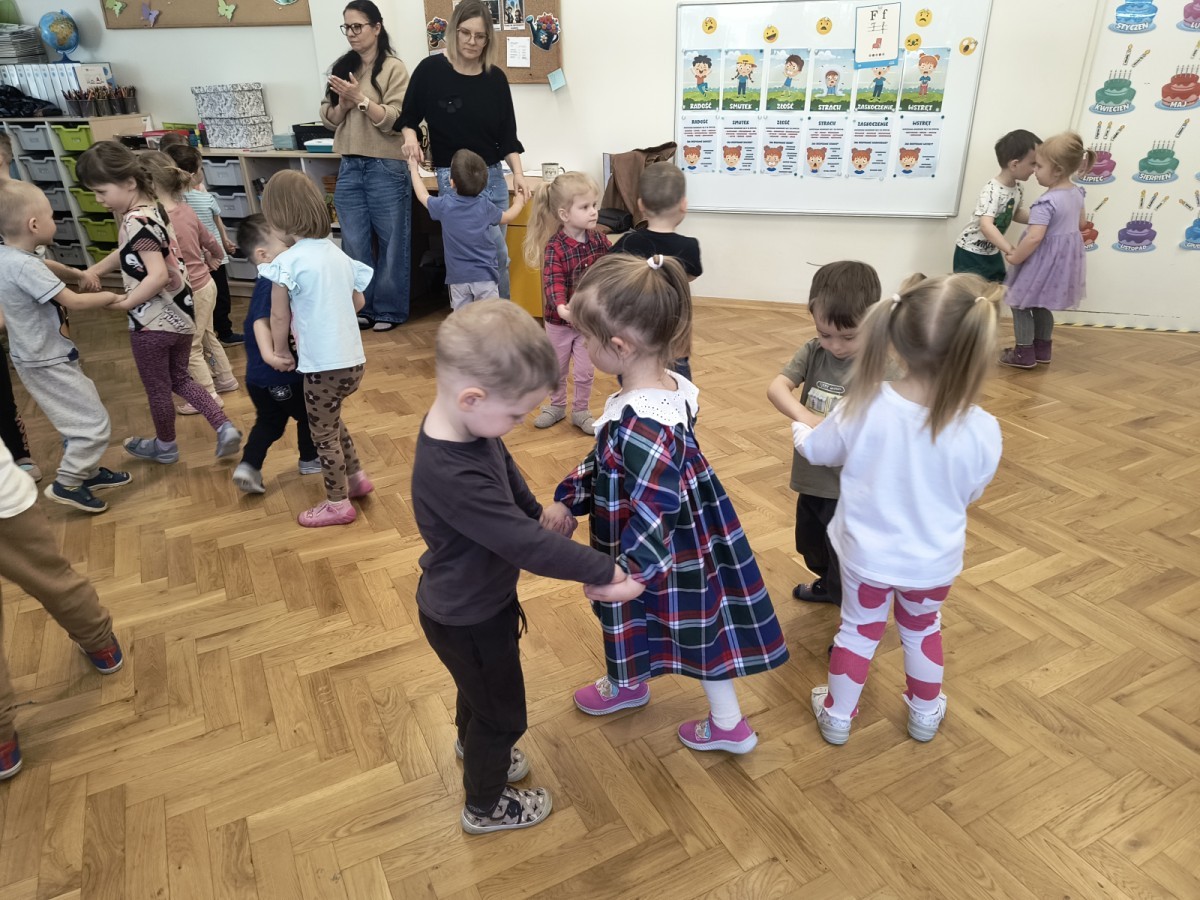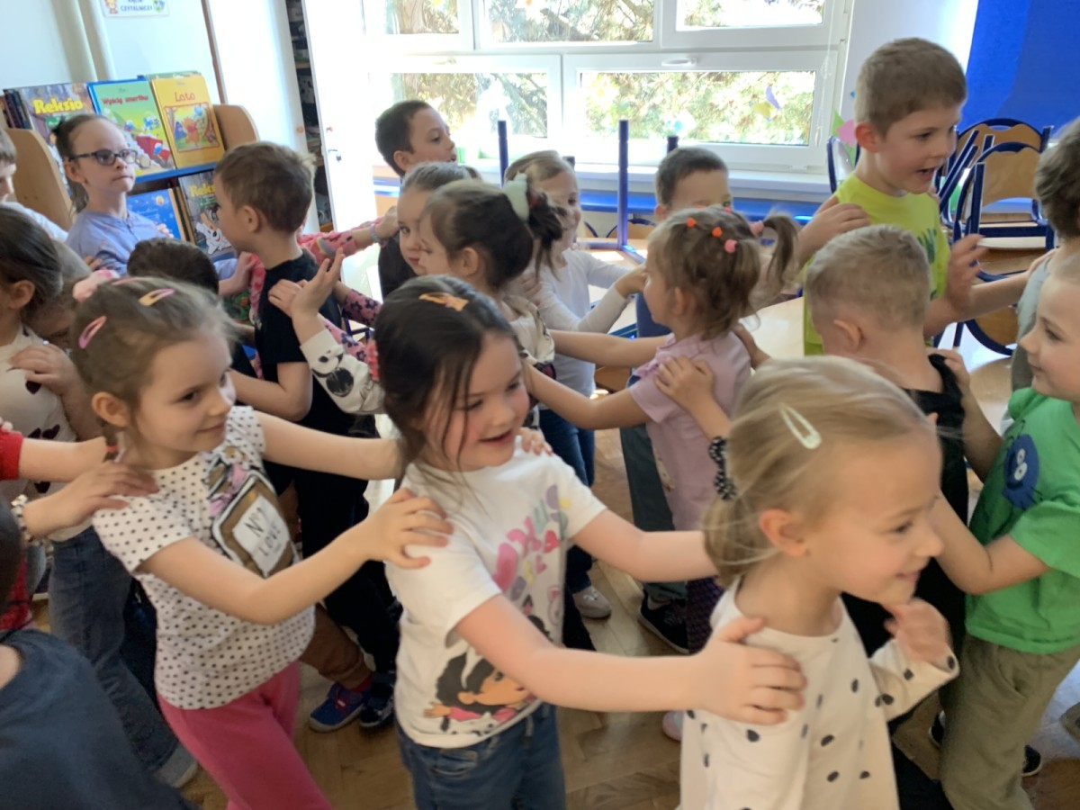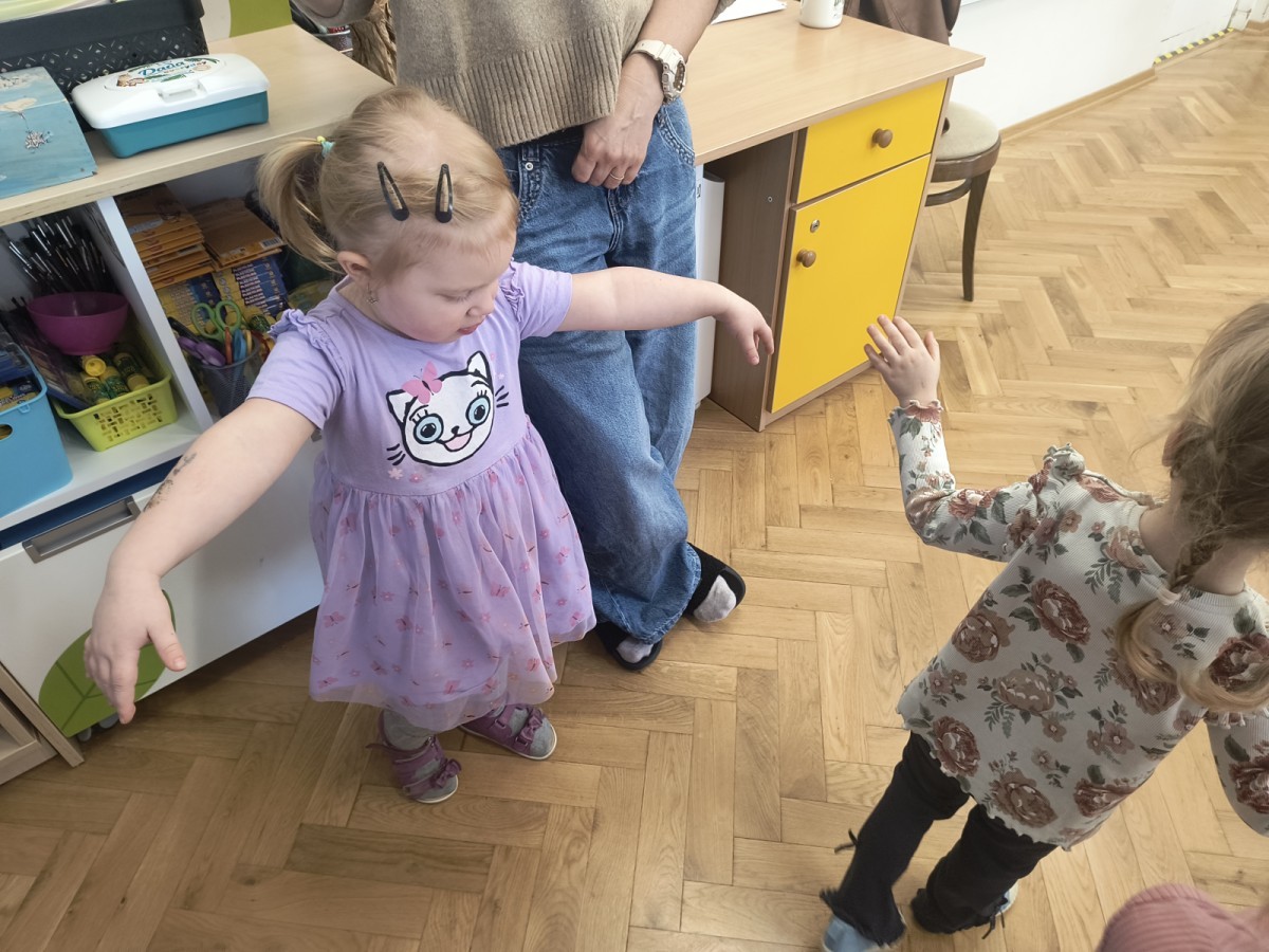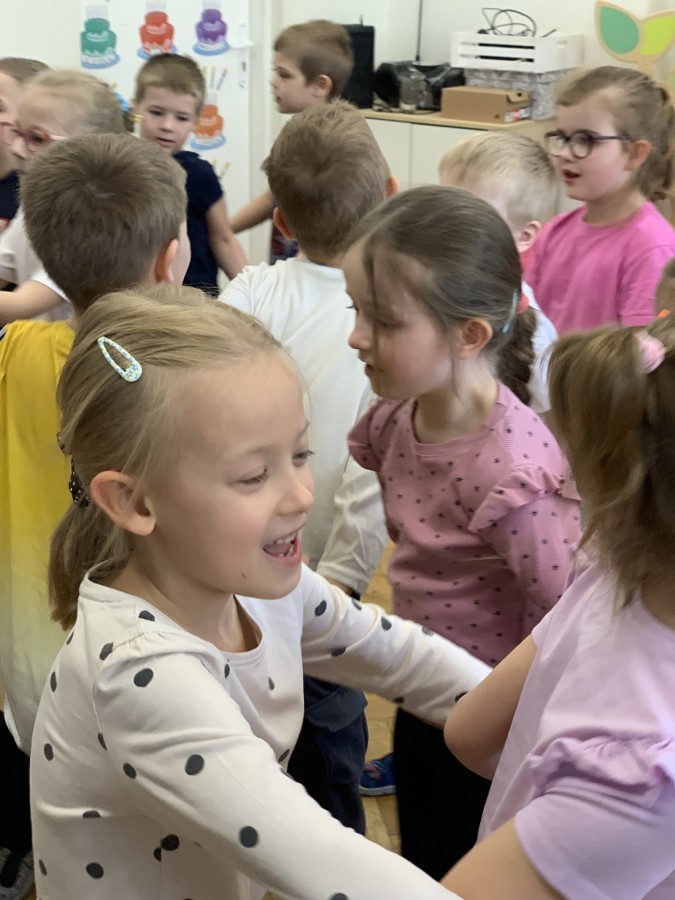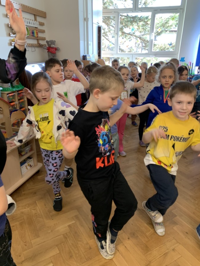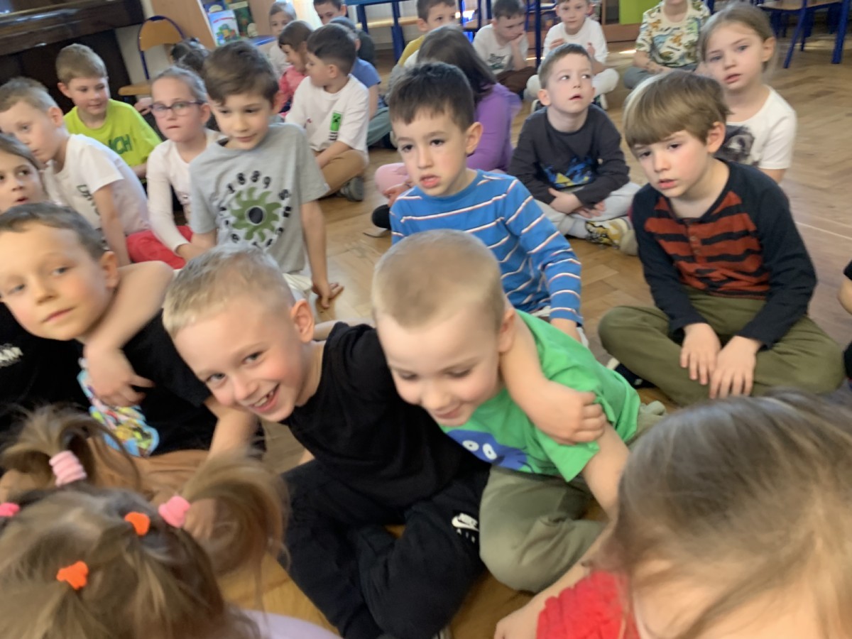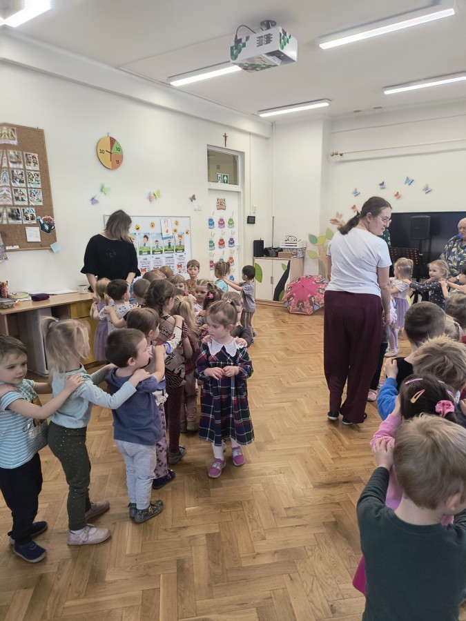 Przedszkolaki z ogromnym zaangażowaniem brały udział w zabawie – śpiewały, klaskały i poruszały się w rytm muzyki. Na twarzach dzieci nie brakowało uśmiechów, a cała sala wypełniła się pozytywną energią 😊✨