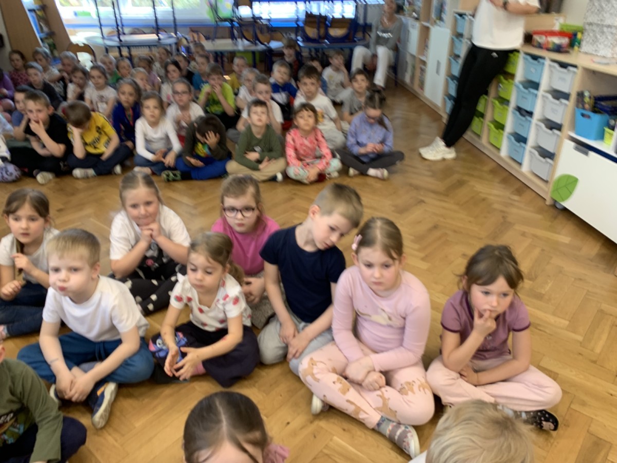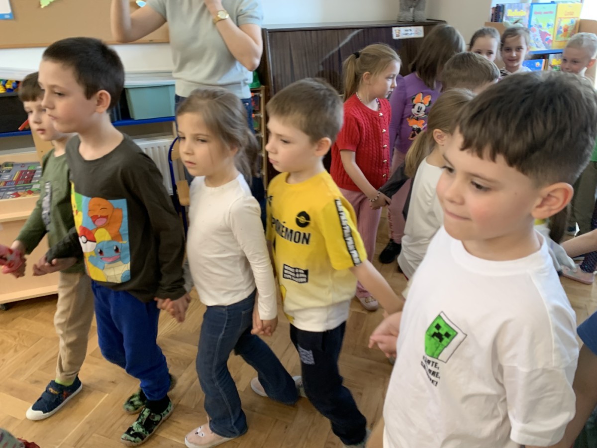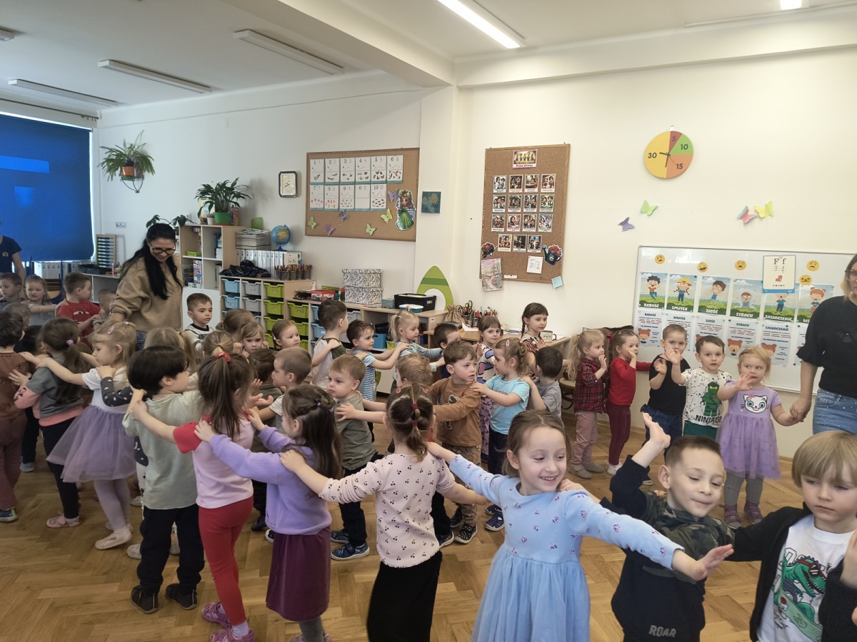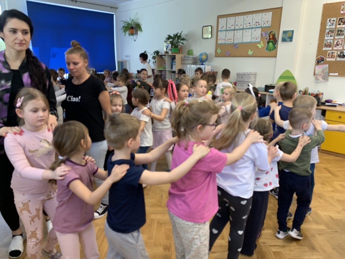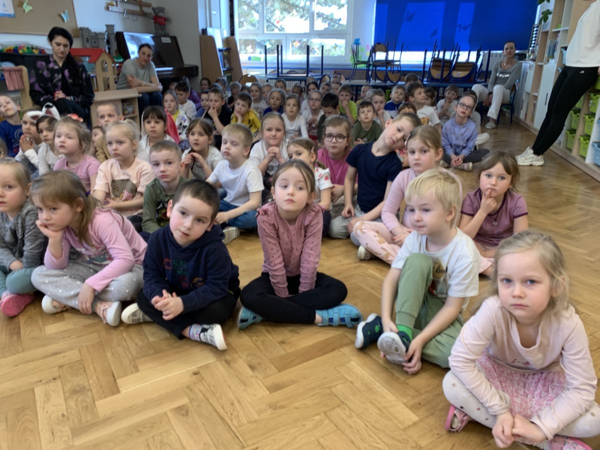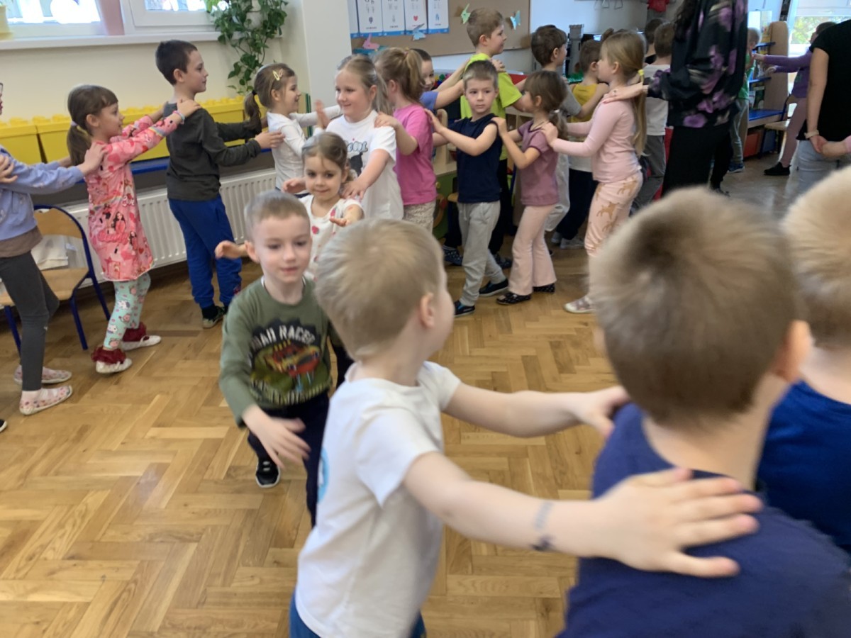 Przedszkolaki z ogromnym zaangażowaniem brały udział w zabawie – śpiewały, klaskały i poruszały się w rytm muzyki. Na twarzach dzieci nie brakowało uśmiechów, a cała sala wypełniła się pozytywną energią 😊✨