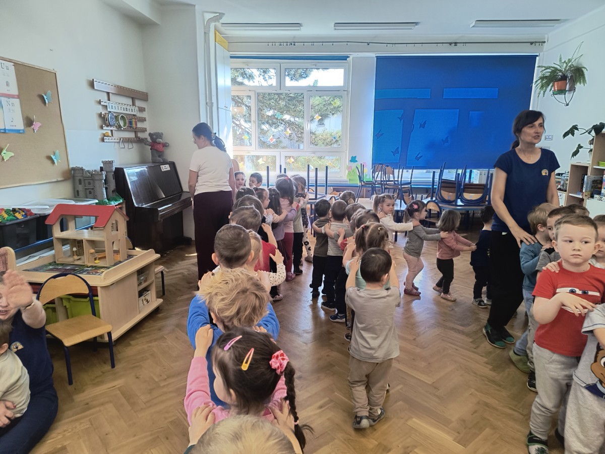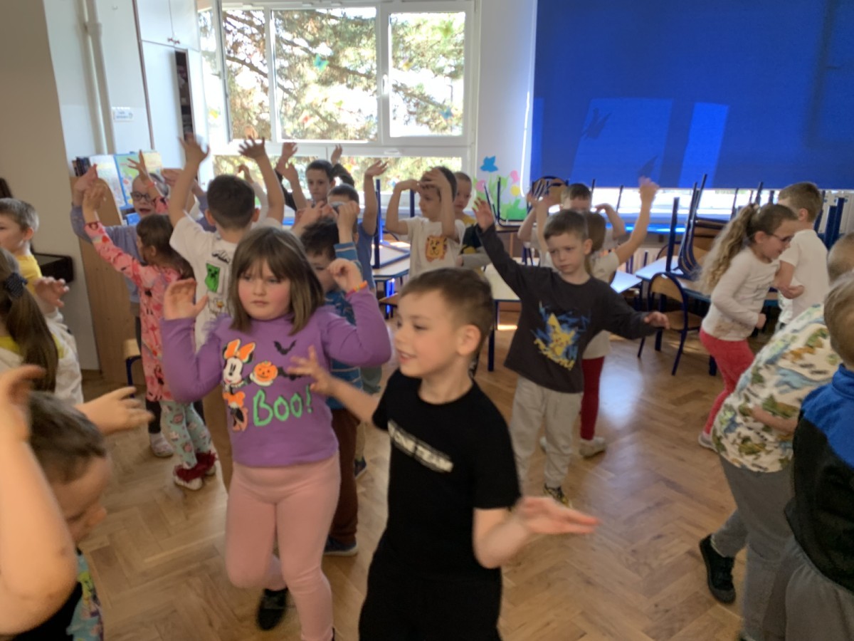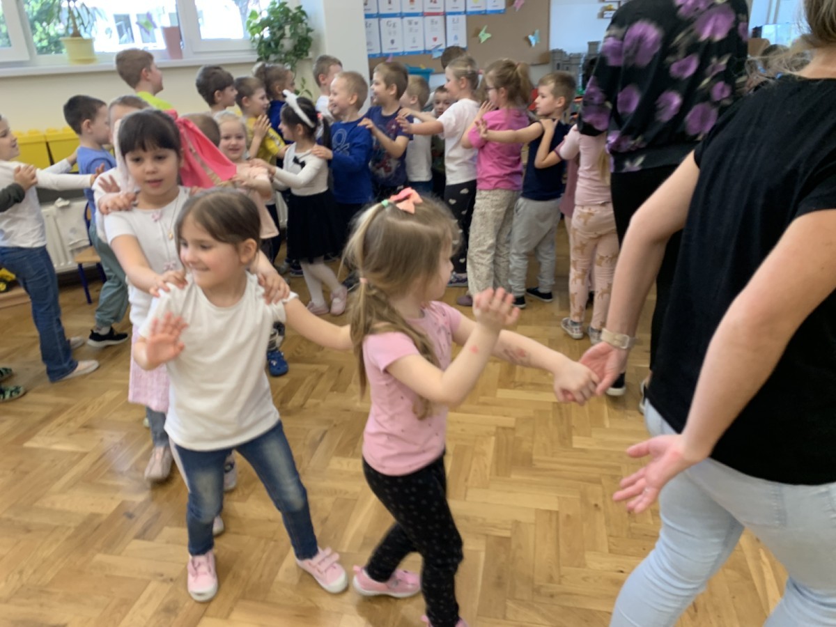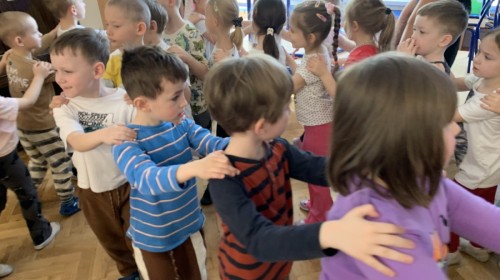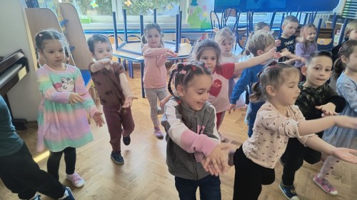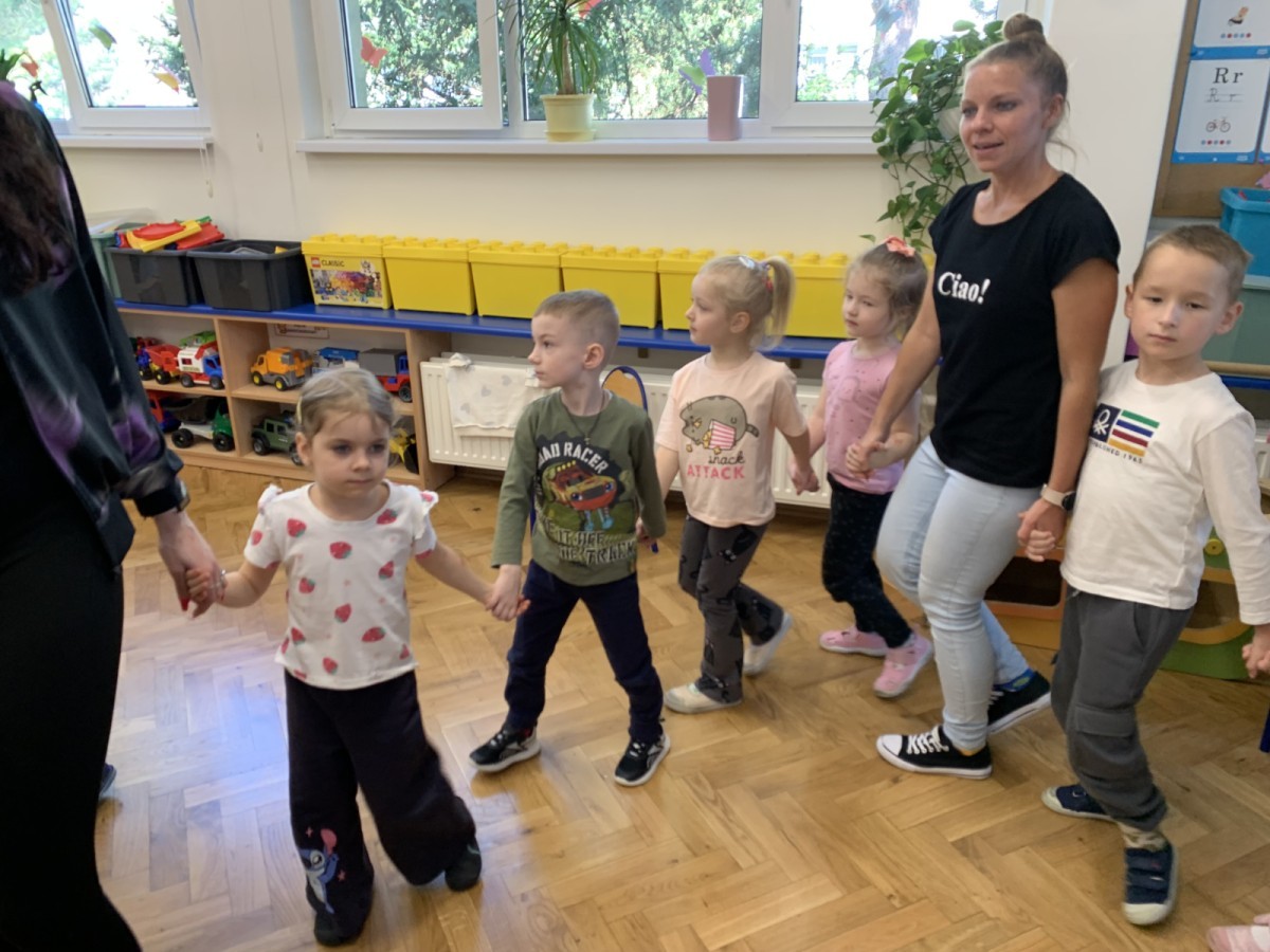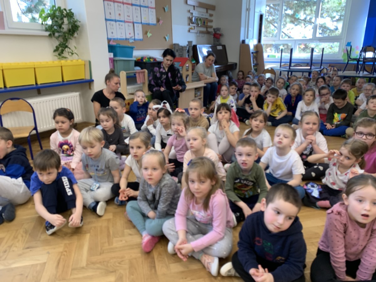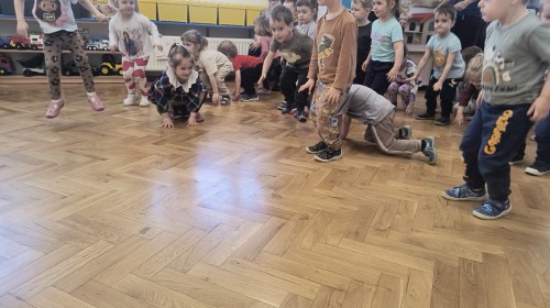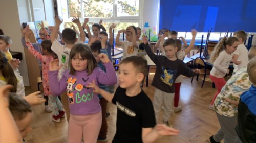 Przedszkolaki z ogromnym zaangażowaniem brały udział w zabawie – śpiewały, klaskały i poruszały się w rytm muzyki. Na twarzach dzieci nie brakowało uśmiechów, a cała sala wypełniła się pozytywną energią 😊✨