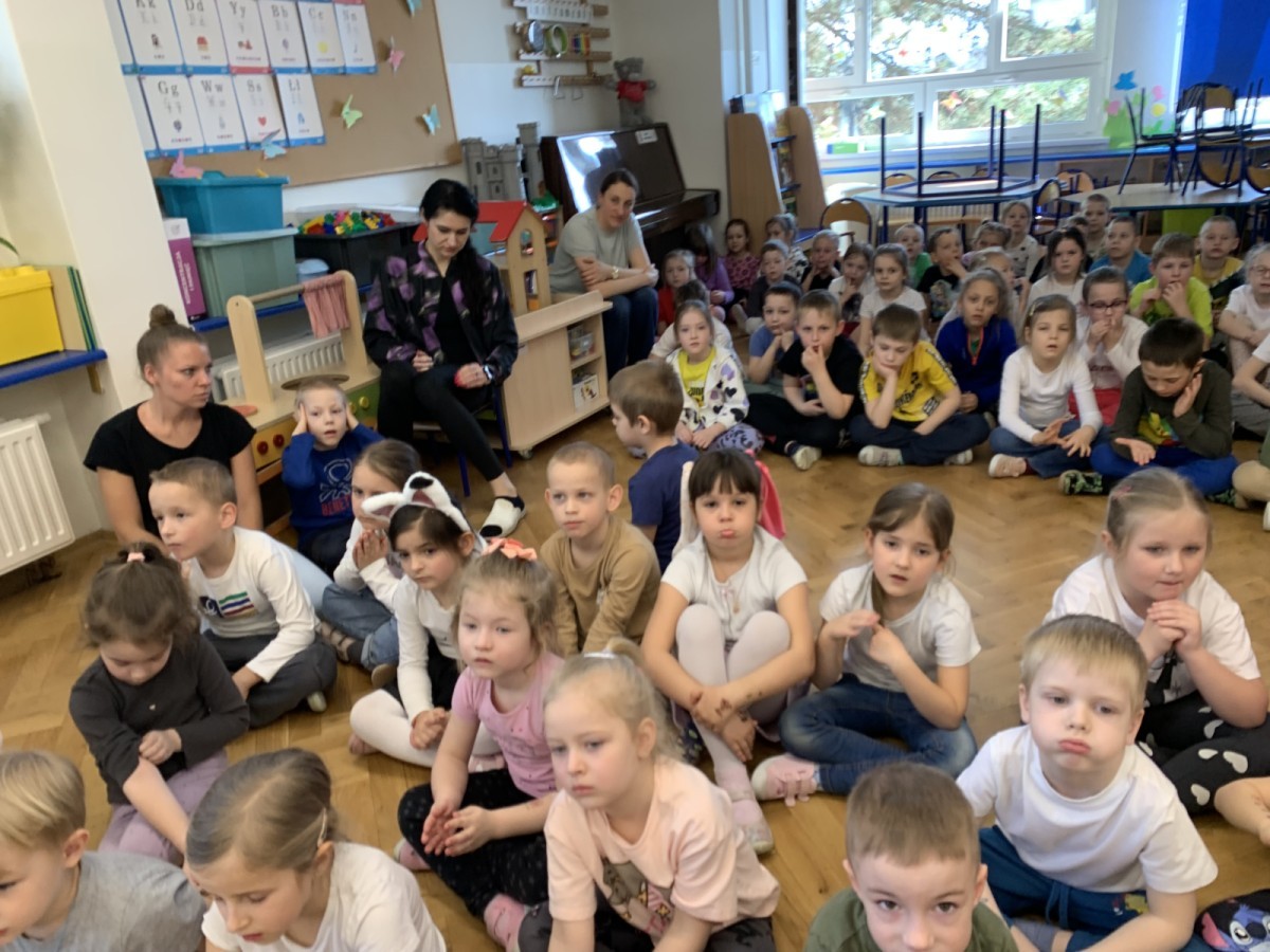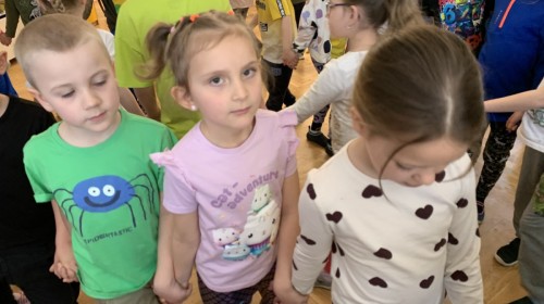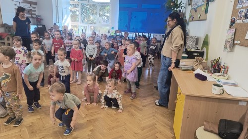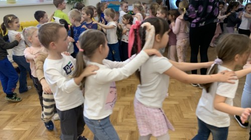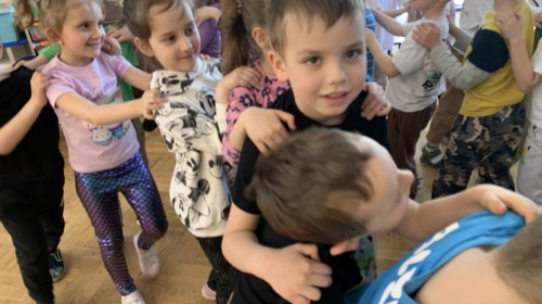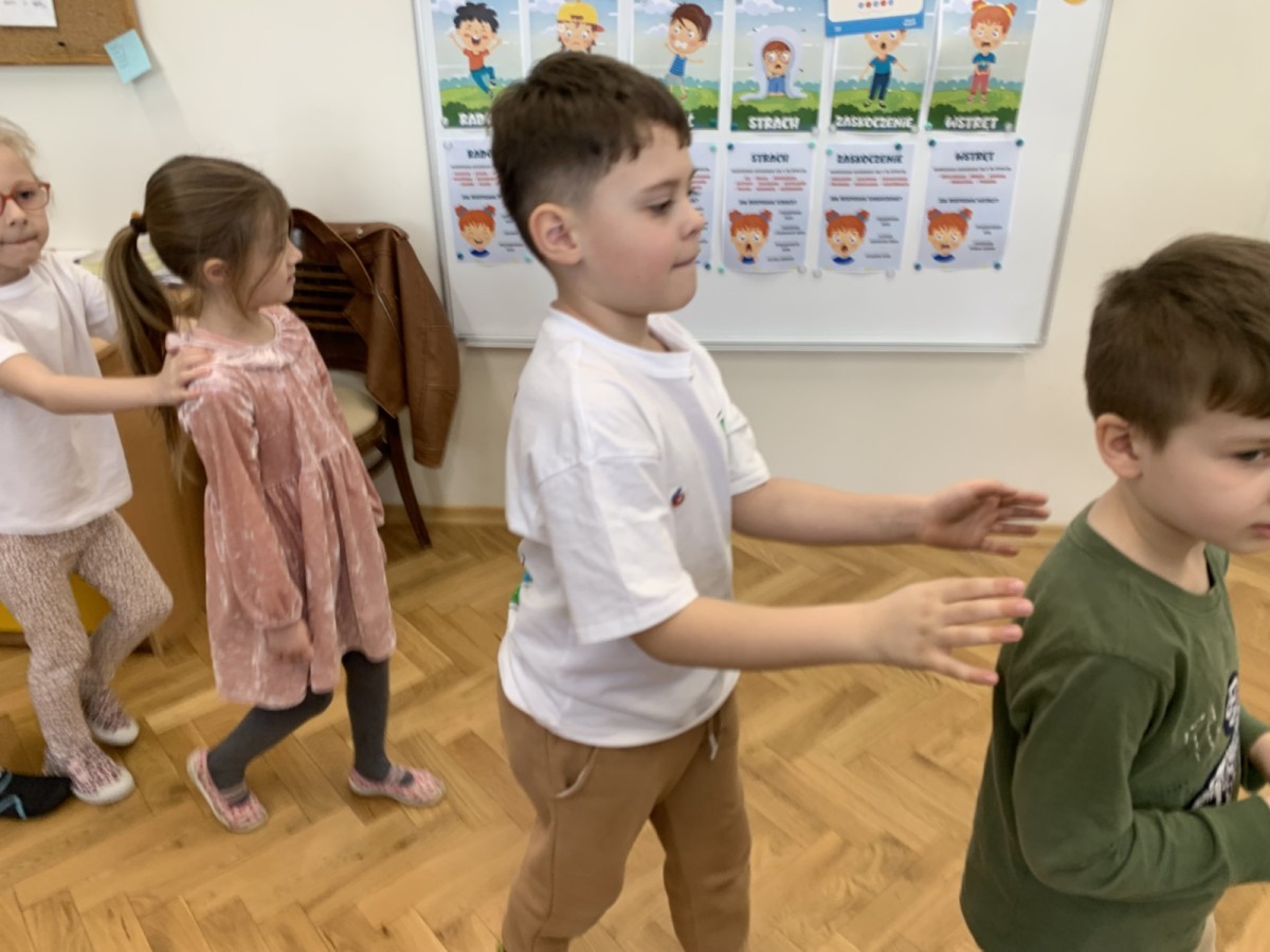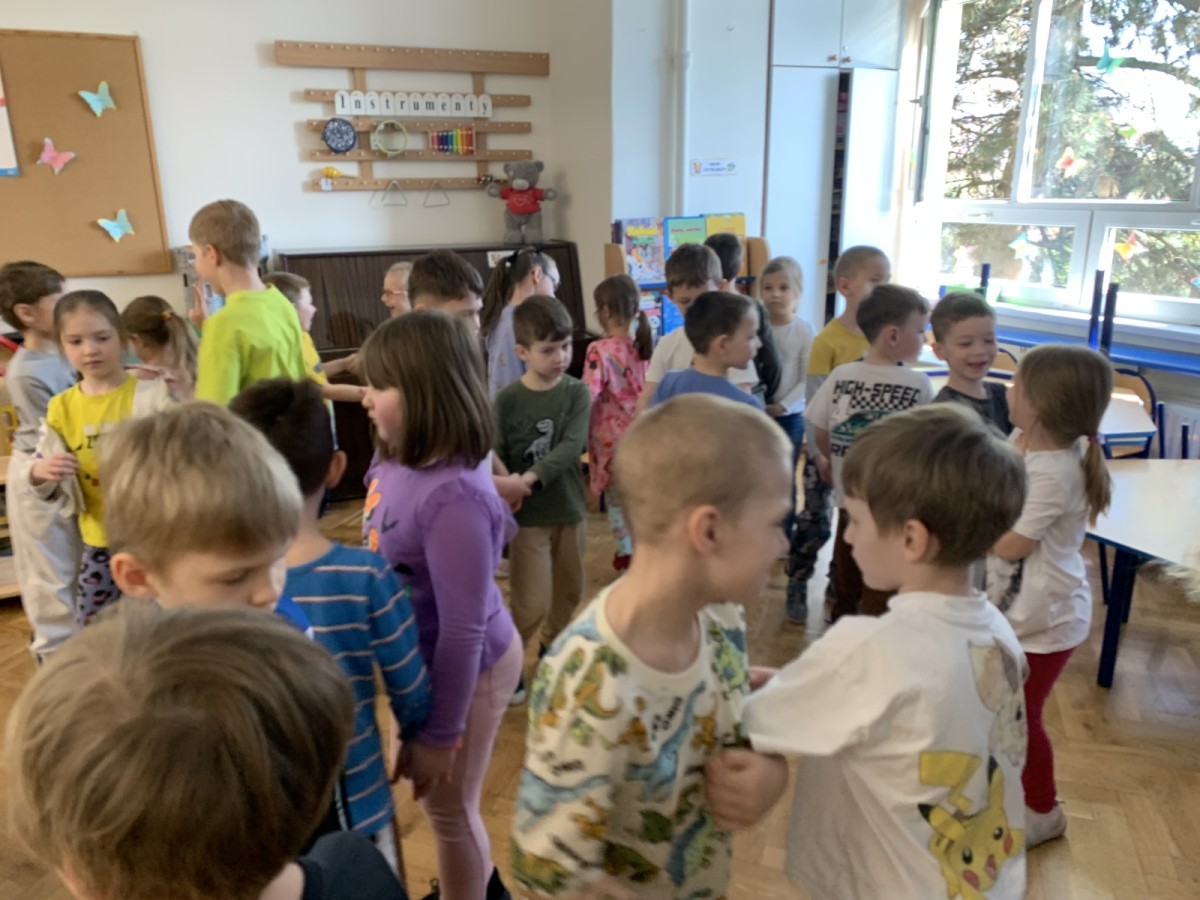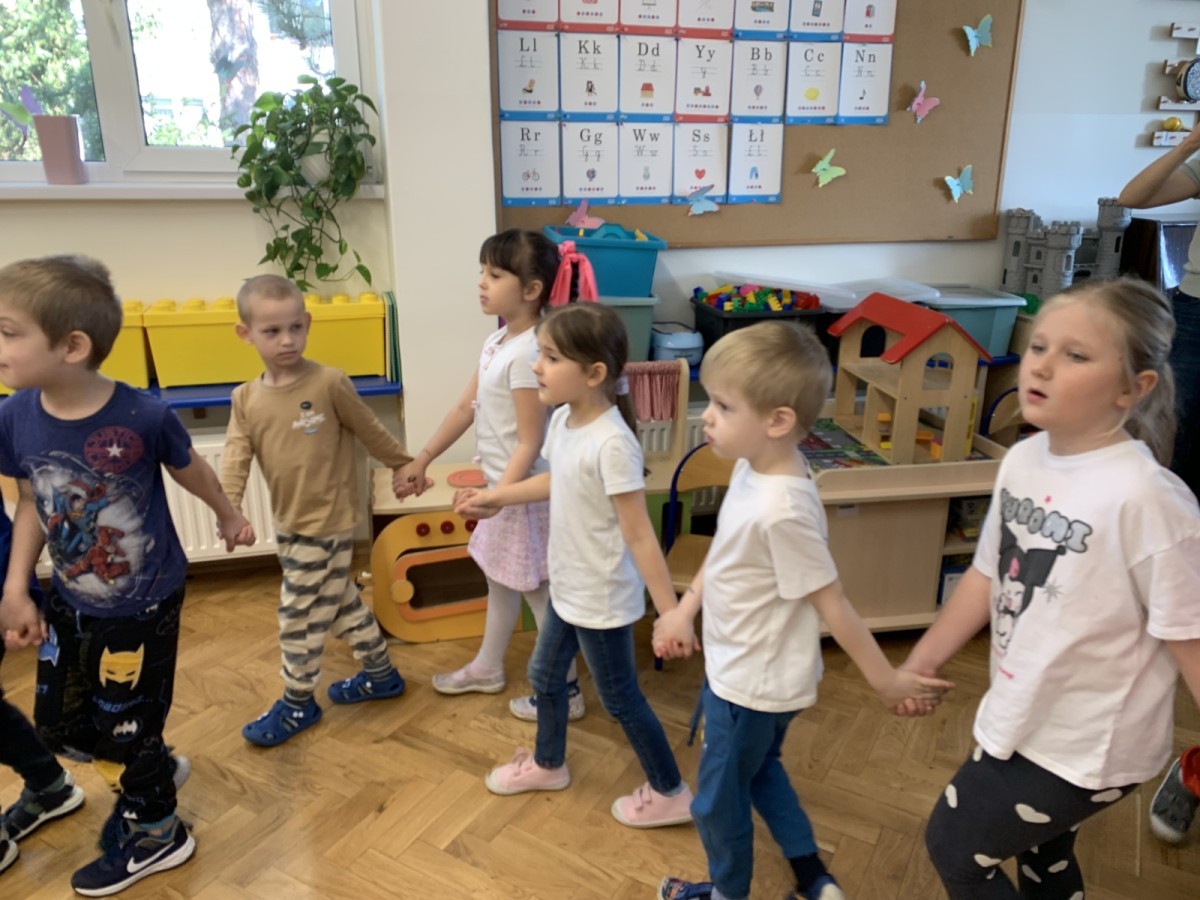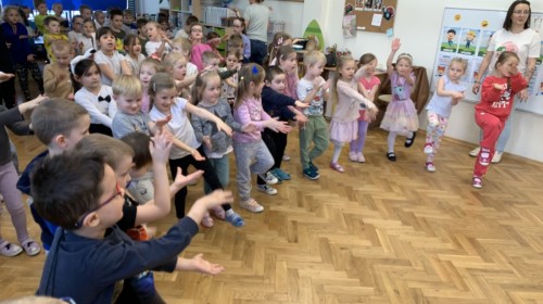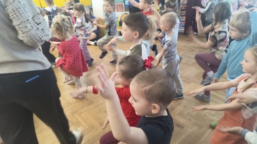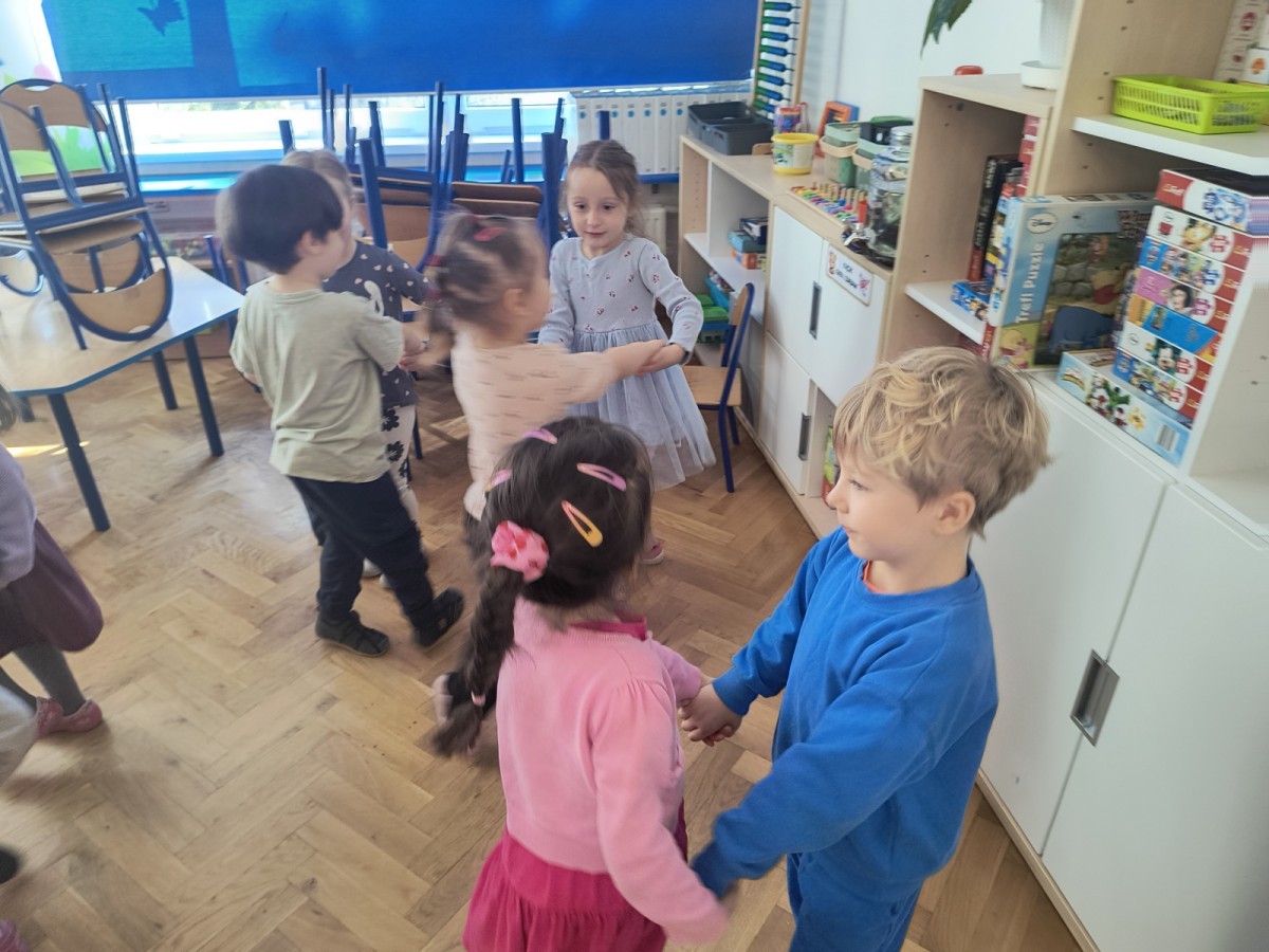 Przedszkolaki z ogromnym zaangażowaniem brały udział w zabawie – śpiewały, klaskały i poruszały się w rytm muzyki. Na twarzach dzieci nie brakowało uśmiechów, a cała sala wypełniła się pozytywną energią 😊✨