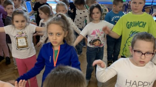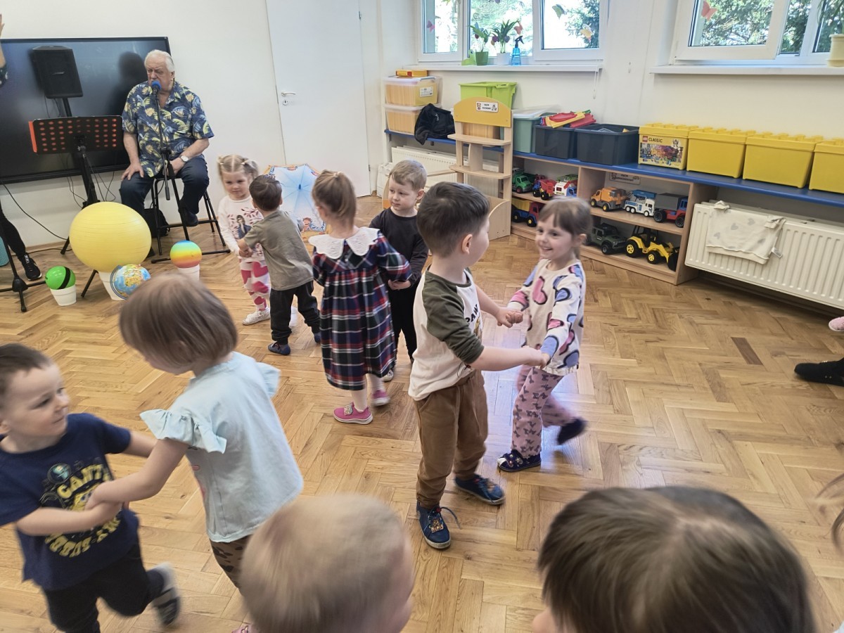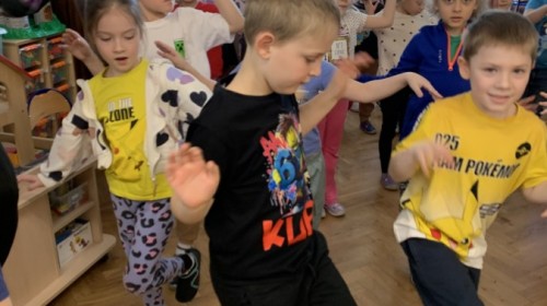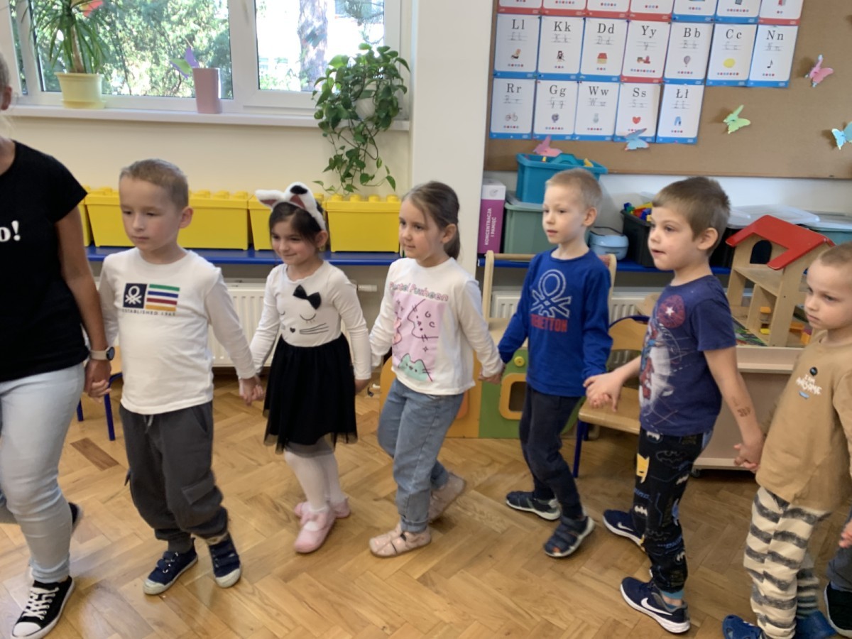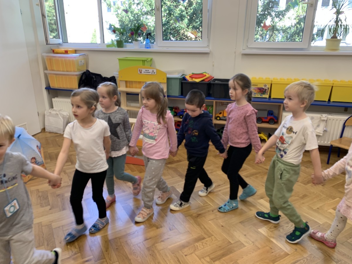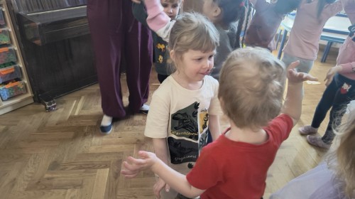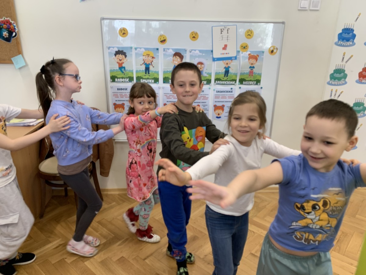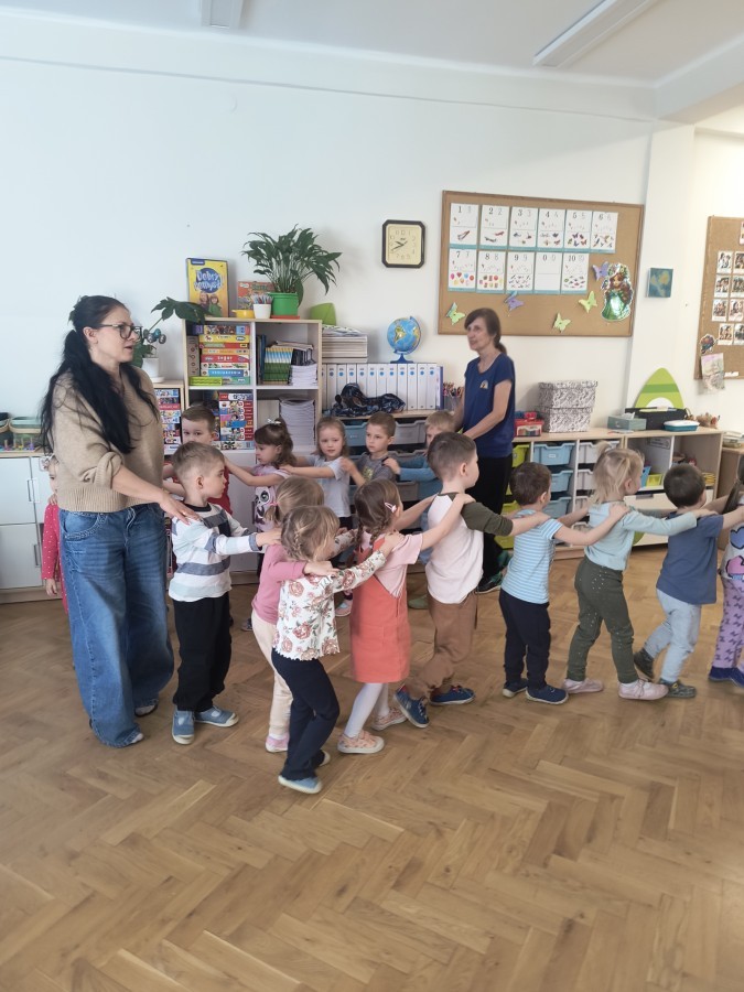 Przedszkolaki z ogromnym zaangażowaniem brały udział w zabawie – śpiewały, klaskały i poruszały się w rytm muzyki. Na twarzach dzieci nie brakowało uśmiechów, a cała sala wypełniła się pozytywną energią 😊✨