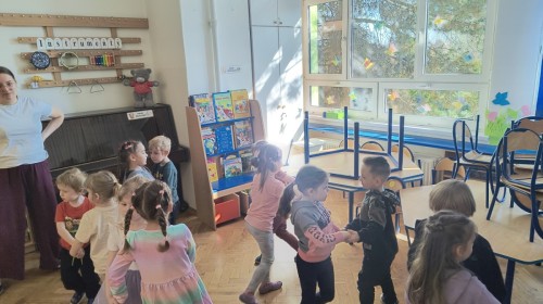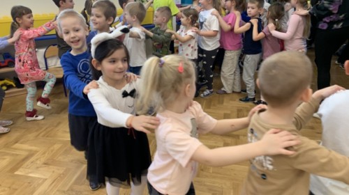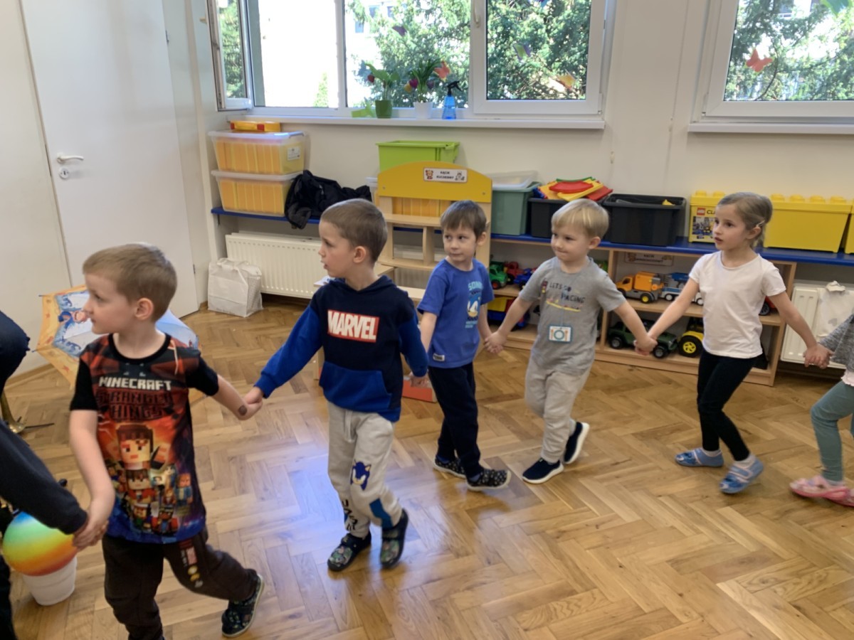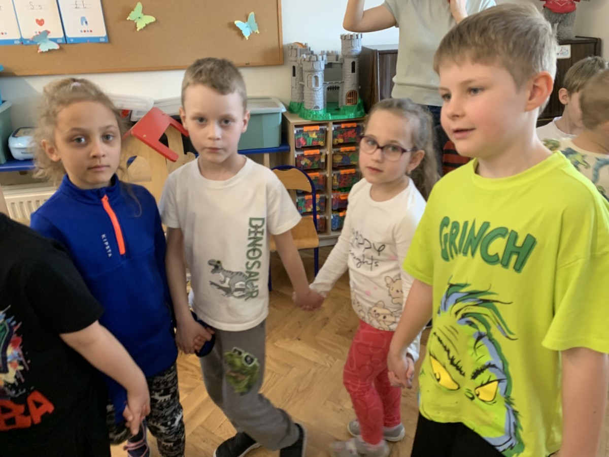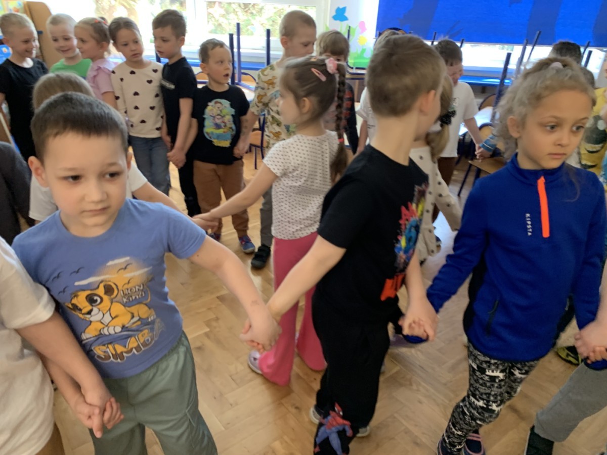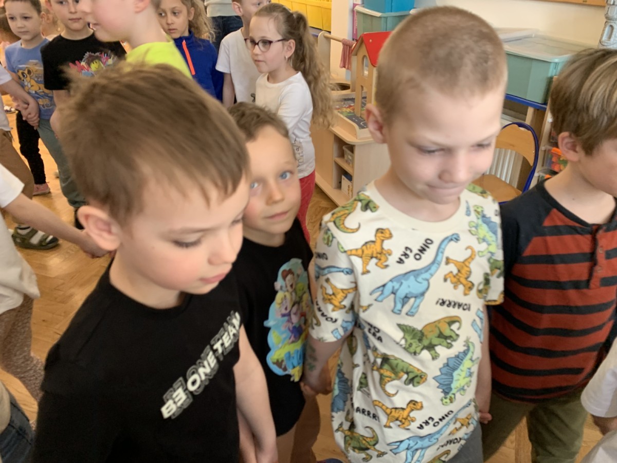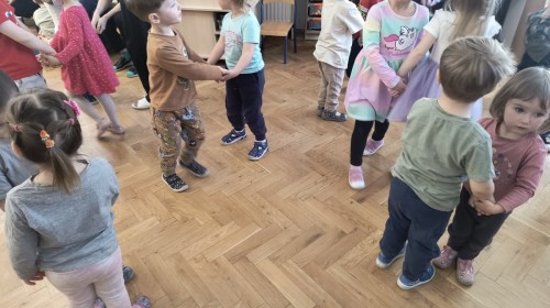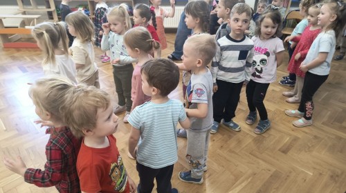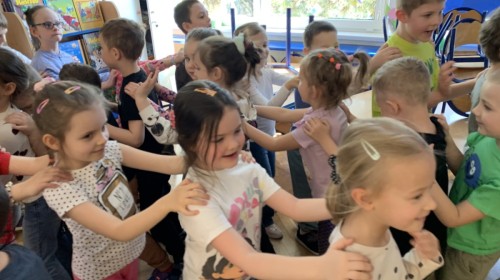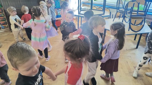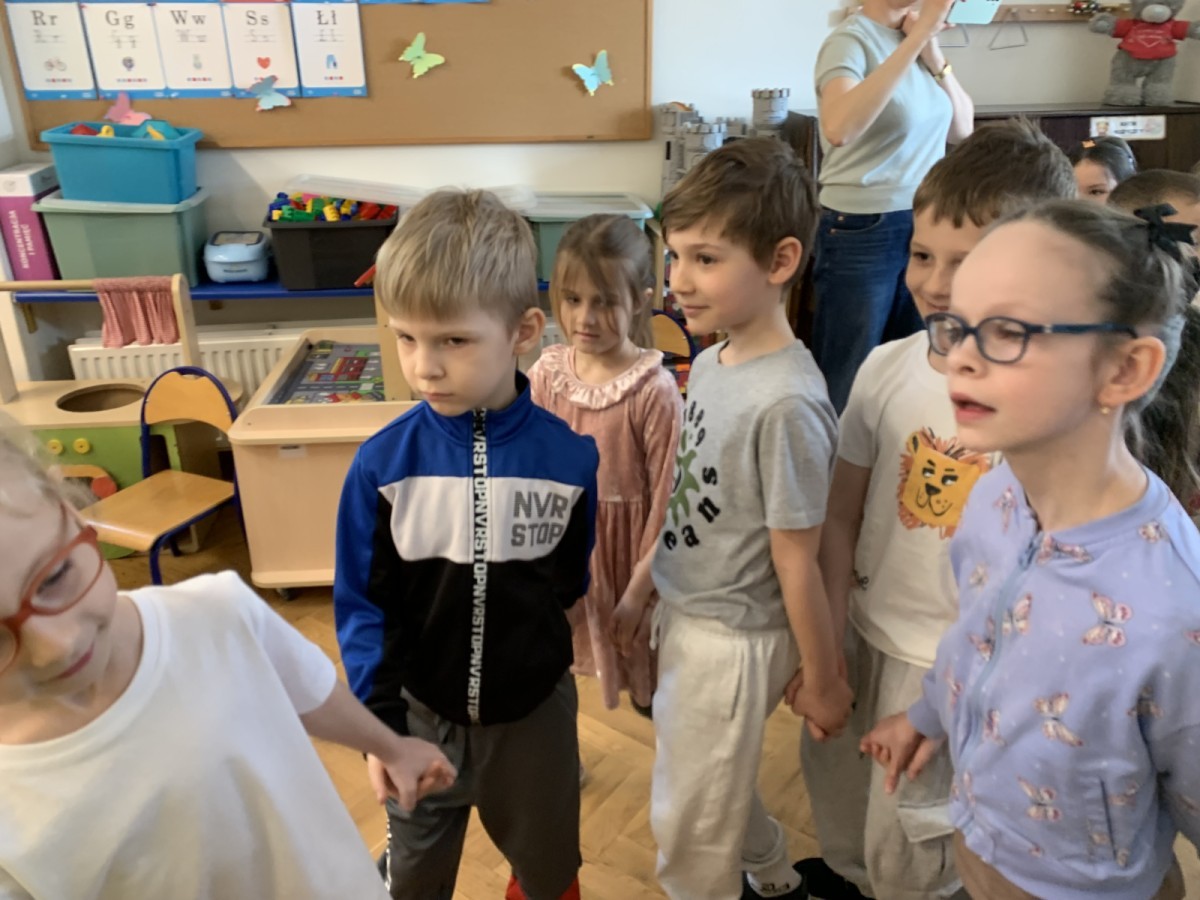 Przedszkolaki z ogromnym zaangażowaniem brały udział w zabawie – śpiewały, klaskały i poruszały się w rytm muzyki. Na twarzach dzieci nie brakowało uśmiechów, a cała sala wypełniła się pozytywną energią 😊✨