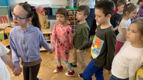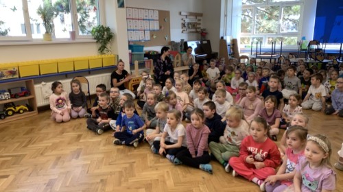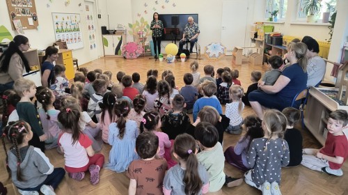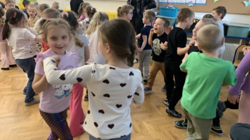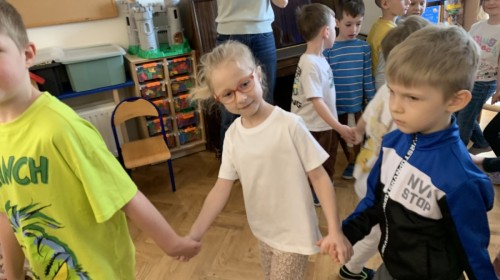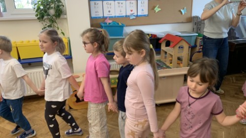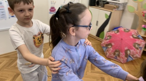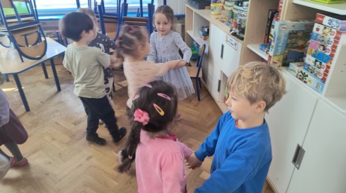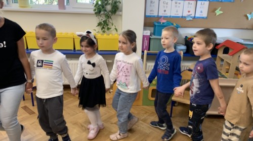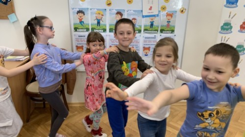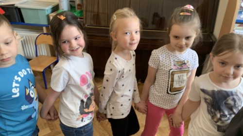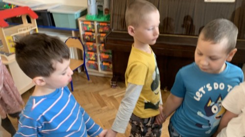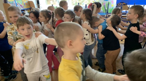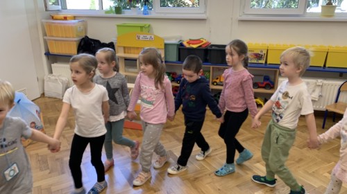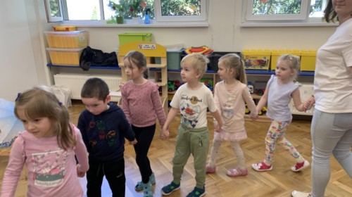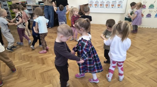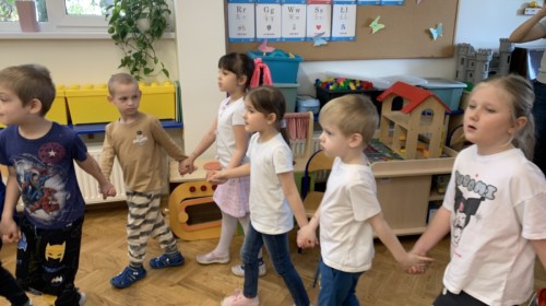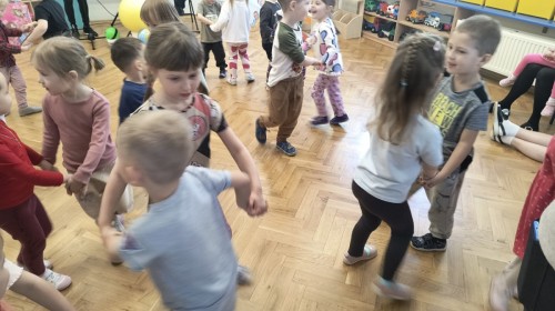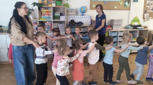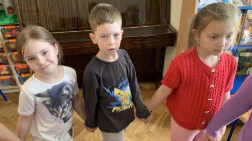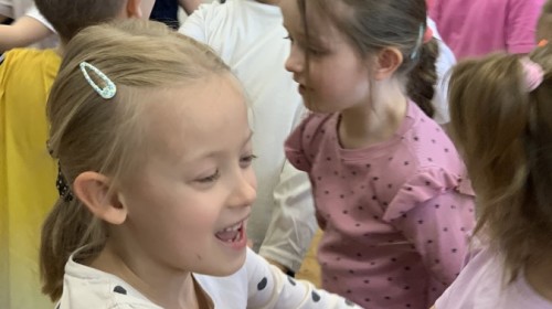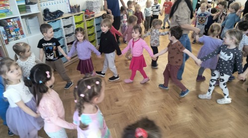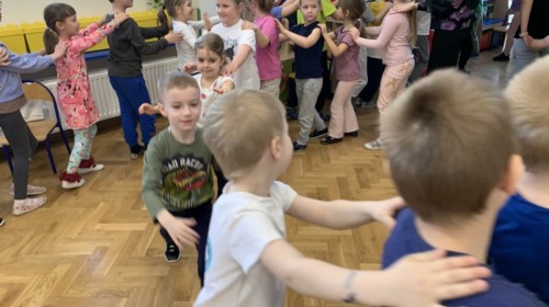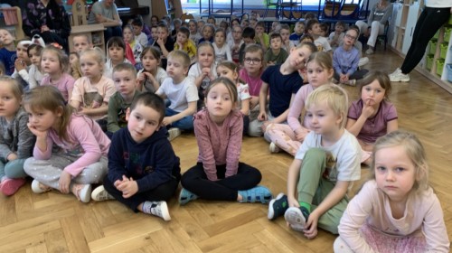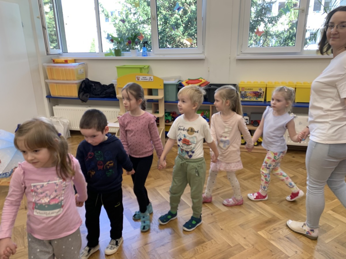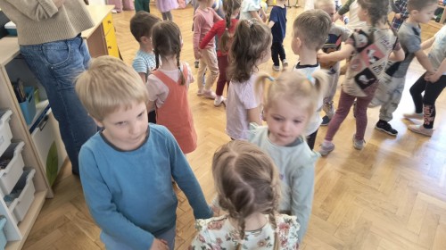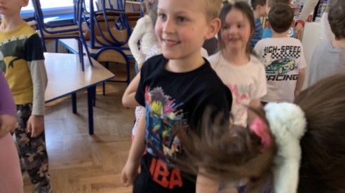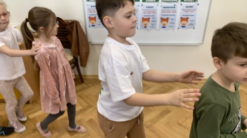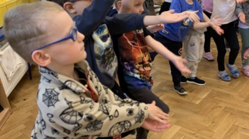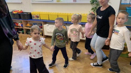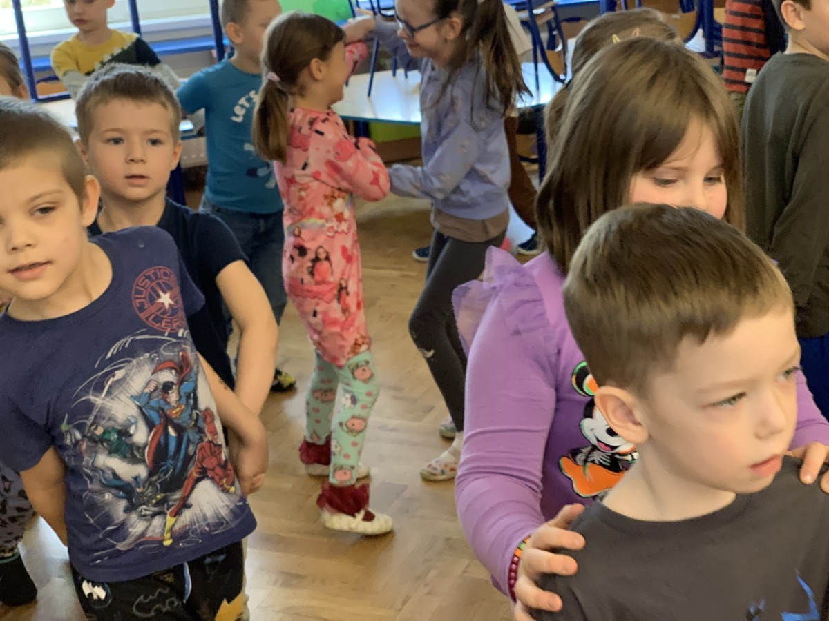 Przedszkolaki z ogromnym zaangażowaniem brały udział w zabawie – śpiewały, klaskały i poruszały się w rytm muzyki. Na twarzach dzieci nie brakowało uśmiechów, a cała sala wypełniła się pozytywną energią 😊✨