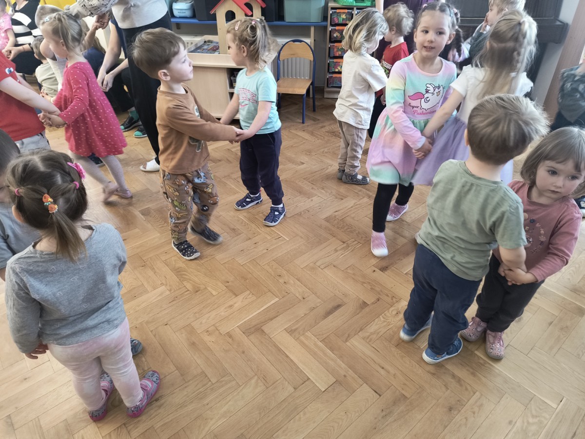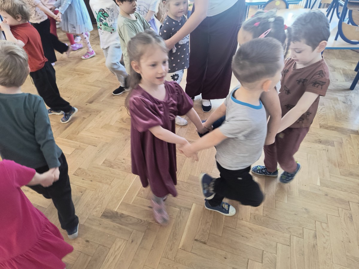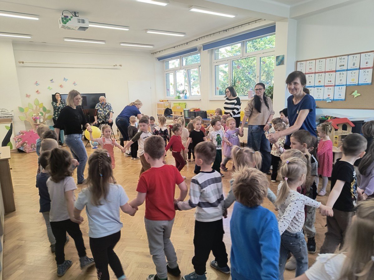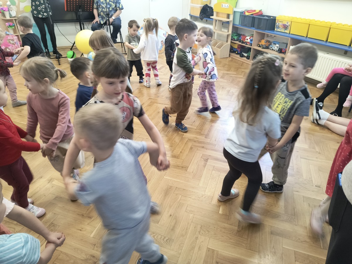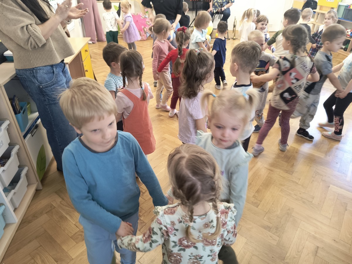 Dzieci miały okazję przenieść się w muzyczną podróż przez wiosnę, lato, jesień i zimę. Każdej porze roku towarzyszyły tematyczne piosenki oraz radosne tańce, które wprowadzały wszystkich w odpowiedni nastrój 🎶💃🕺