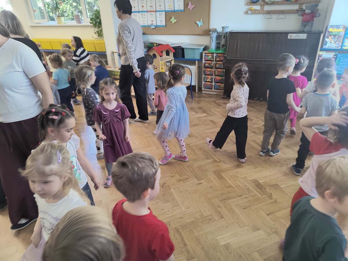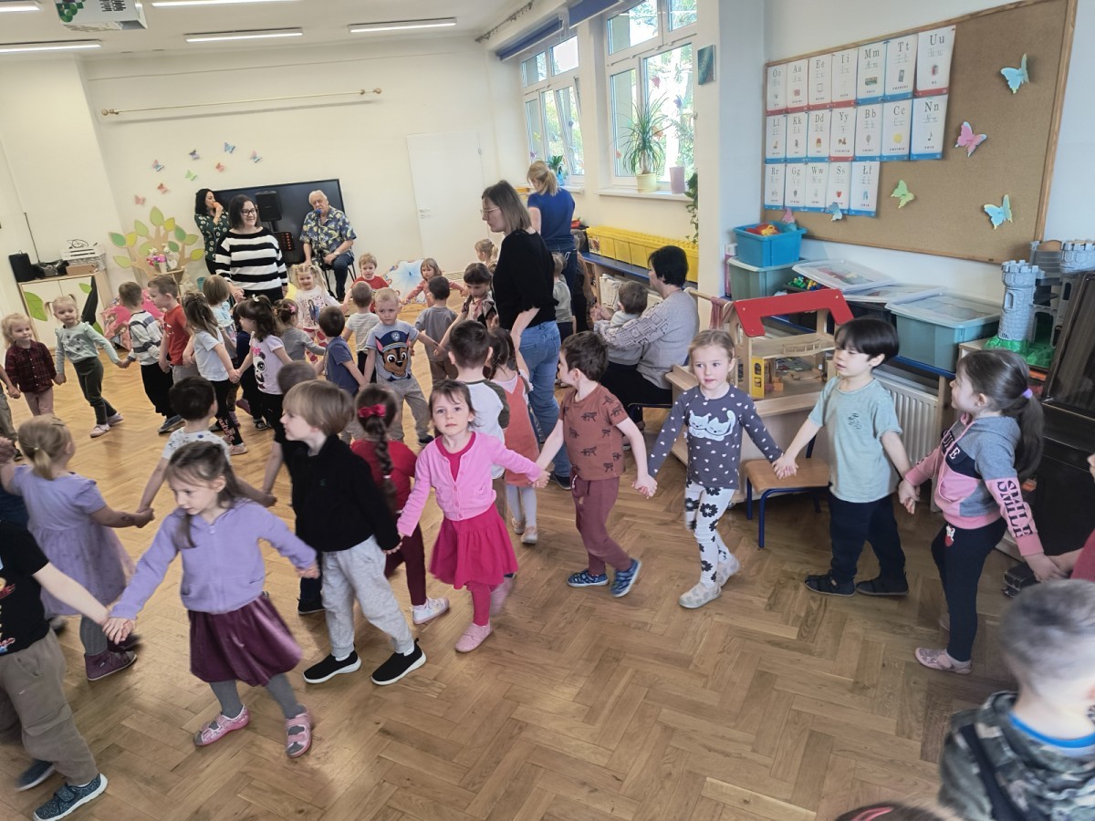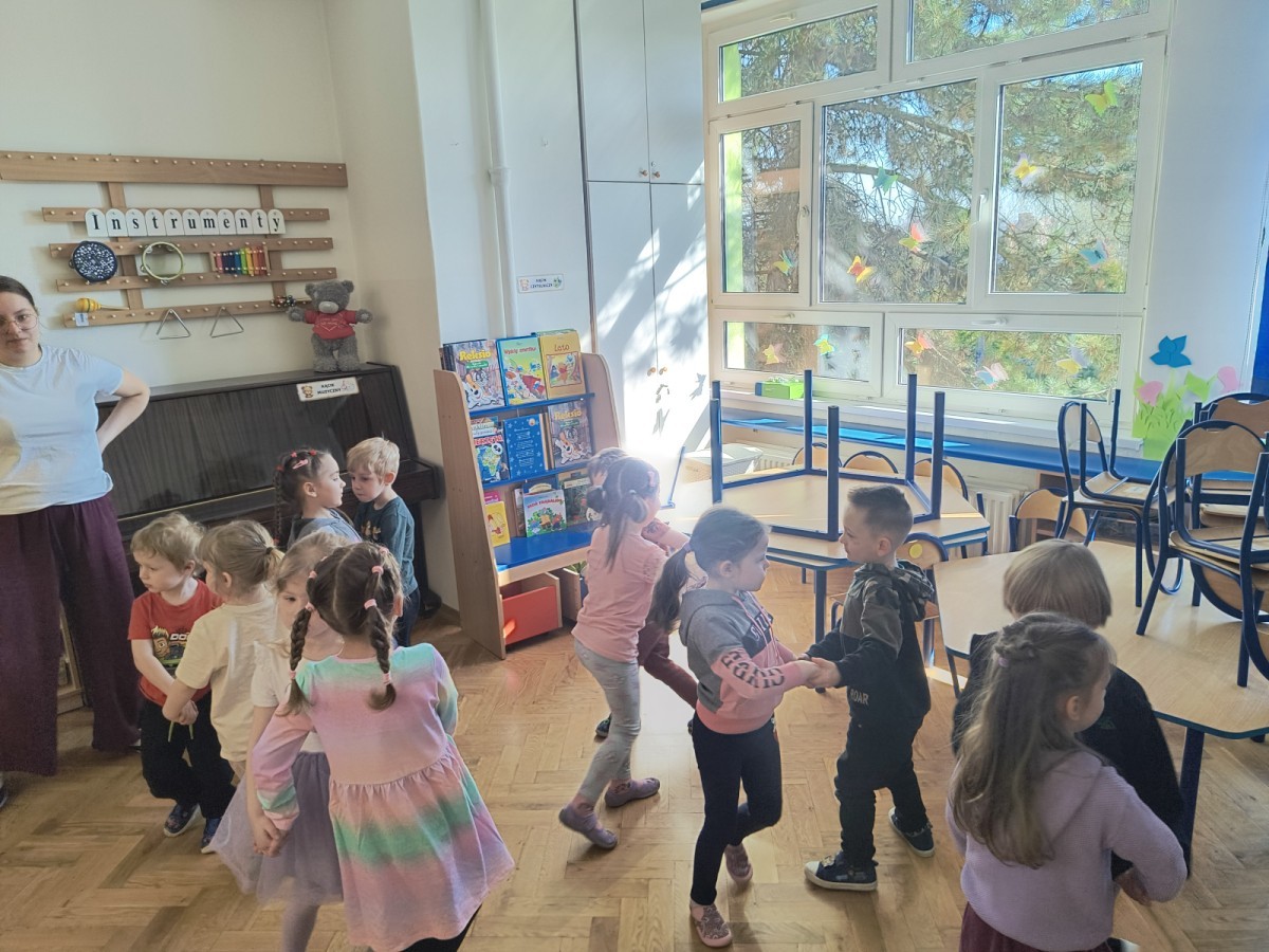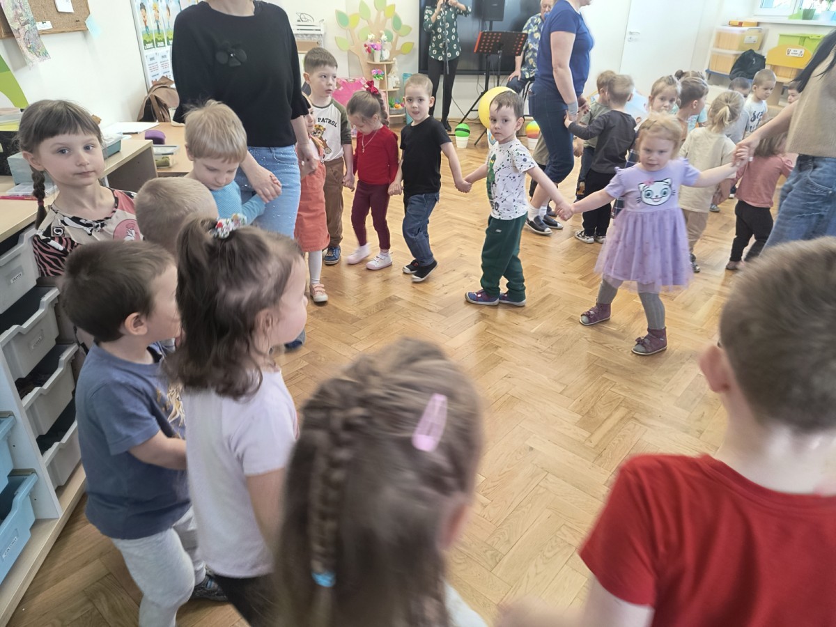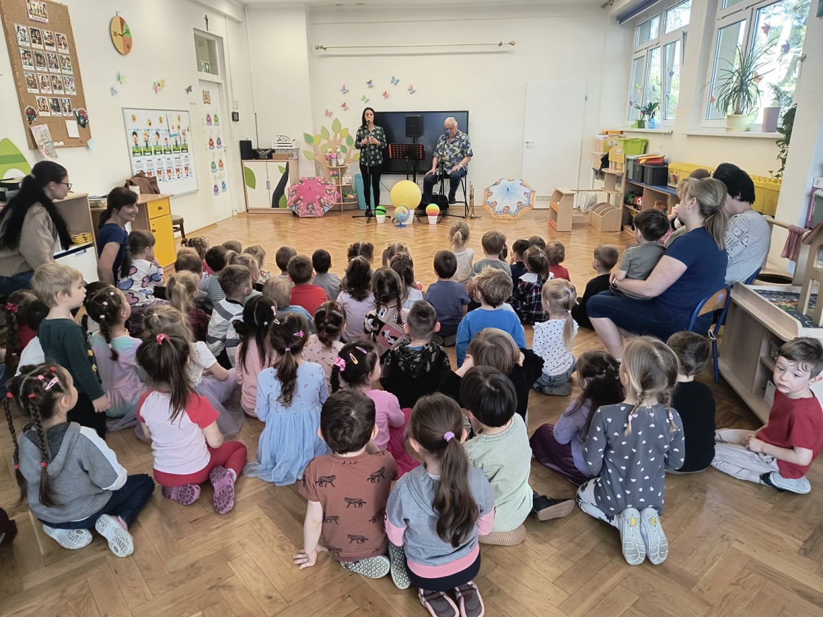 Dzieci miały okazję przenieść się w muzyczną podróż przez wiosnę, lato, jesień i zimę. Każdej porze roku towarzyszyły tematyczne piosenki oraz radosne tańce, które wprowadzały wszystkich w odpowiedni nastrój 🎶💃🕺