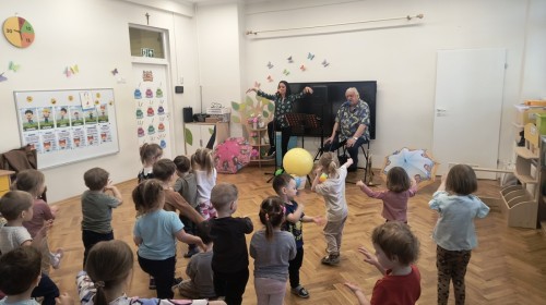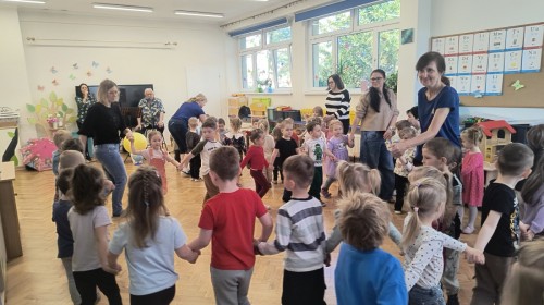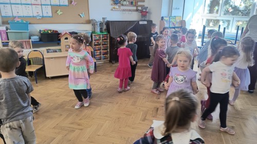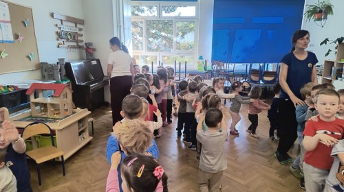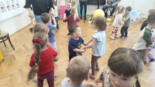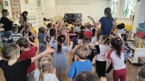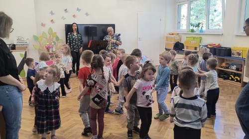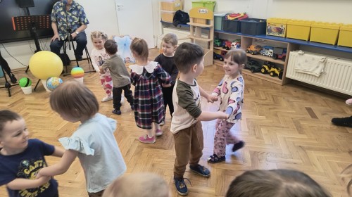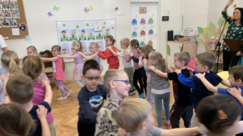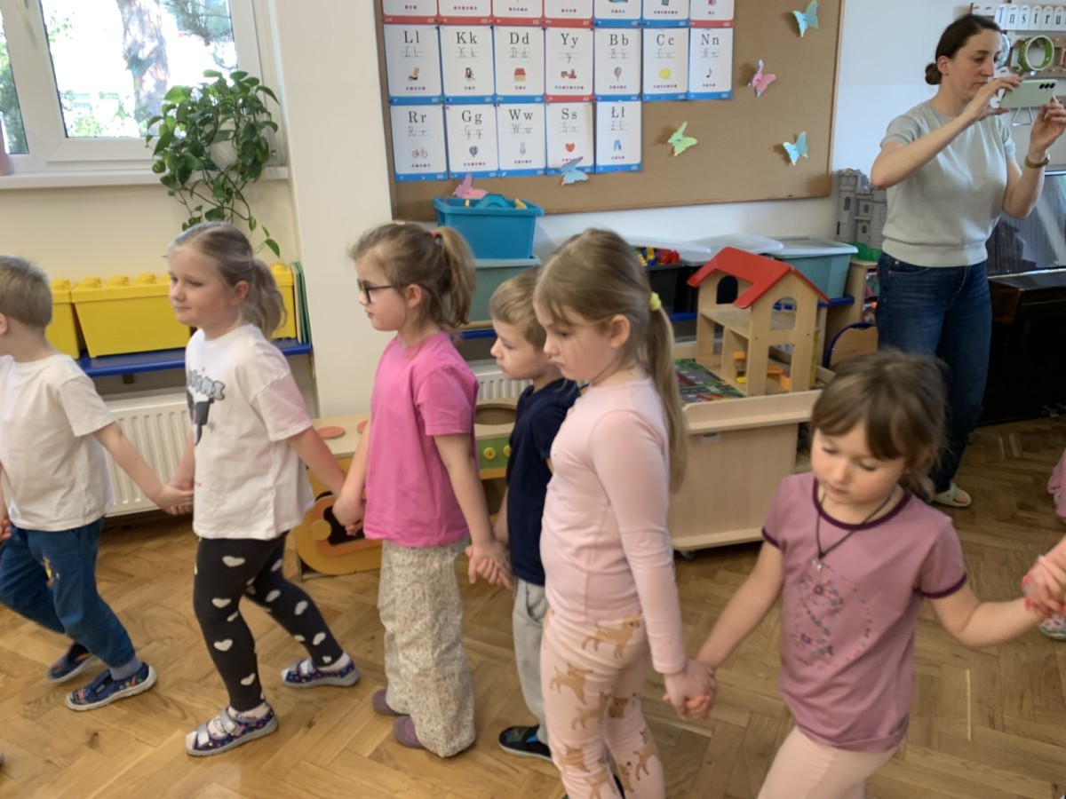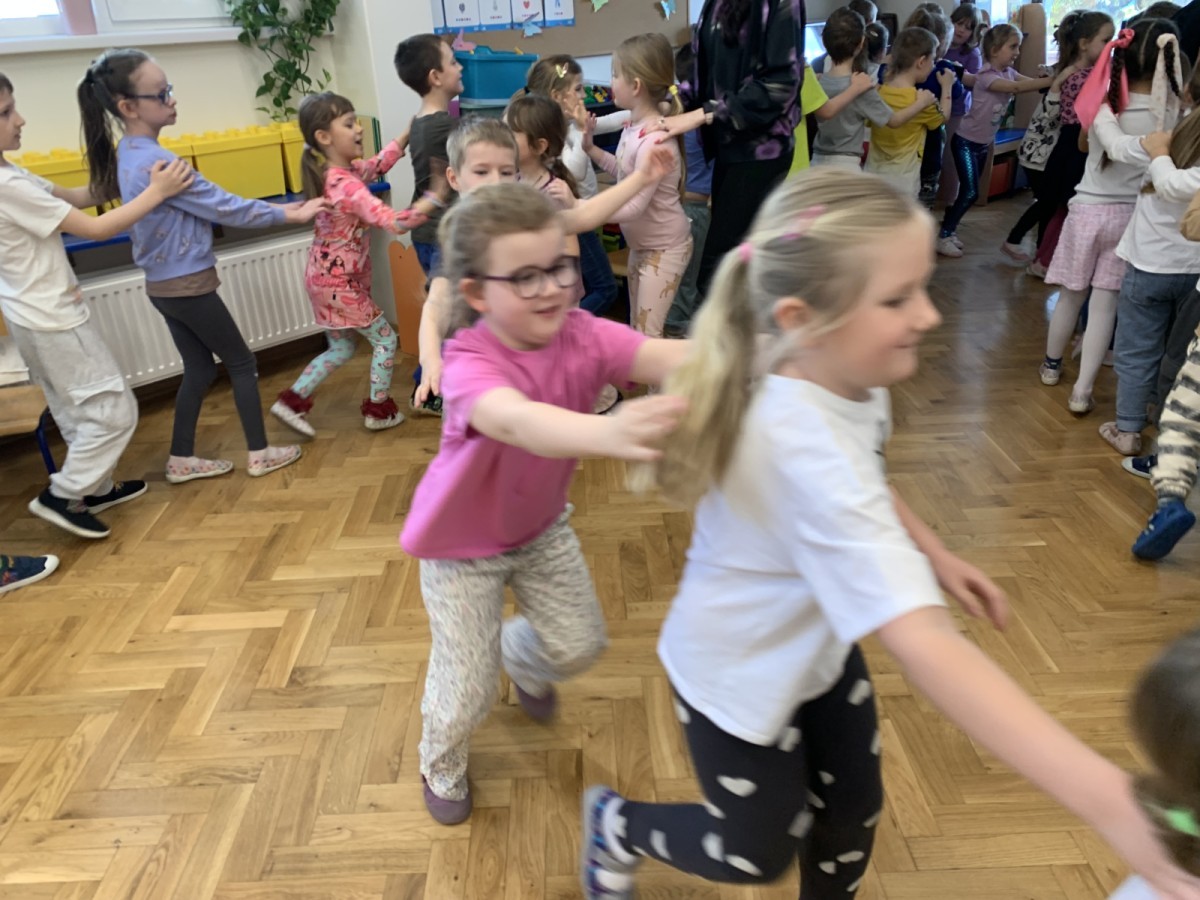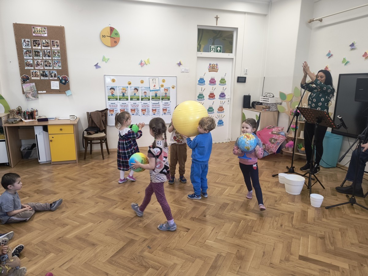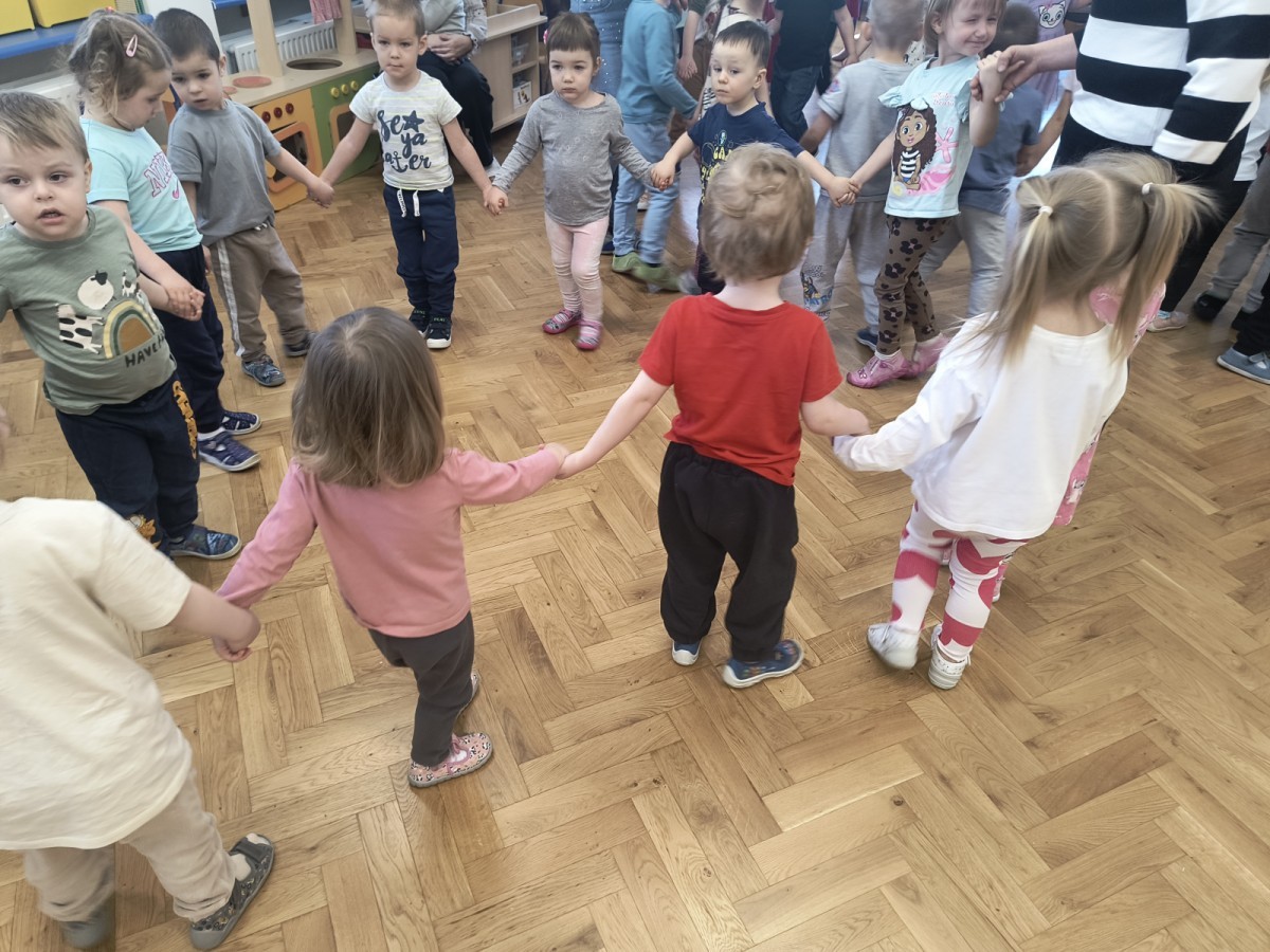 Dzieci miały okazję przenieść się w muzyczną podróż przez wiosnę, lato, jesień i zimę. Każdej porze roku towarzyszyły tematyczne piosenki oraz radosne tańce, które wprowadzały wszystkich w odpowiedni nastrój 🎶💃🕺