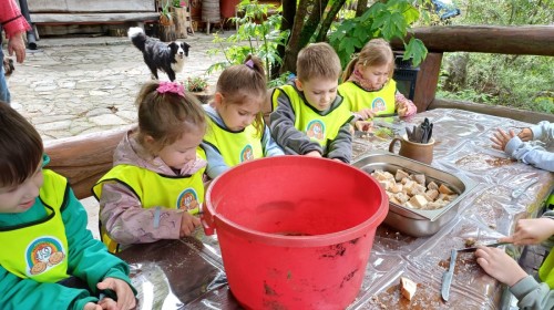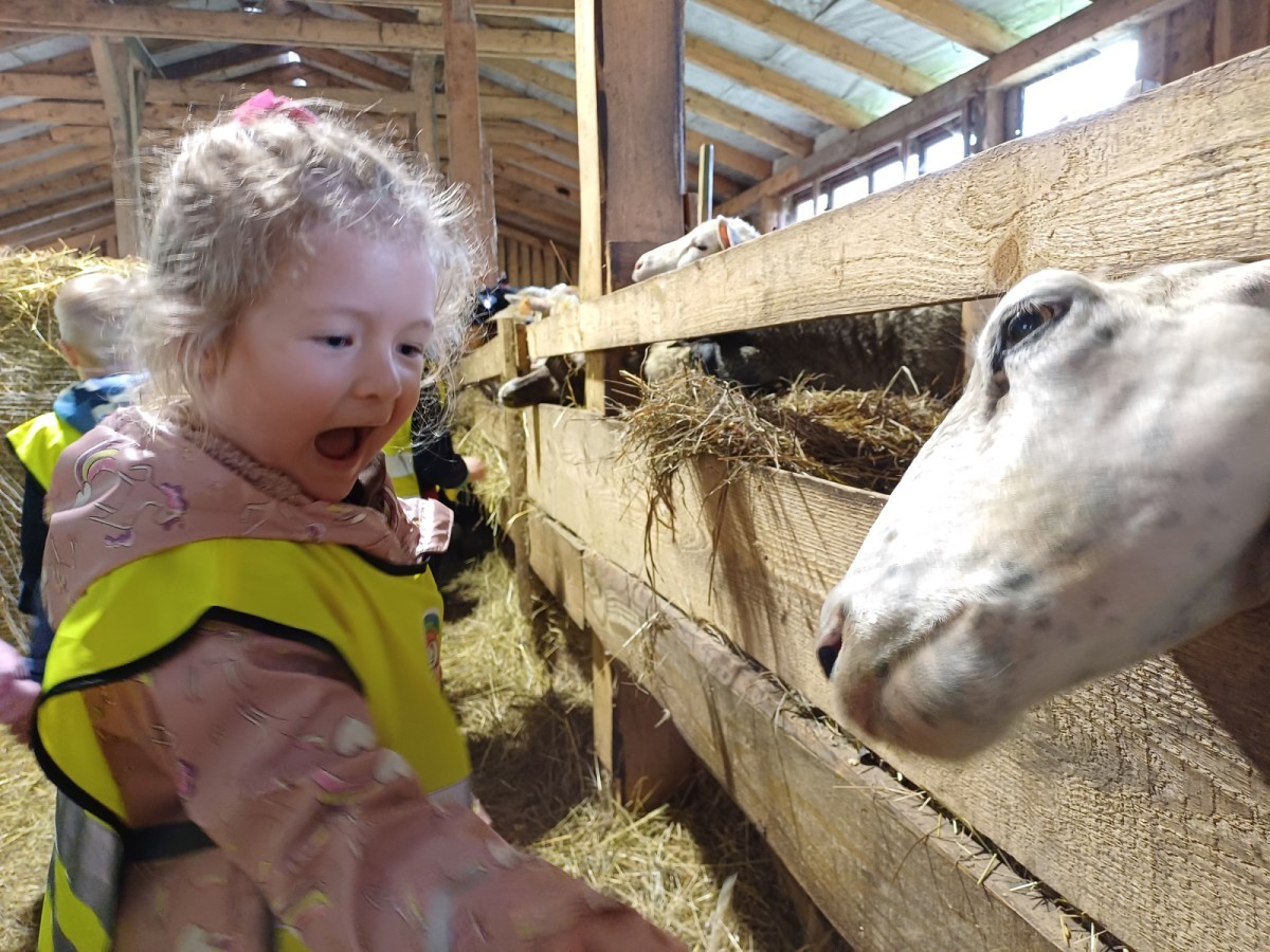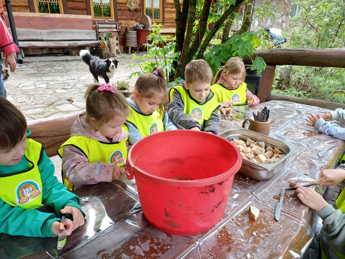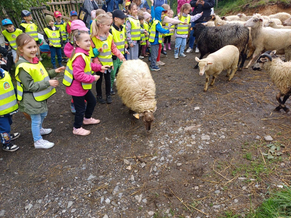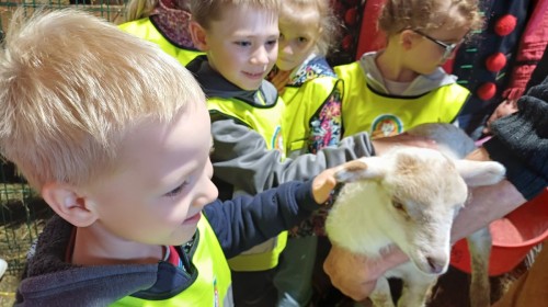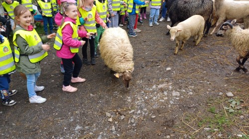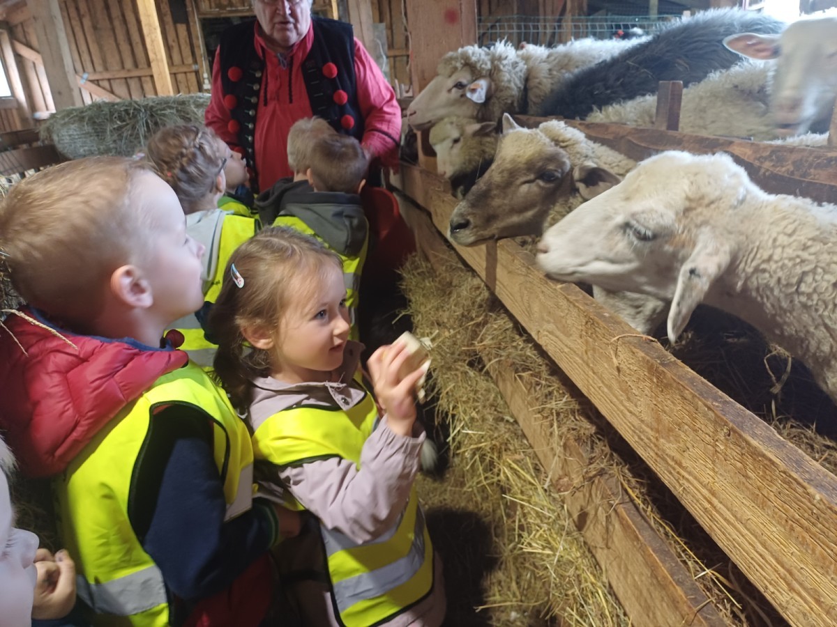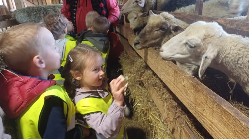 Na miejscu dzieci miały okazję poczuć się jak prawdziwi gospodarze – samodzielnie przygotowywały pokarm dla owiec, a następnie z ogromnym zaangażowaniem je karmiły. Owieczki były bardzo wdzięczne i zadowolone z tak miłego towarzystwa.