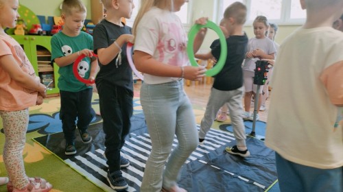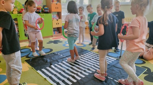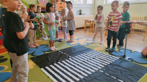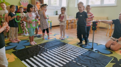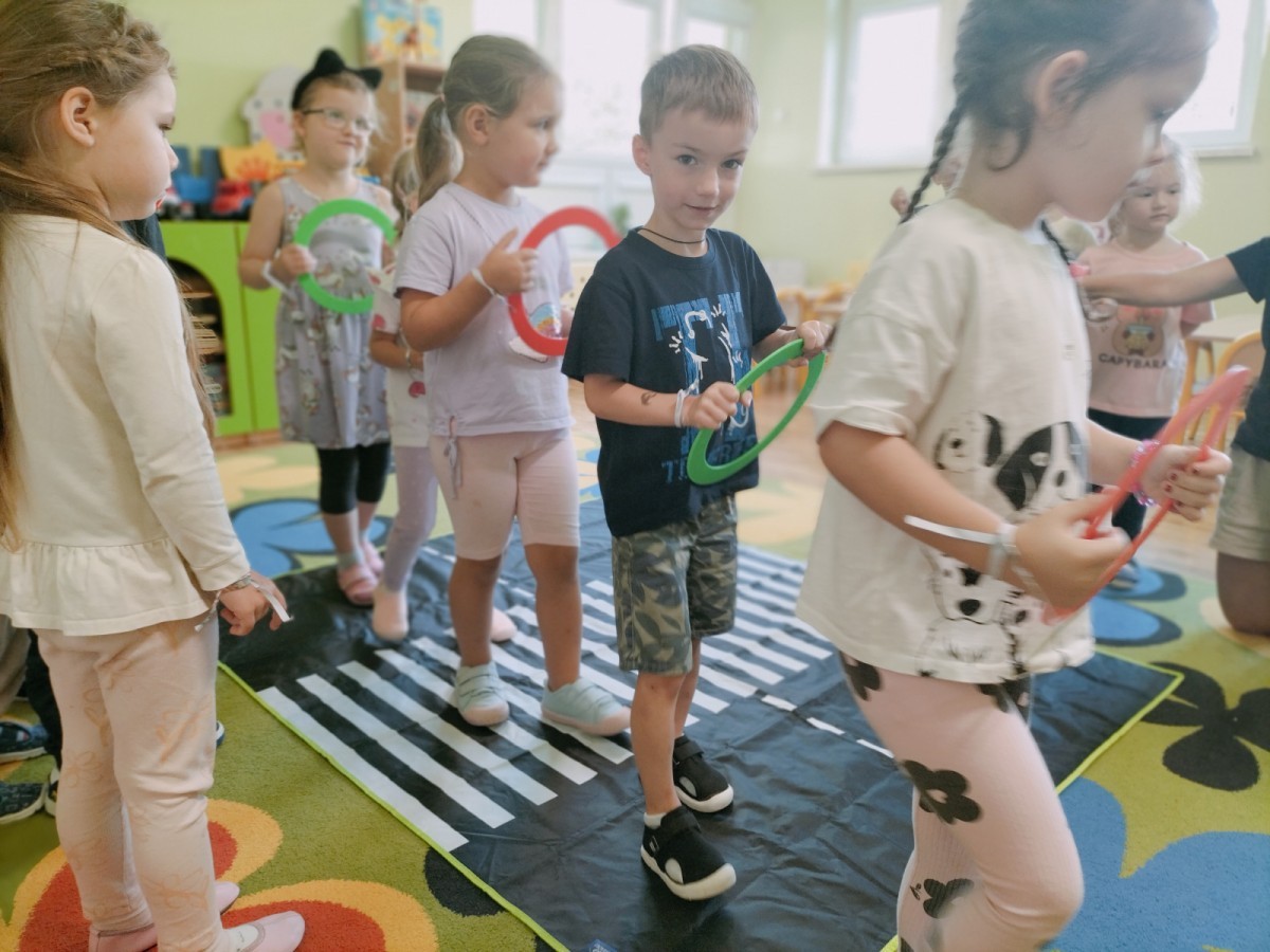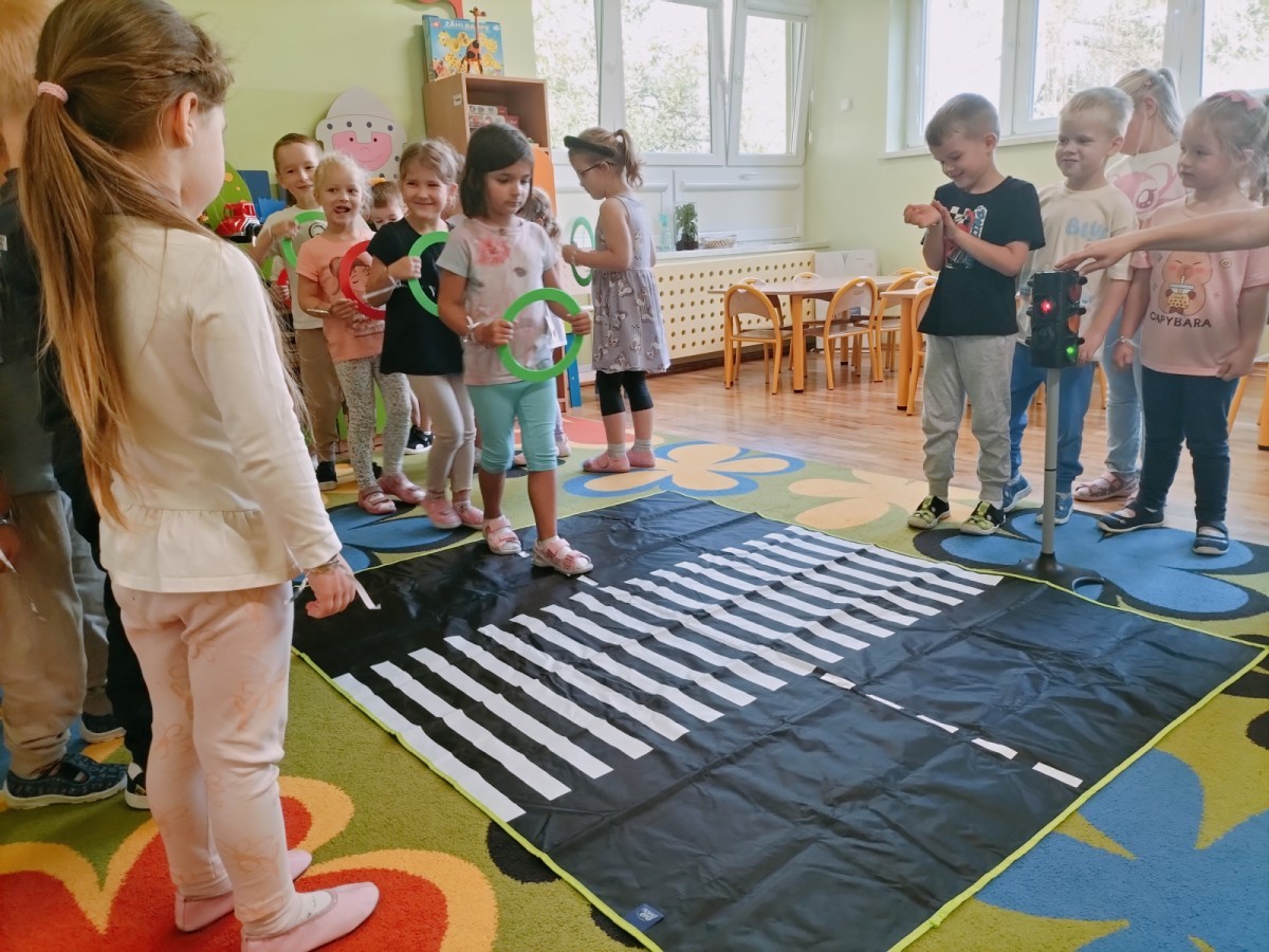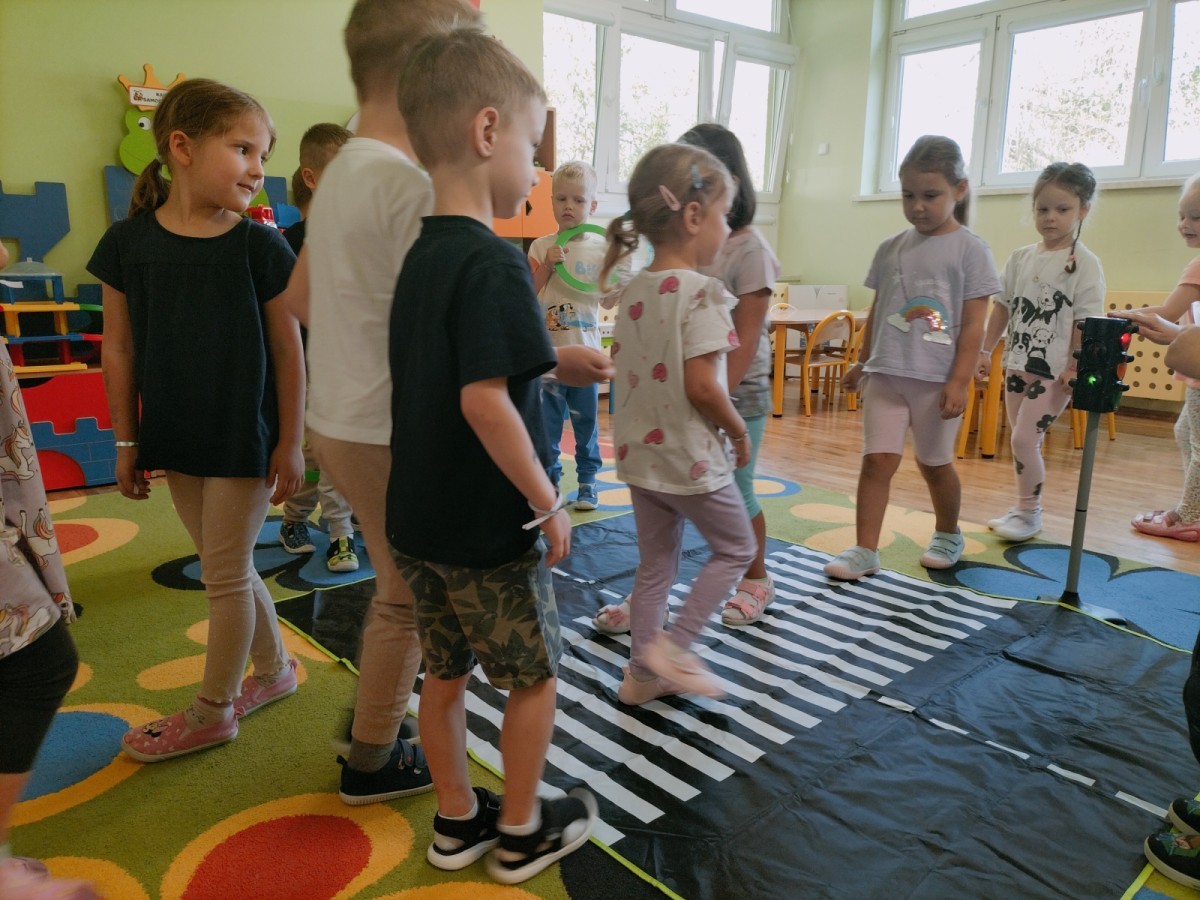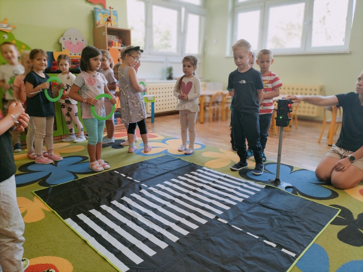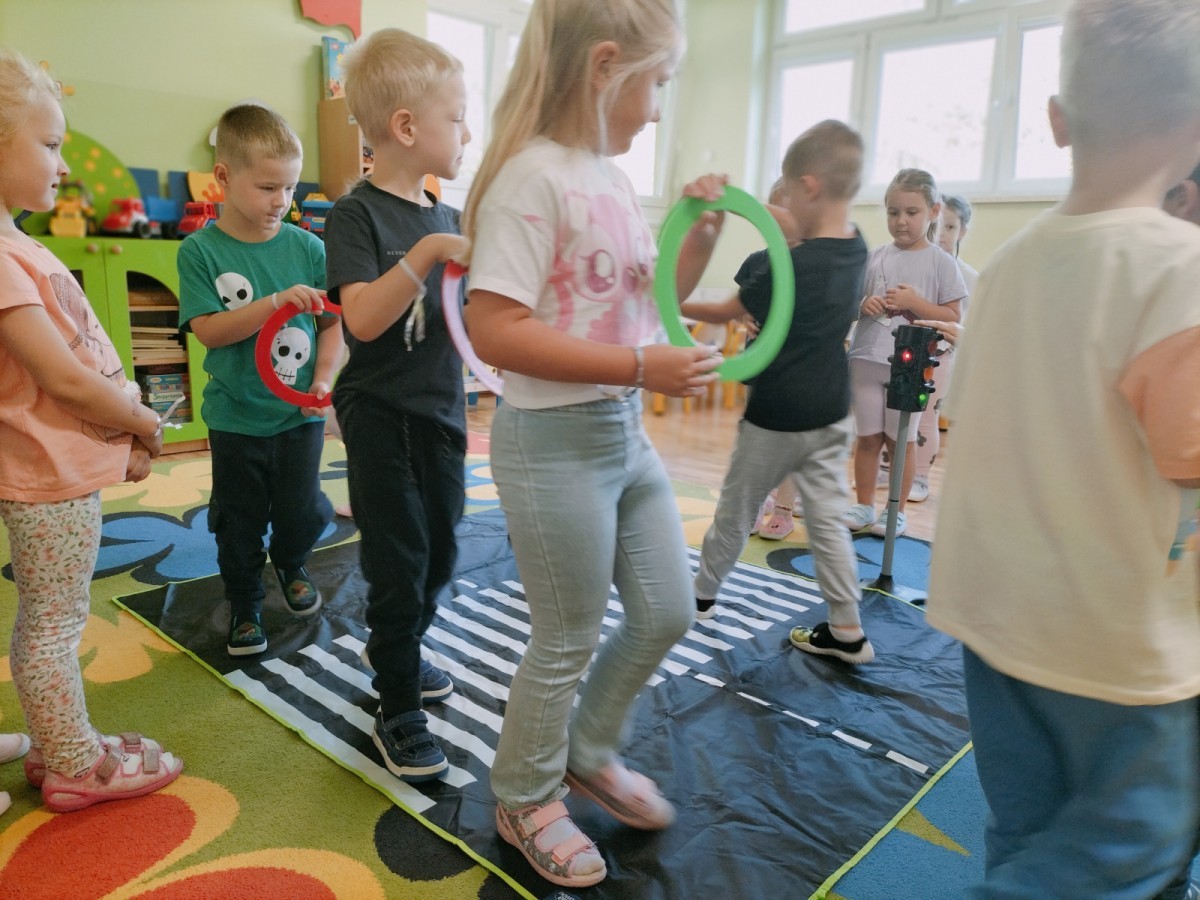 W grupie Biedronek odbyły się zajęcia poświęcone bezpieczeństwu i zasadom ruchu drogowego. Dzieci uczyły się, jak bezpiecznie poruszać się po ulicy, rozpoznawały znaki drogowe i poznawały rolę sygnalizacji świetlnej. Przedszkolaki z dużym zaangażowaniem brały udział w zajęciach, ucząc się poprzez zabawę, jak dbać o swoje bezpieczeństwo na drodze.