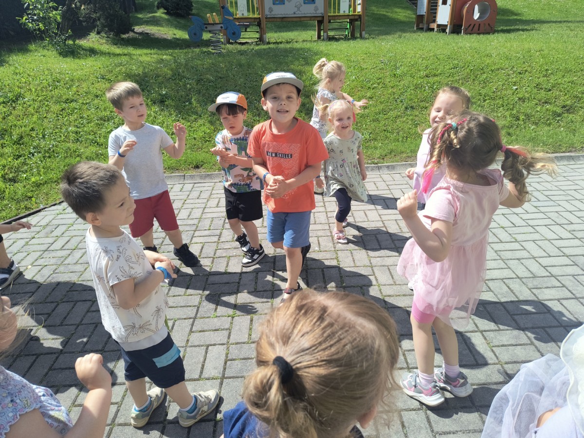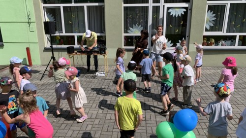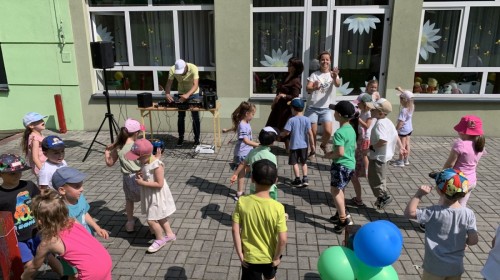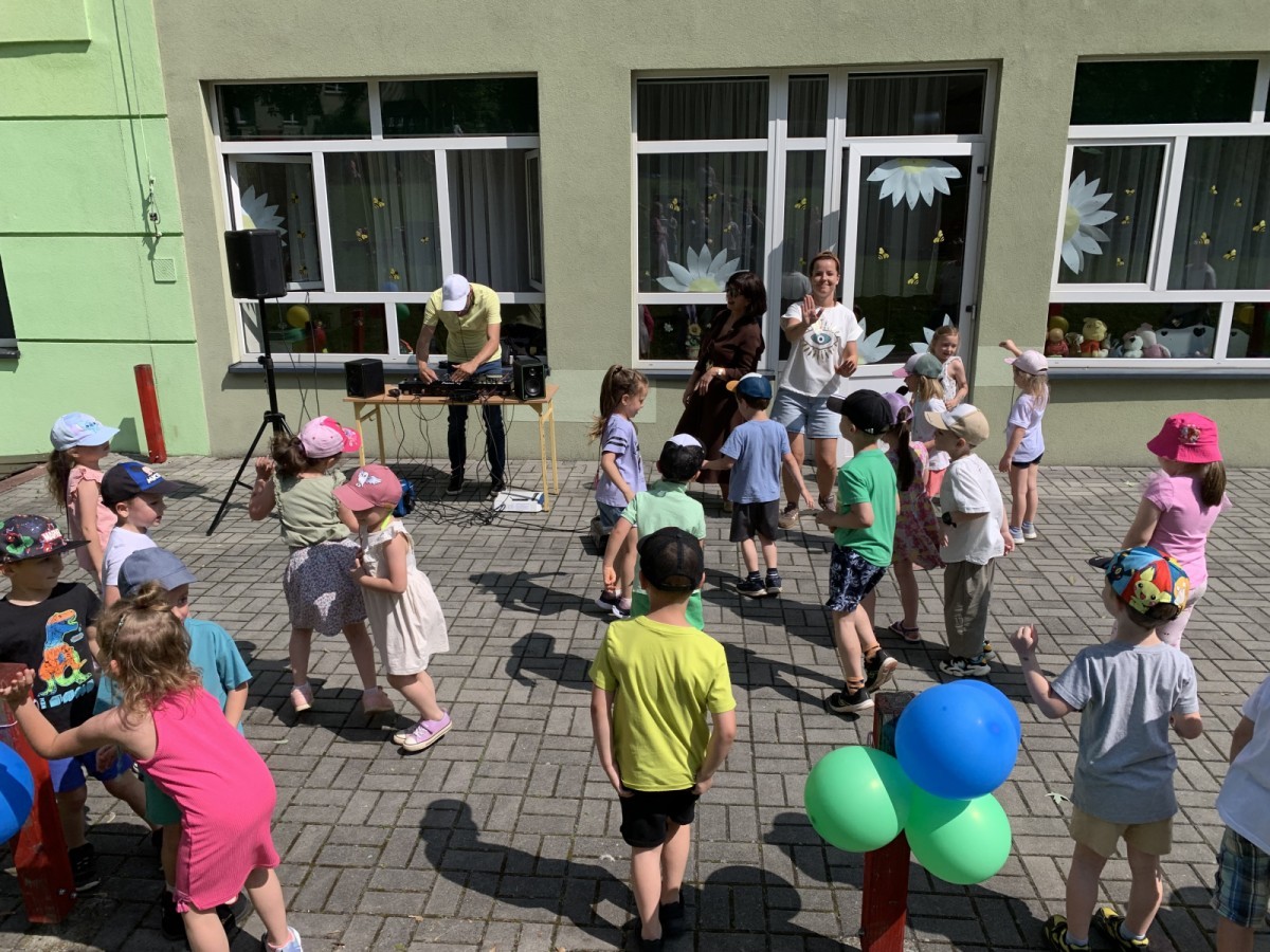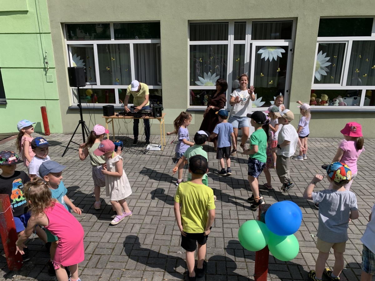 W piątek w naszym przedszkolu odbyła się wyjątkowa plenerowa dyskoteka, w której udział wzięły wszystkie grupy. To radosne wydarzenie poprowadził pan Julian B. – tata Nikodema z grupy Misiów.