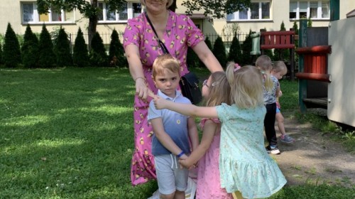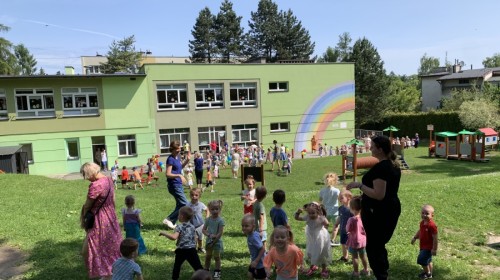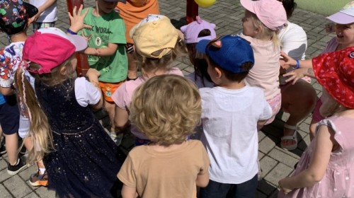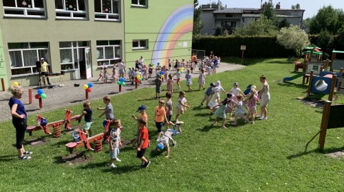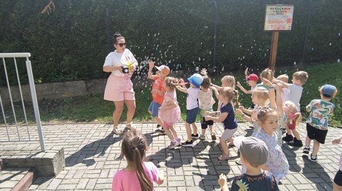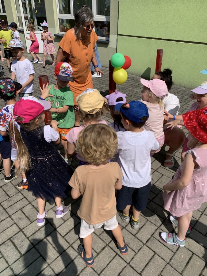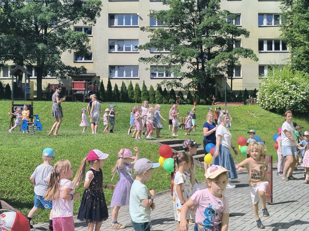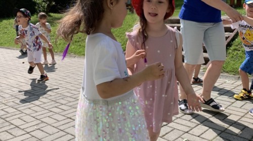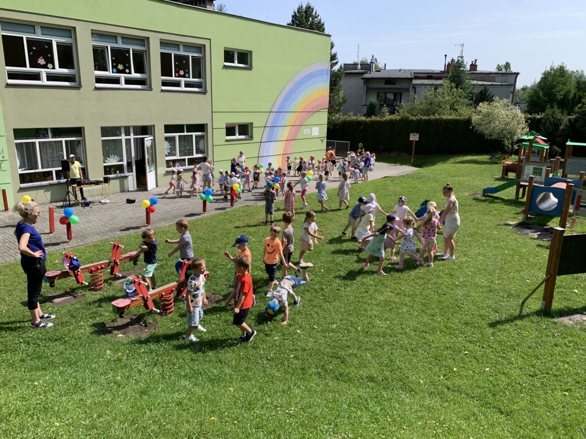 W piątek w naszym przedszkolu odbyła się wyjątkowa plenerowa dyskoteka, w której udział wzięły wszystkie grupy. To radosne wydarzenie poprowadził pan Julian B. – tata Nikodema z grupy Misiów.