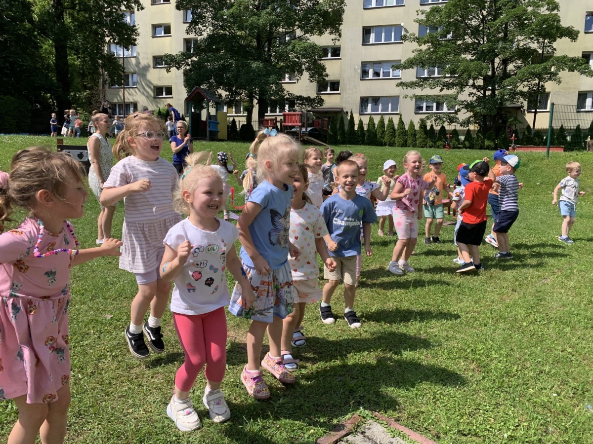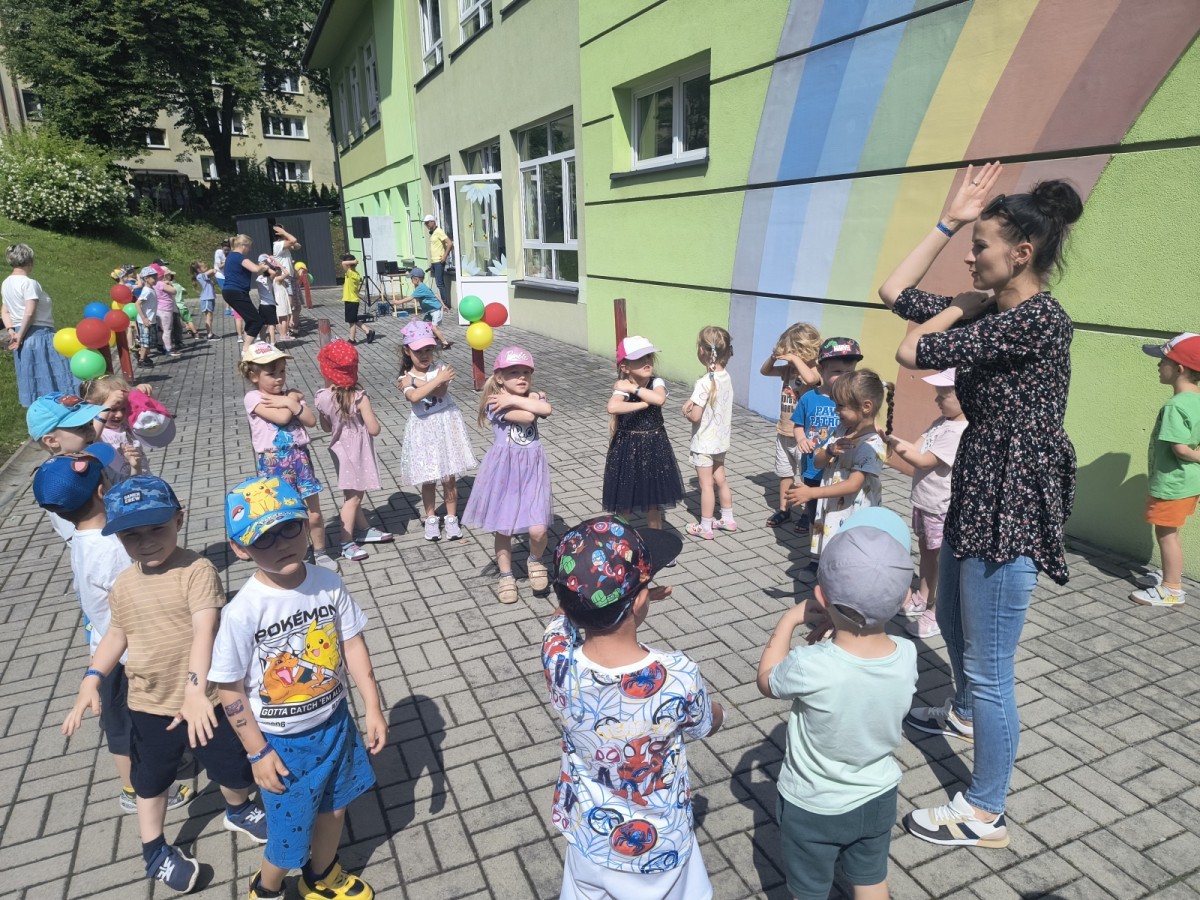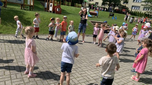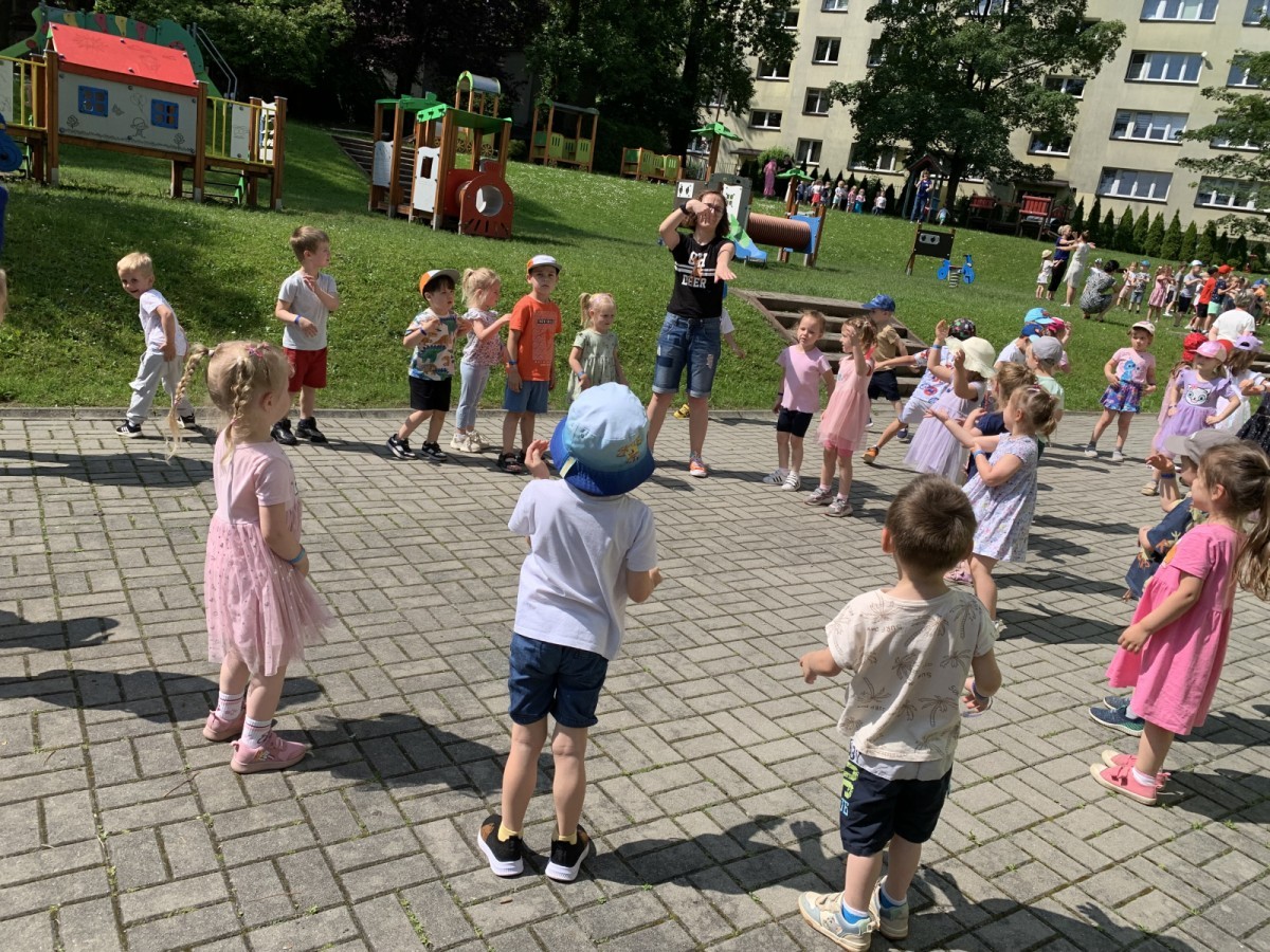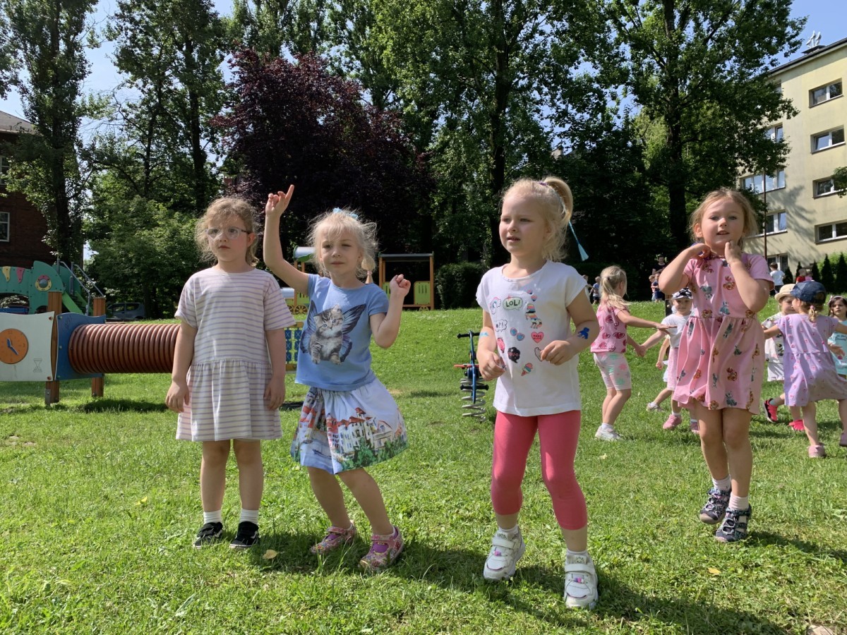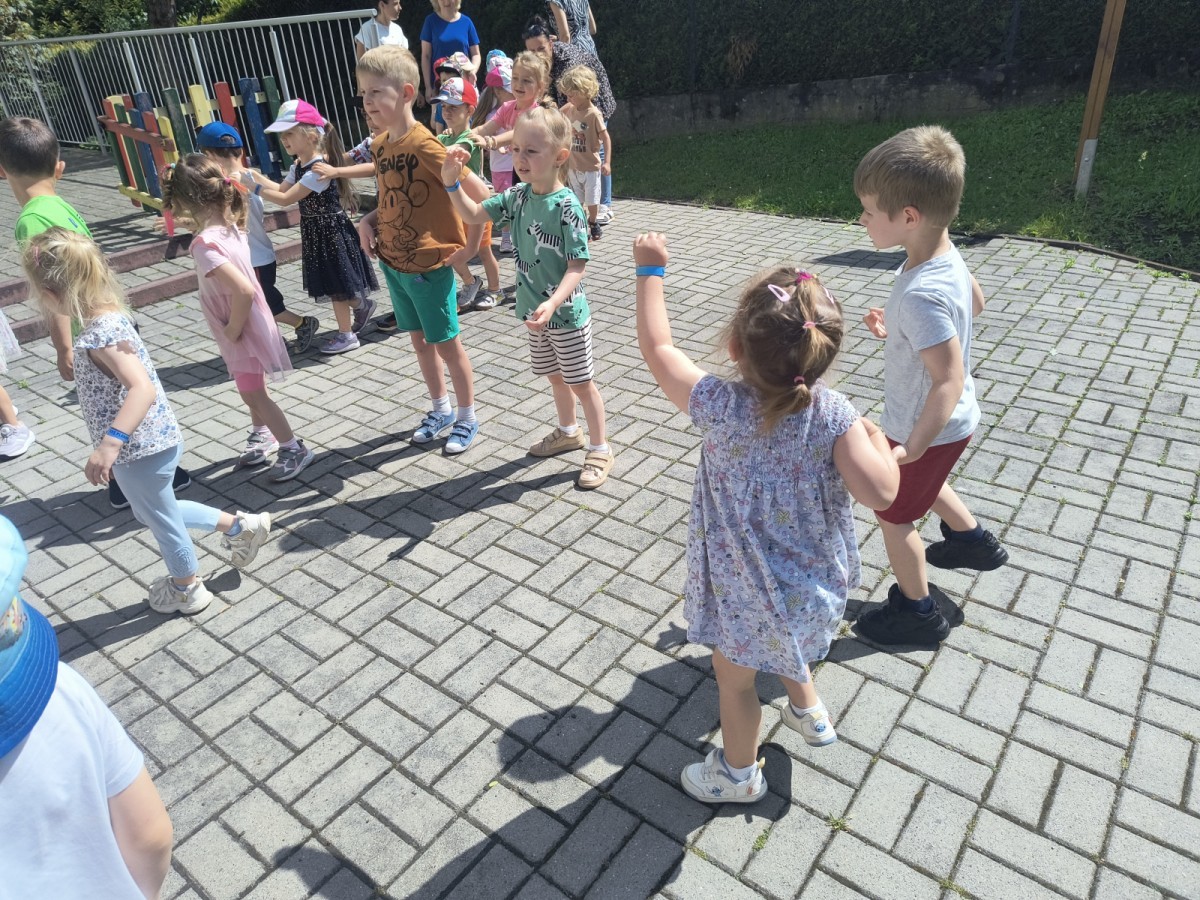 Dzieci tańczyły, śpiewały i radośnie integrowały się z koleżankami oraz kolegami z innych grup. Nie zabrakło też zabawnych, wspólnych układów tanecznych.