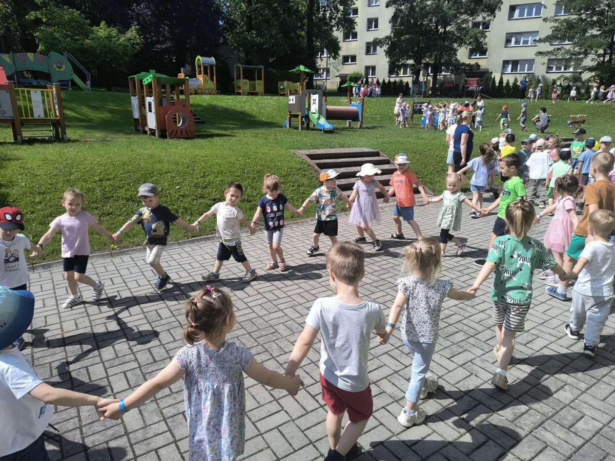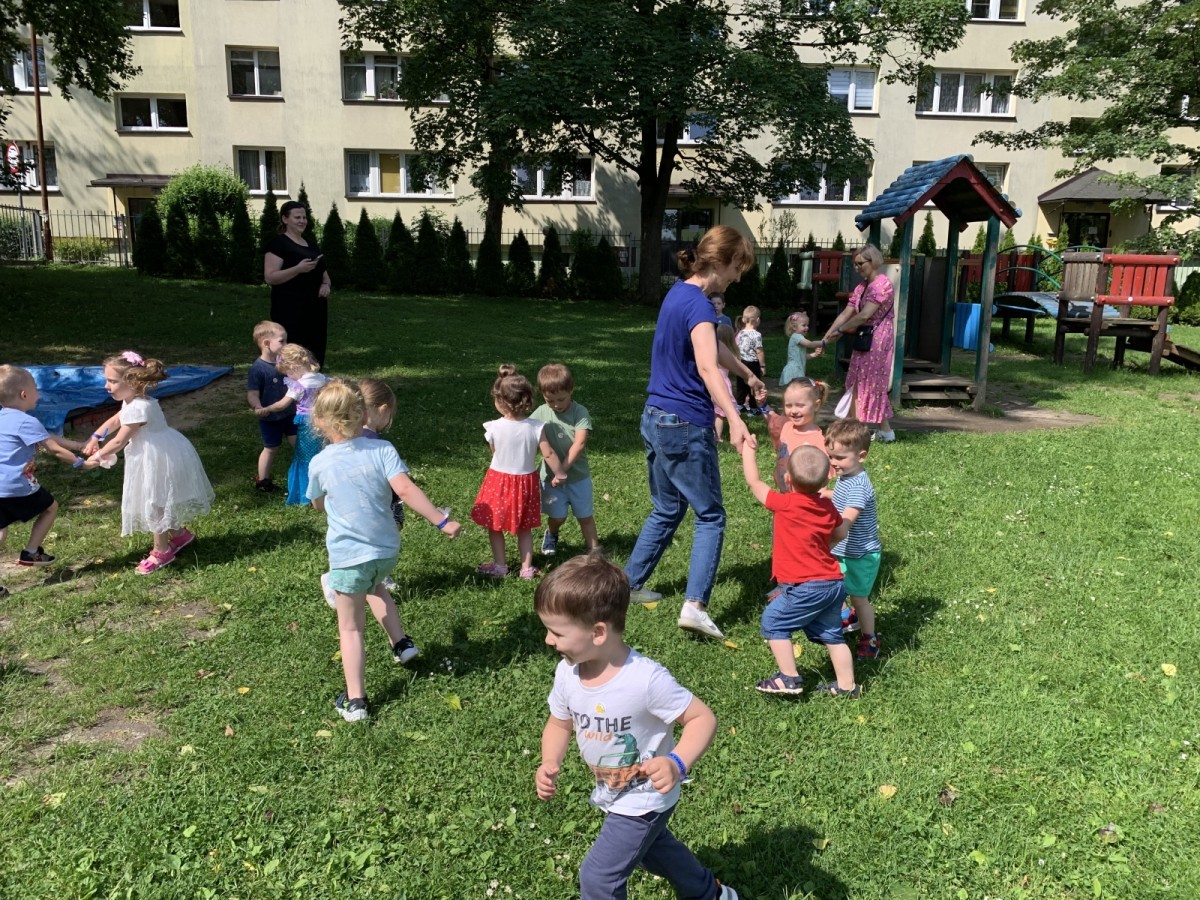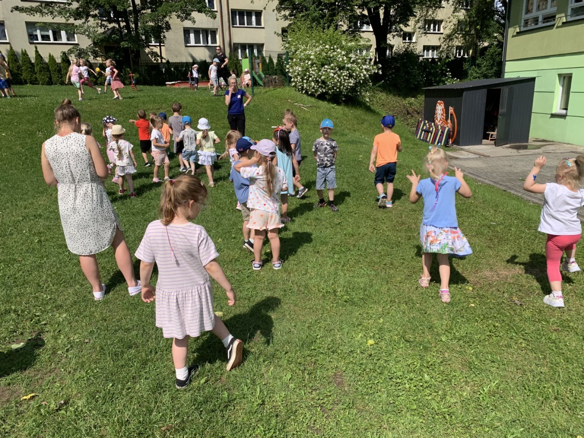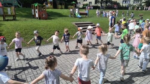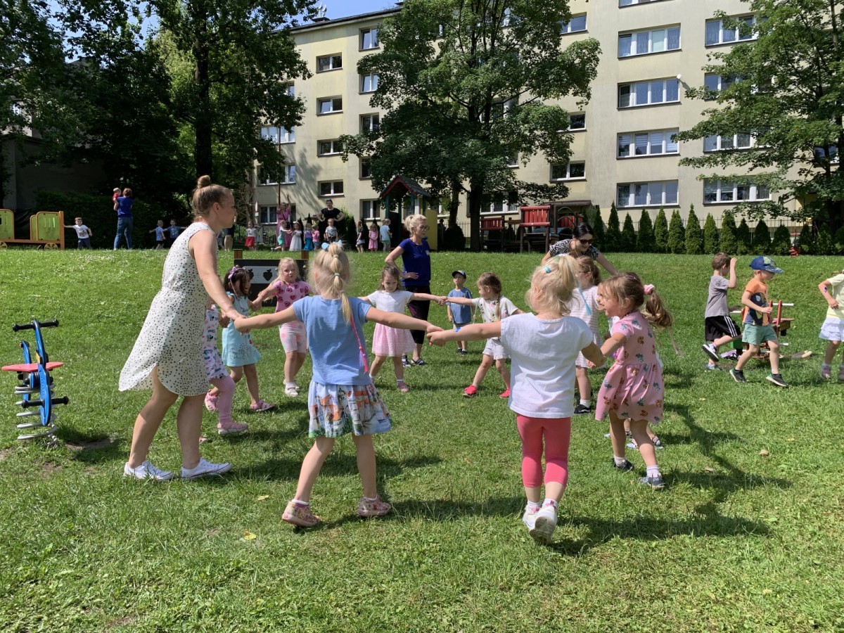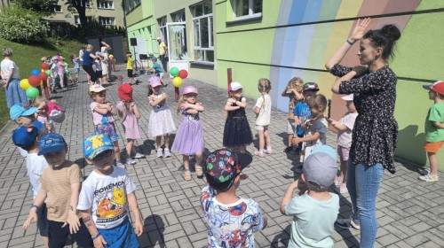Dzieci tańczyły, śpiewały i radośnie integrowały się z koleżankami oraz kolegami z innych grup. Nie zabrakło też zabawnych, wspólnych układów tanecznych.