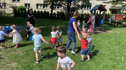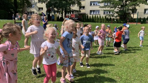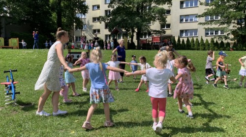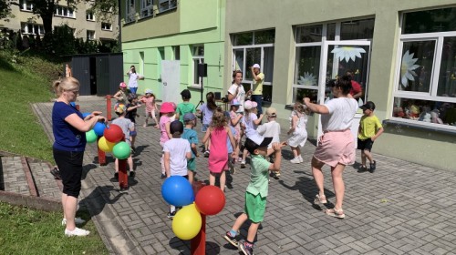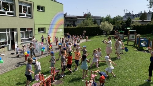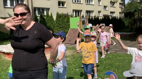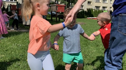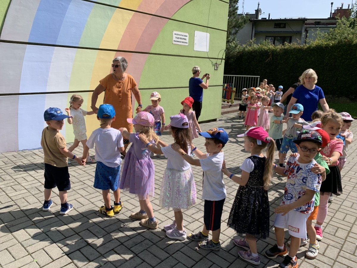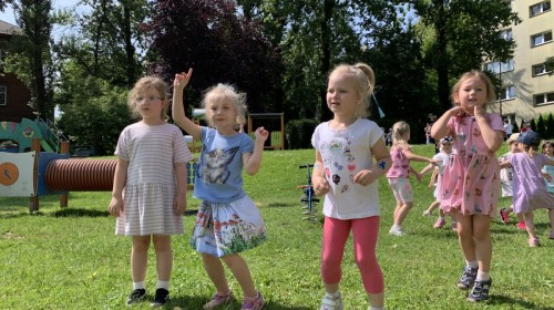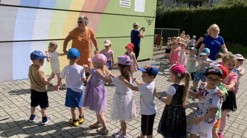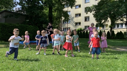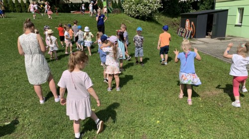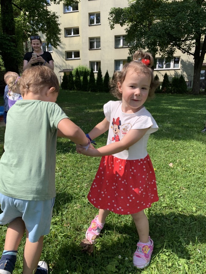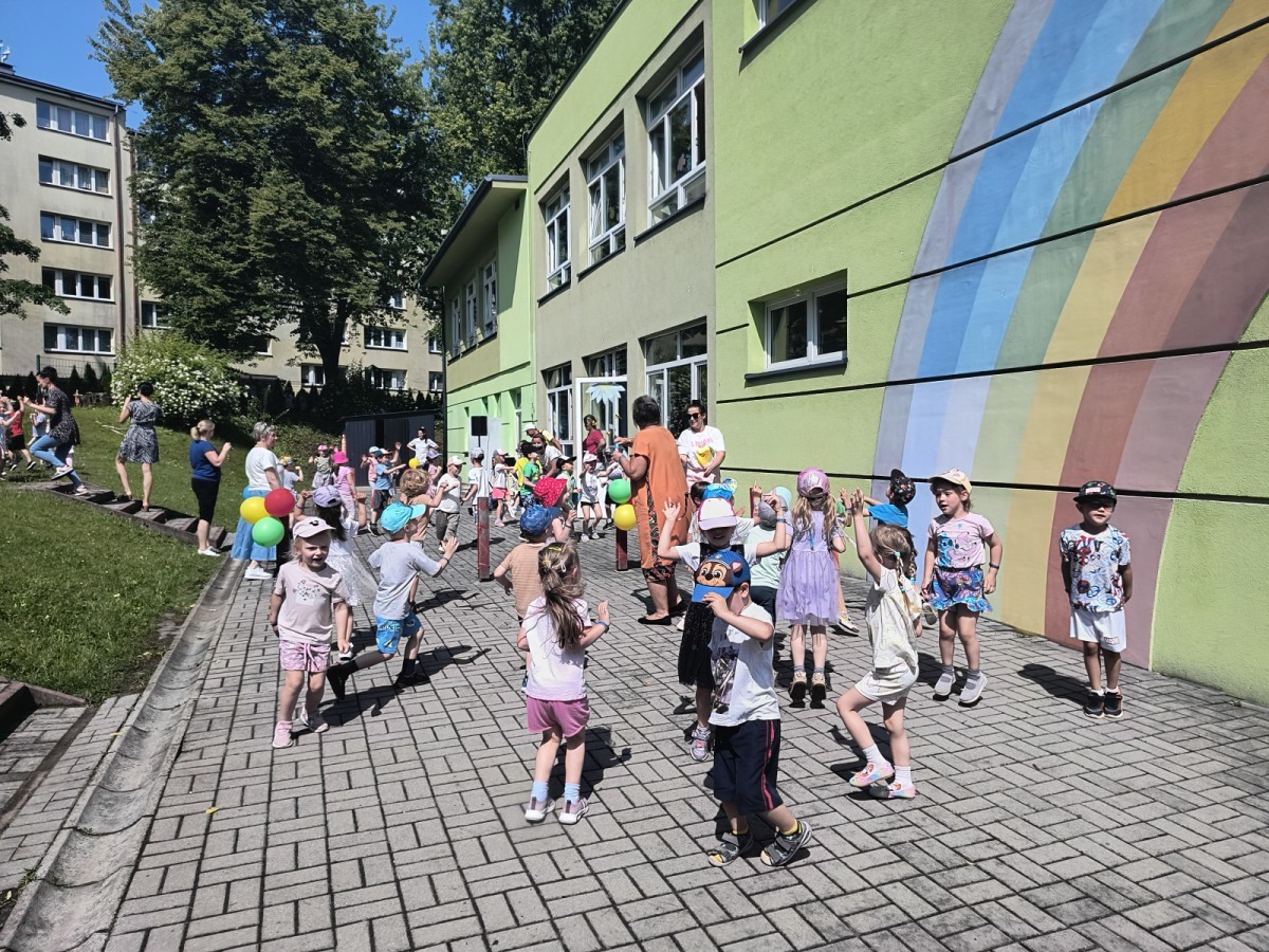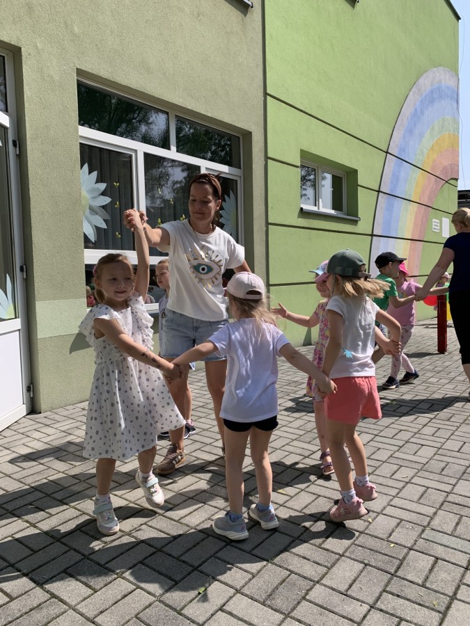 Dzieci tańczyły, śpiewały i radośnie integrowały się z koleżankami oraz kolegami z innych grup. Nie zabrakło też zabawnych, wspólnych układów tanecznych.