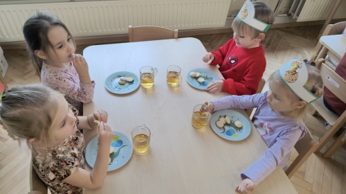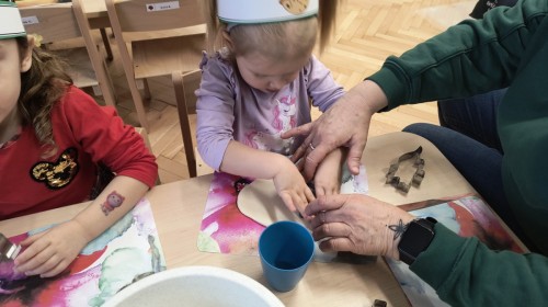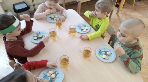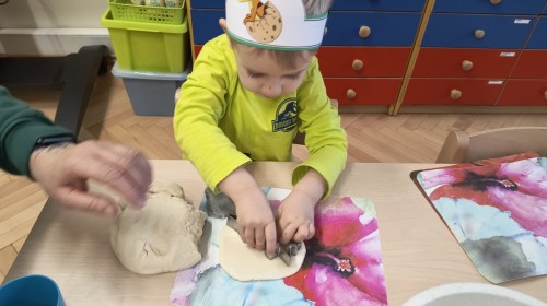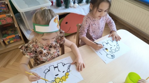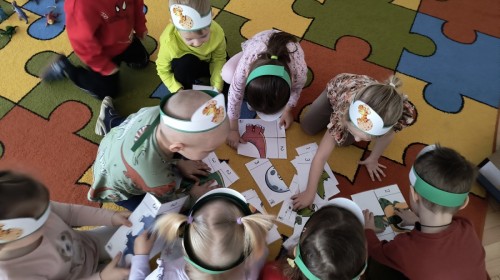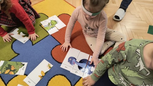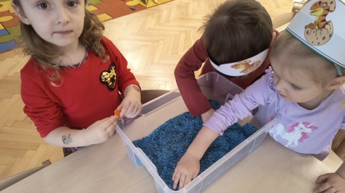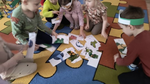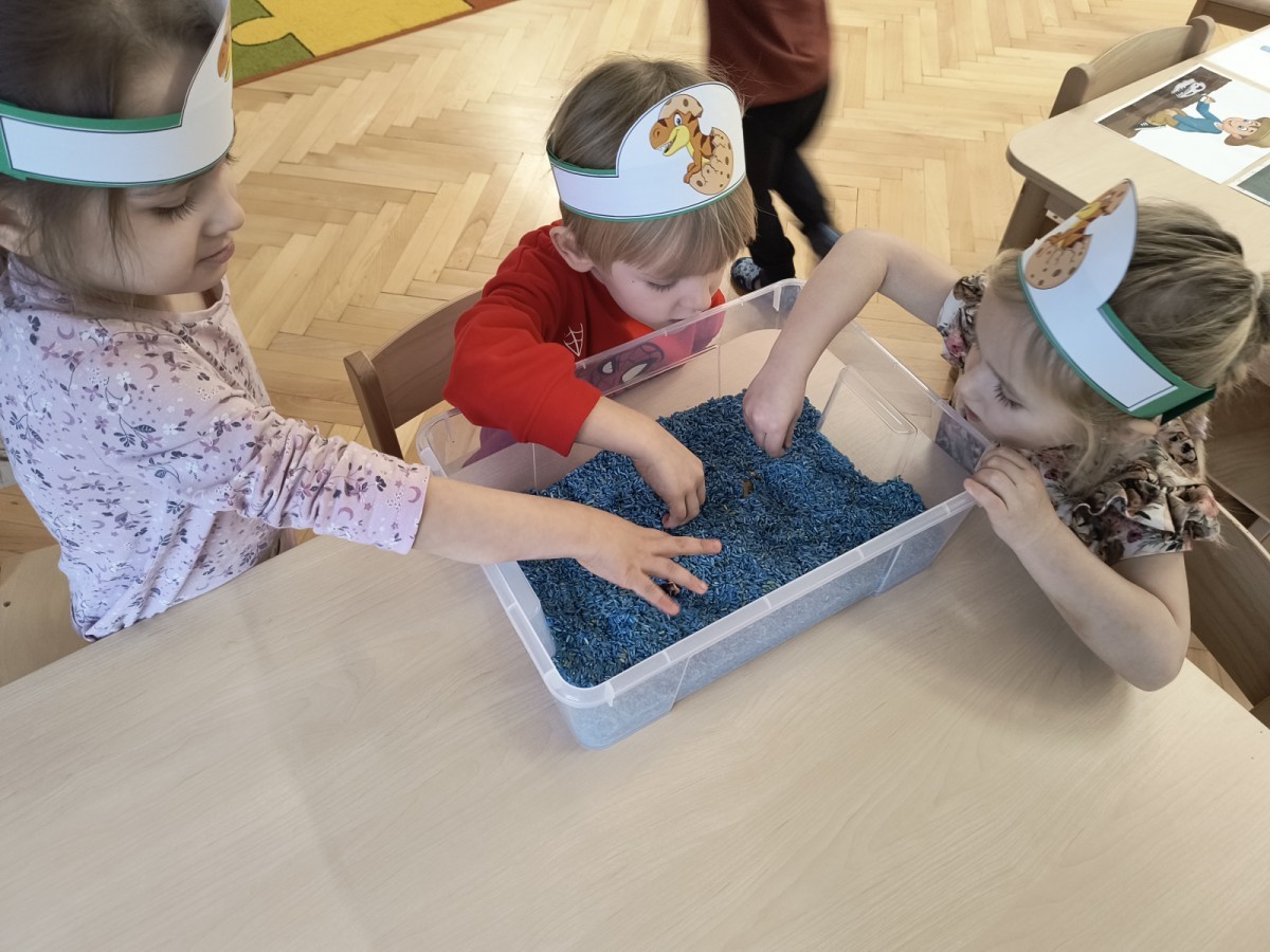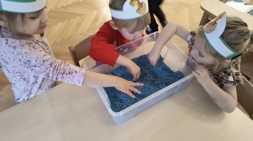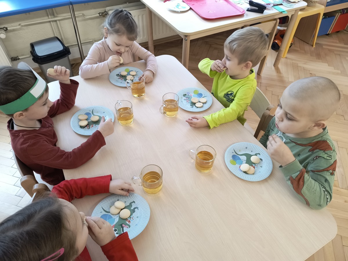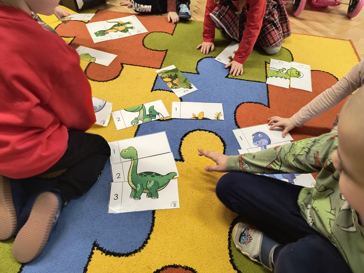 W tym dniu odbyły się aktywności związane z tymi prehistorycznymi gadami. Oglądaliśmy prezentacje multimedialną i słuchaliśmy odgłosów dinozaurów. Bawiliśmy się w paleontologa i wyszukiwaliśmy ukrytych dinozaurów w materiałach sypkich: ryżu, mące czy kaszy. Nie zabrakło zabaw plastycznych z wykorzystaniem masy solnej, farb, zabaw muzycznych czy ruchowych. Dzieci poznały różne gatunki tych gadów, sposób ich poruszania się i odżywiania w zabawie z latarkę „ Co dinozaur ma w brzuszku”. Dla głodnych „dinozaurów” przygotowany był ciasteczkowy poczęstunek. Na zakończenie wykonaliśmy pamiątkowe zdjęcia.