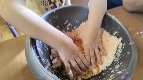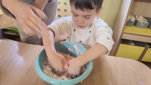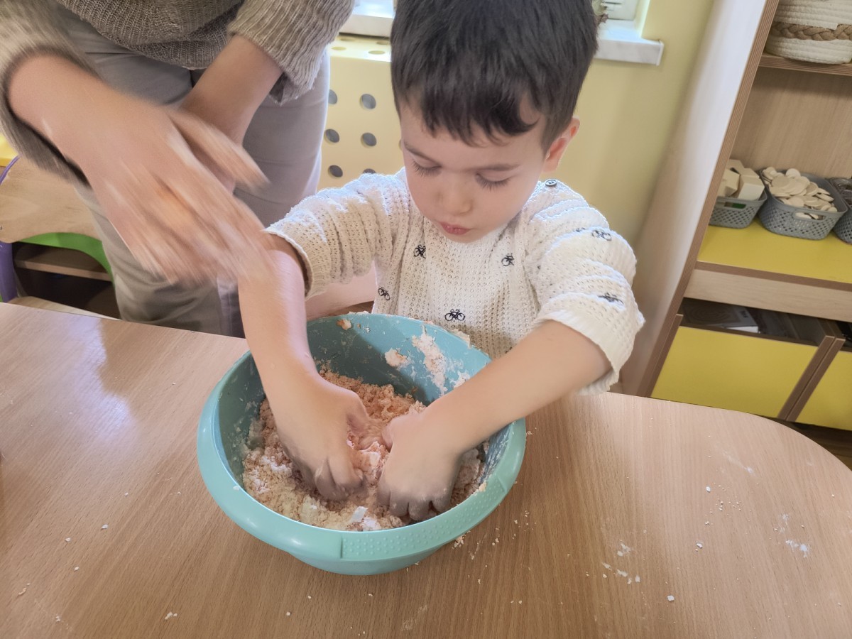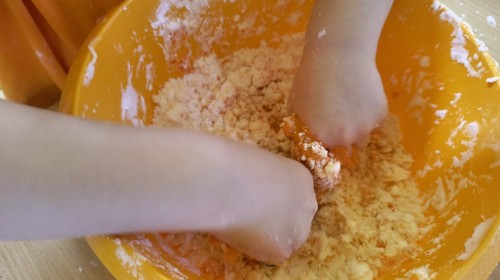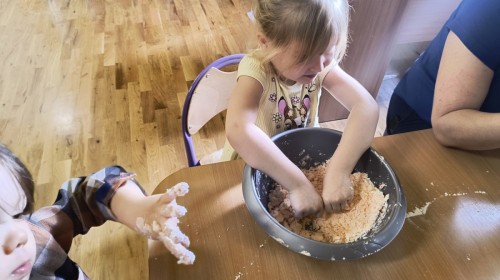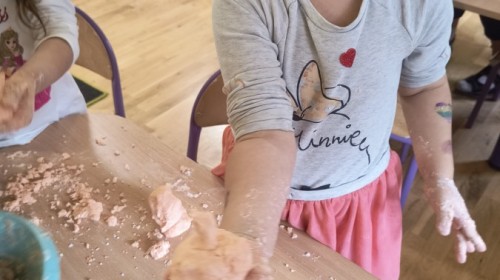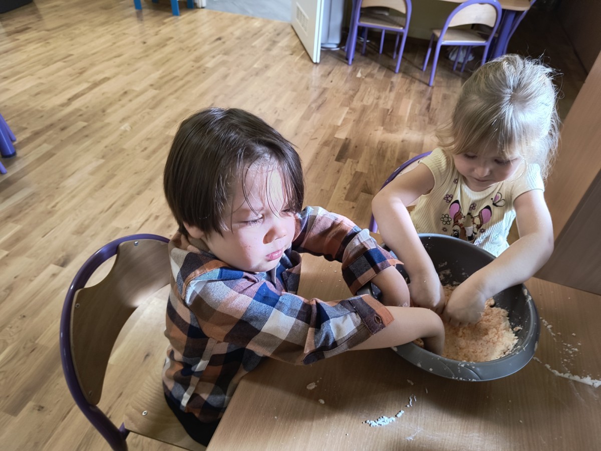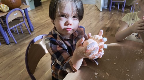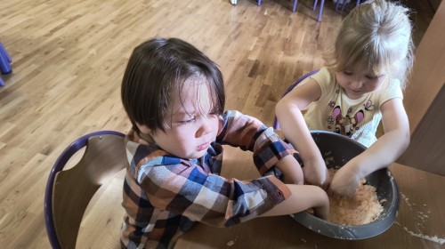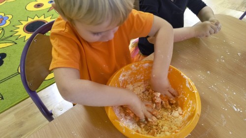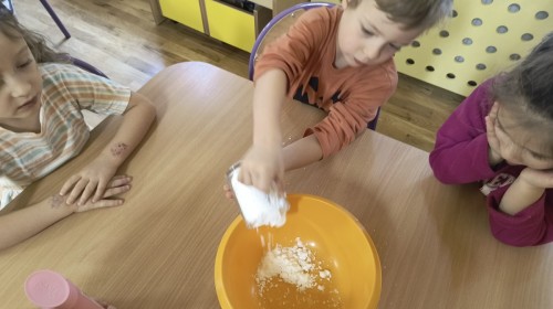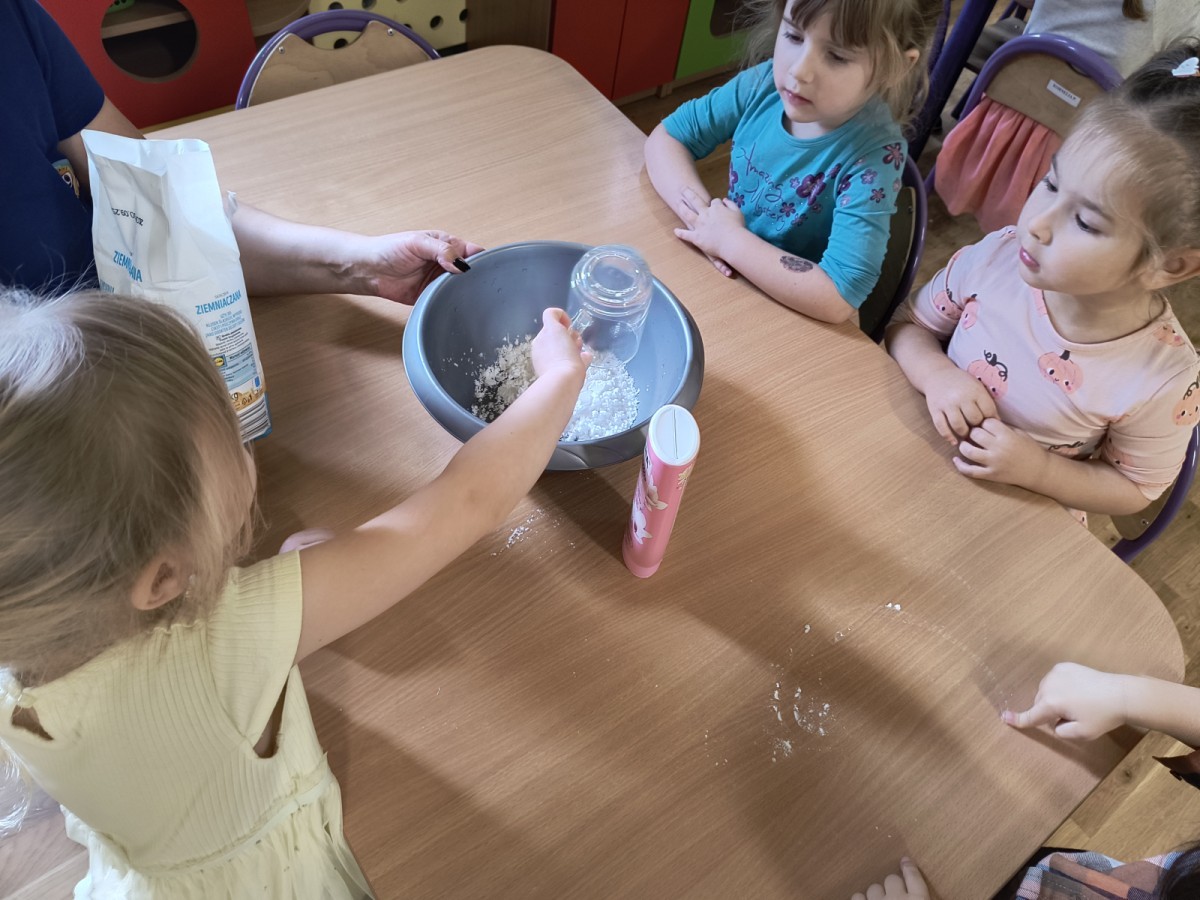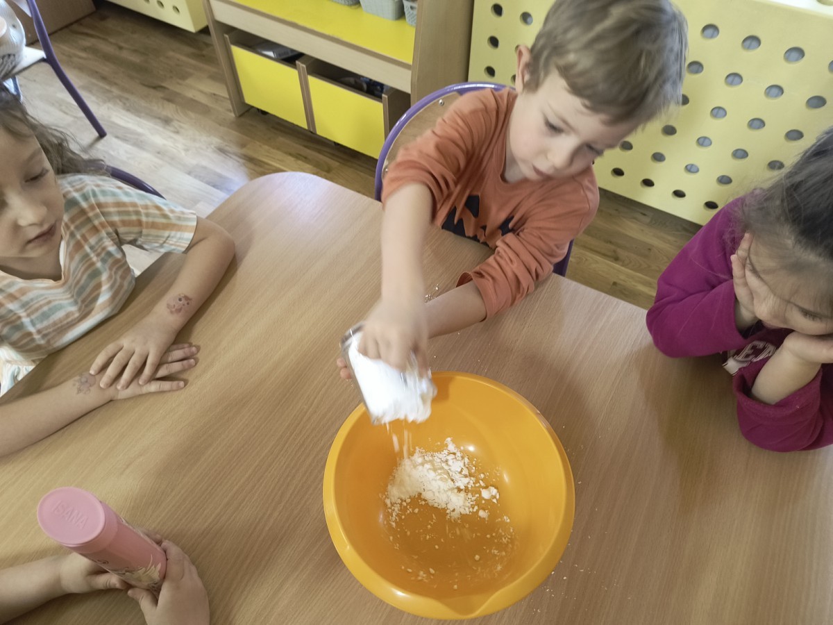 Na koniec z pomocą nauczycielek przygotowały masę aksamitną w kolorze...pomarańczowym, z której tworzyły różne dzieła, ale przede wszystkim - oczywiście małe dynie 🎃