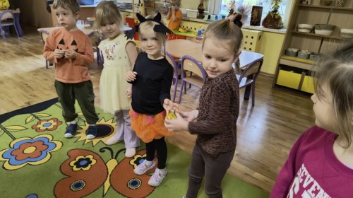 w minionym tygodniu dzieci z grupy 'Muchomorki' świętowały Dzień Dyni, połączony z realizacją koloru pomarańczowego z projektu edukacyjnego 'Sensoryczna tęcza'.