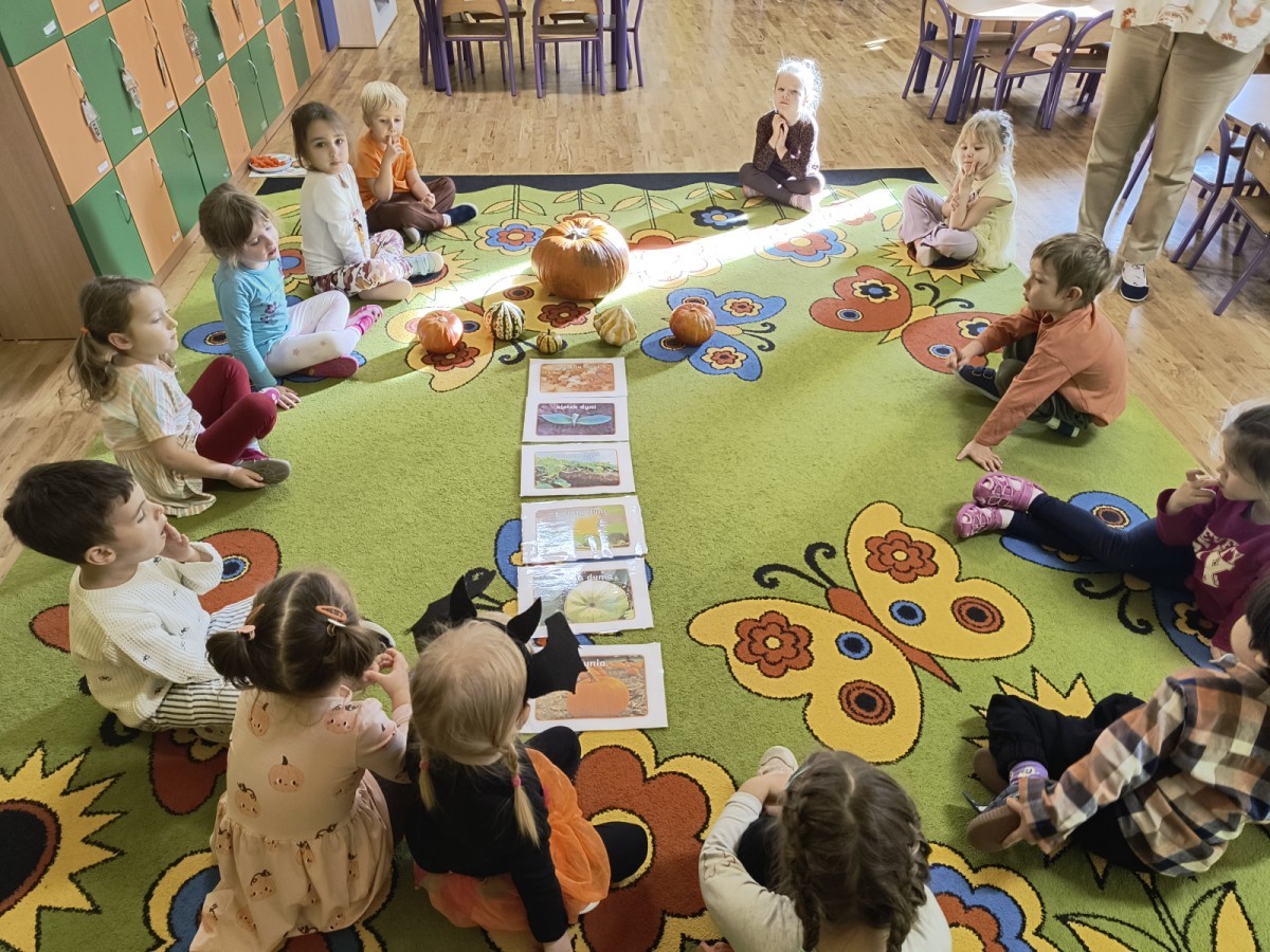 Dzieci poznały rodzaje dyni, etapy jej wzrostu a także jakie smakołyki można z niej przygotować.