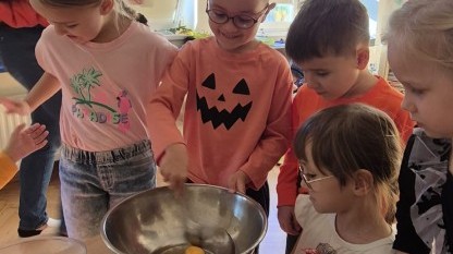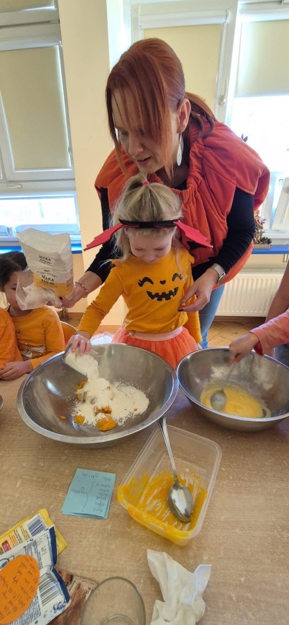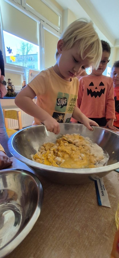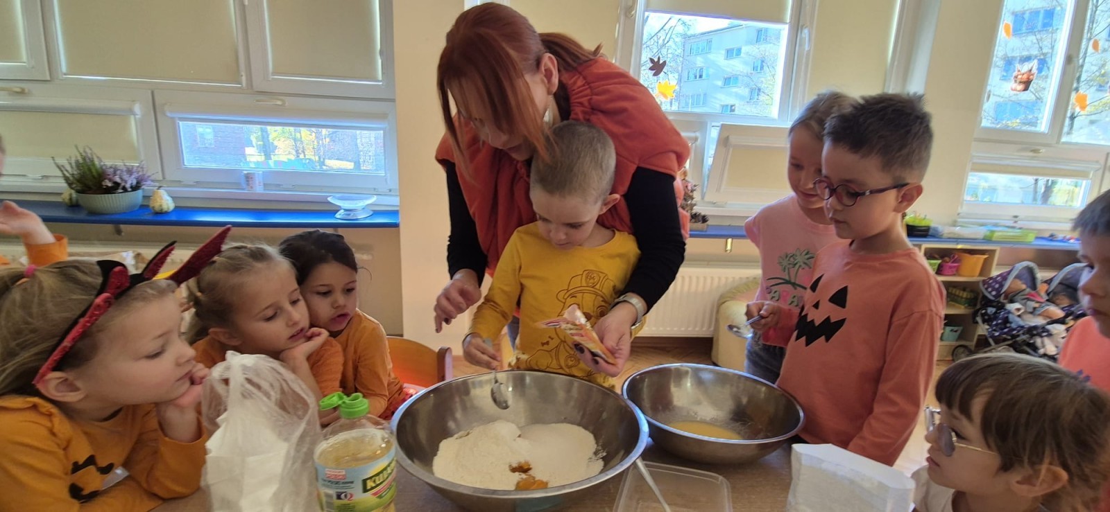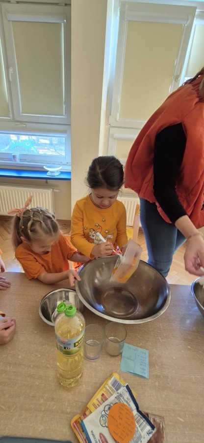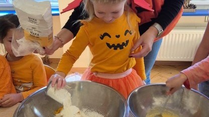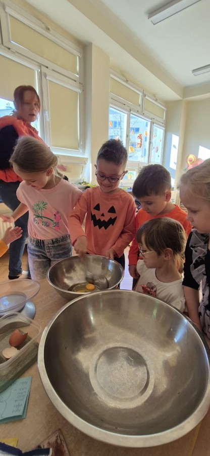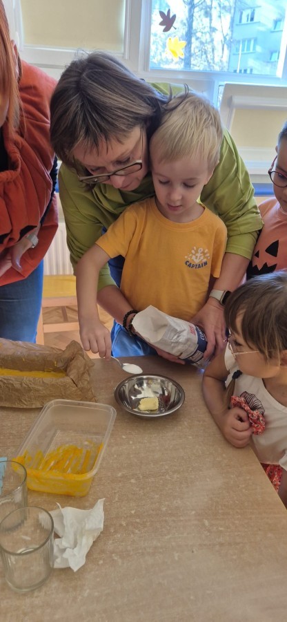 Podczas zajęć kulinarnych Wilczki wspólnie upiekły pyszny chlebek dyniowy, który wszystkim bardzo smakował! Dzieci świetnie się przy tym bawiły i z radością uczestniczyły w kolejnych aktywnościach.