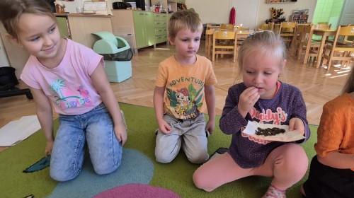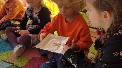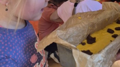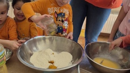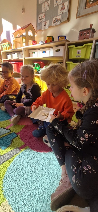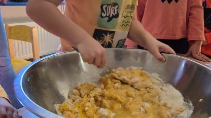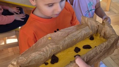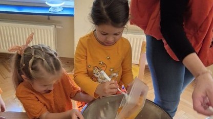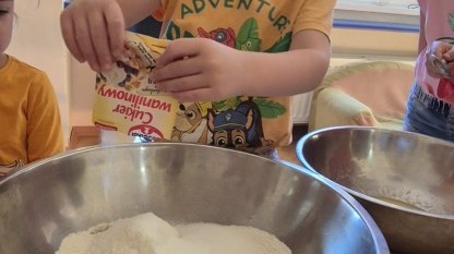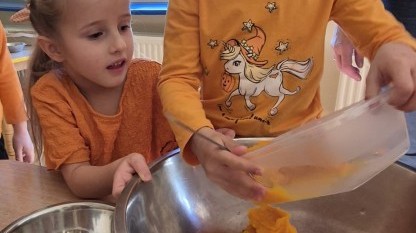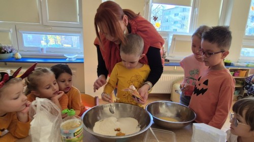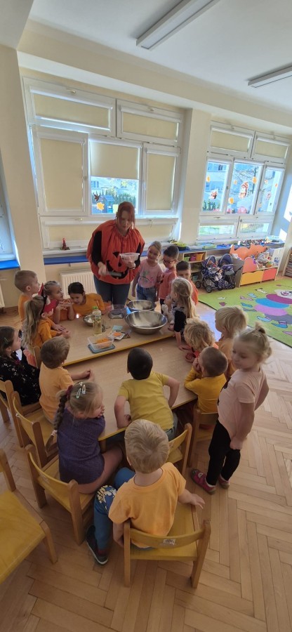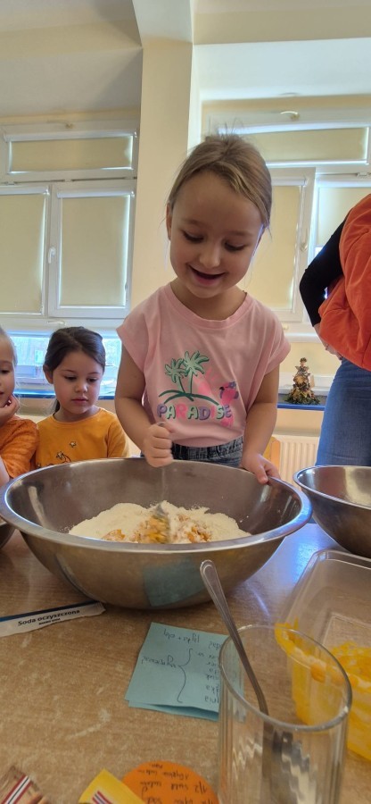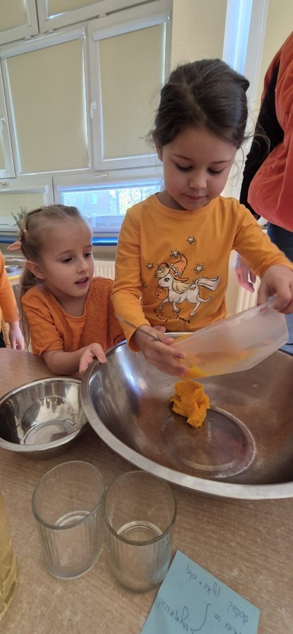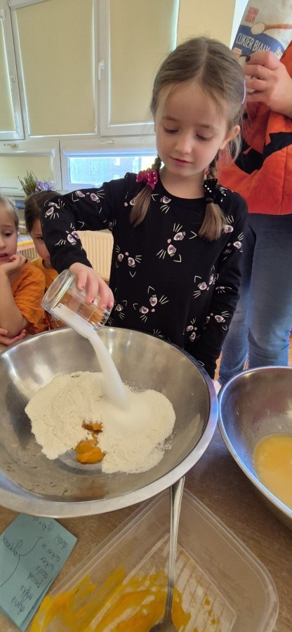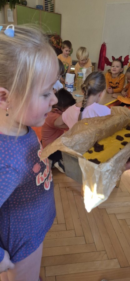 Podczas zajęć kulinarnych Wilczki wspólnie upiekły pyszny chlebek dyniowy, który wszystkim bardzo smakował! Dzieci świetnie się przy tym bawiły i z radością uczestniczyły w kolejnych aktywnościach.