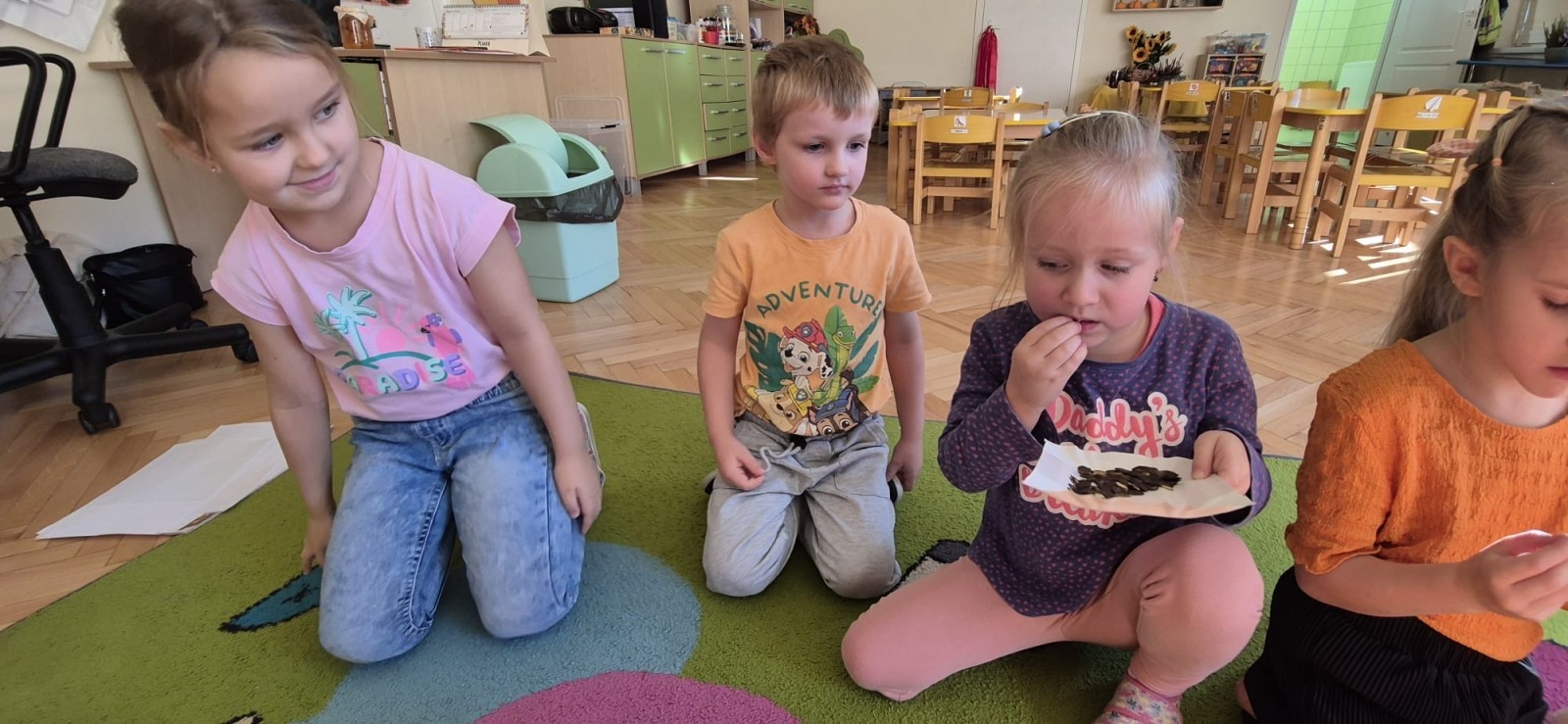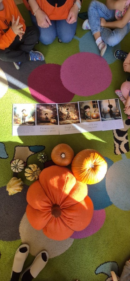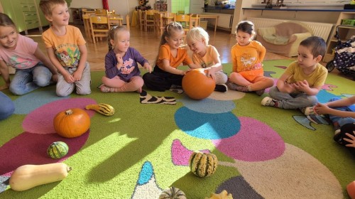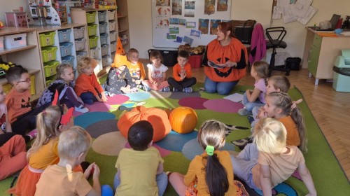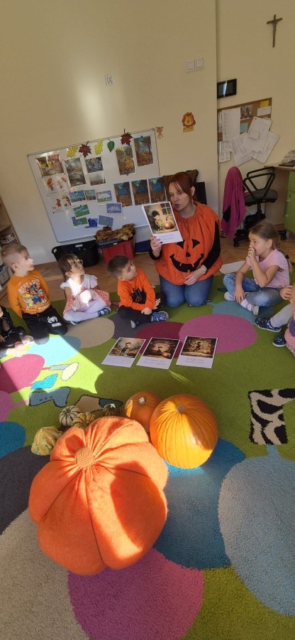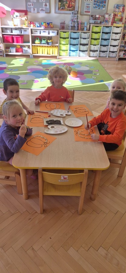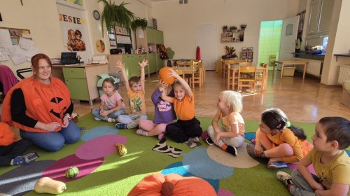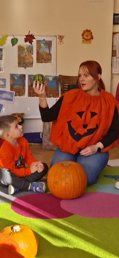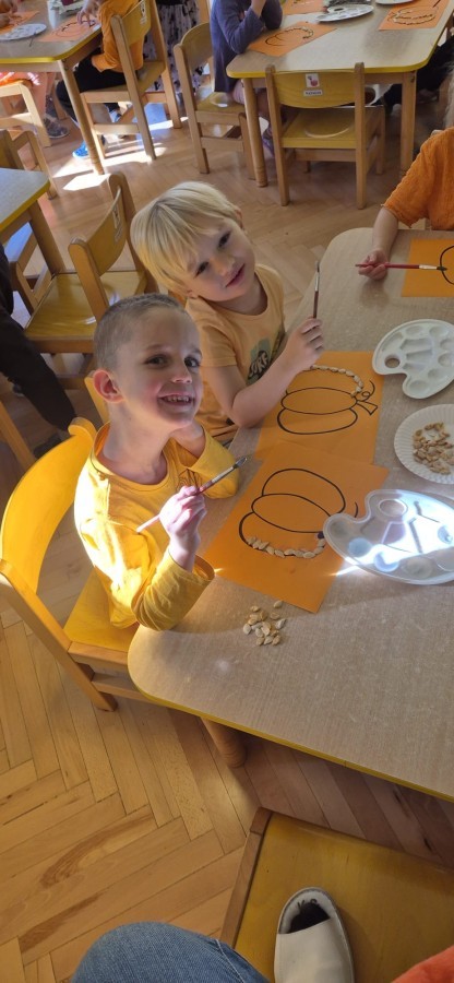 Dzieci z grupy Wilczków z wielkim zaangażowaniem uczestniczyły w zajęciach poświęconych temu wyjątkowemu warzywu. Poznały różne odmiany dyń, ich zastosowanie oraz właściwości zdrowotne. Dowiedziały się, że z dyni można przygotować wiele smacznych potraw, takich jak zupa, ciasto, babeczki czy przetwory.