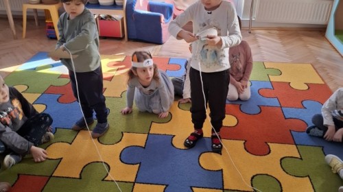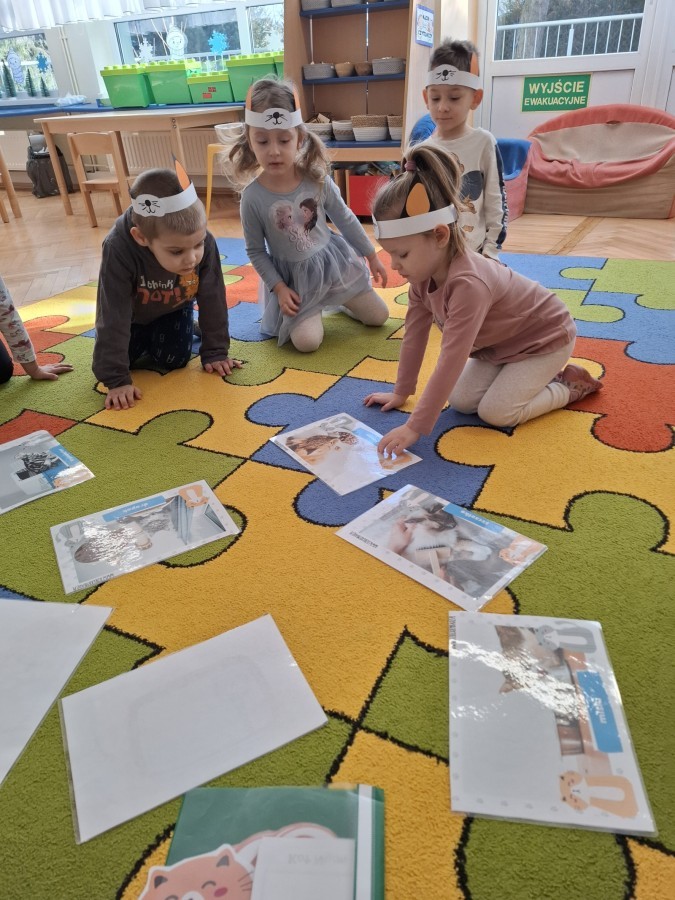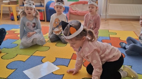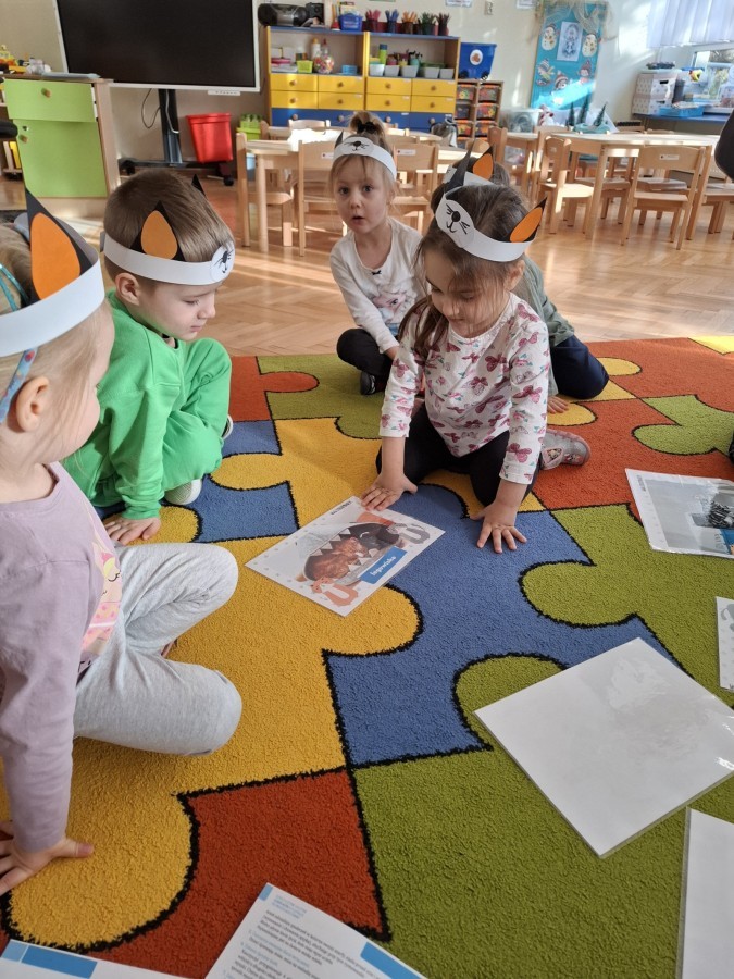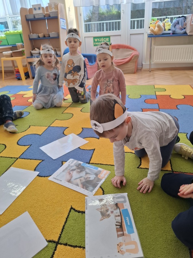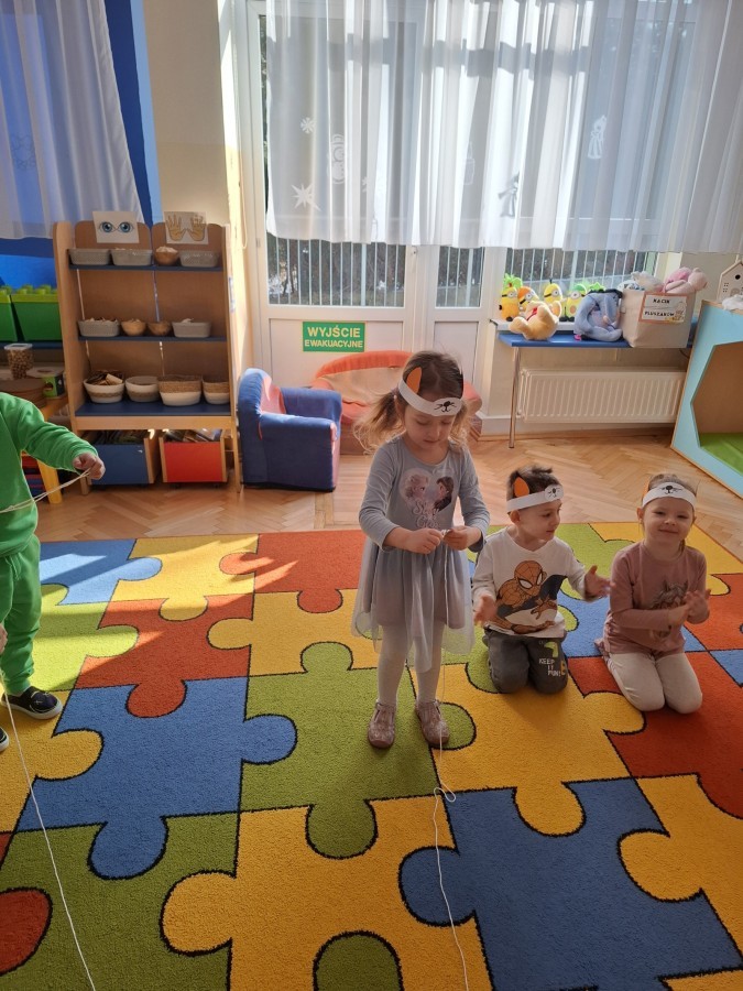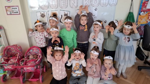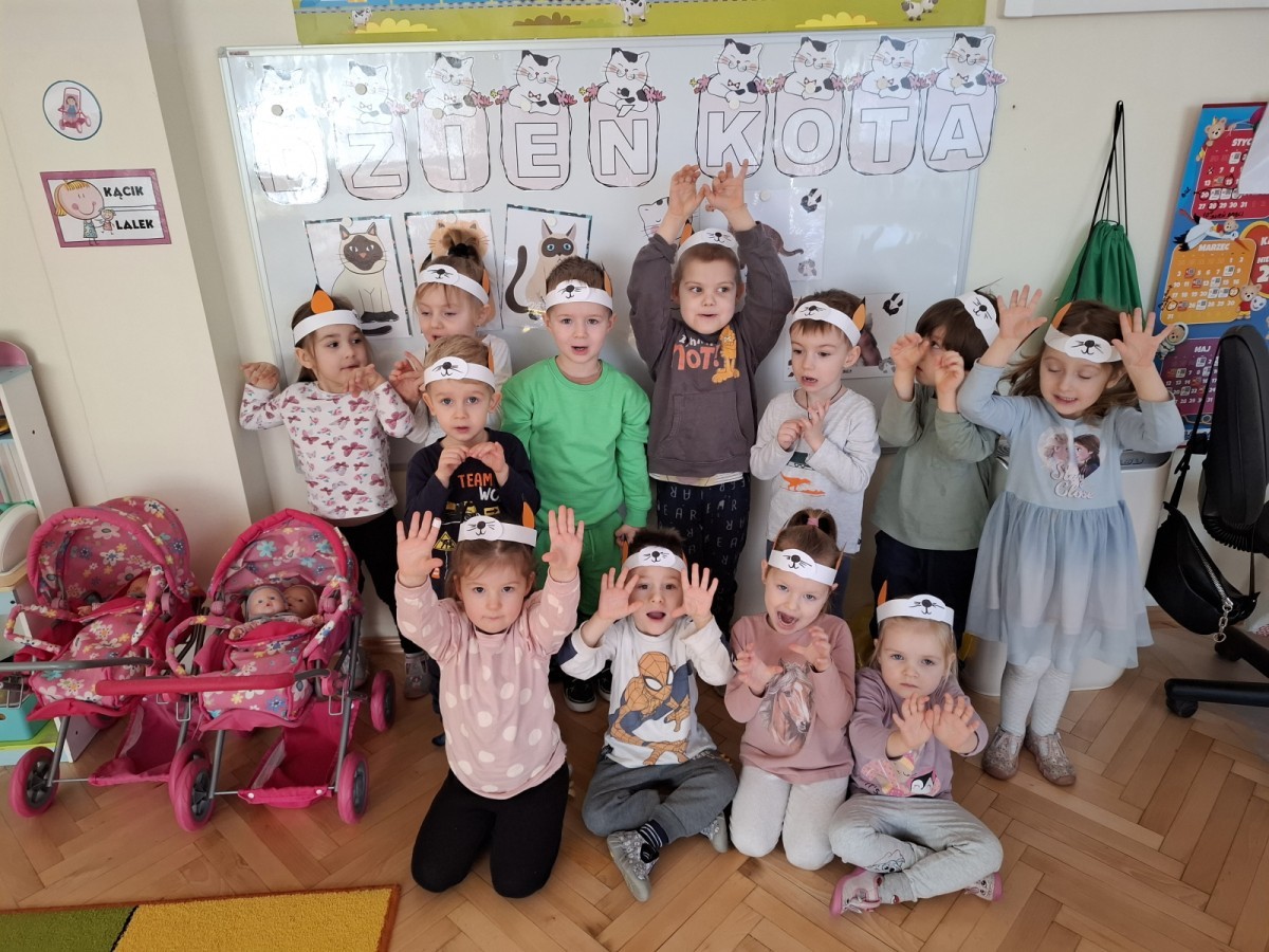 W poniedziałek 17 lutego w grupie „ Muchomorki” obchodziliśmy Dzień Kota. W tym dniu przygotowane były aktywności poznawcze, muzyczne, ruchowe związane z tematyką. Dzieci poznały wybrane gatunki kotów dzikich oraz domowych, zapoznały się z życiem i potrzebami kotków, składały obrazki z części, wykonywały pracę plastyczną. Nie zabrakło wesołych kocich zabaw ruchowych, zabaw w spostrzeganie „ Gdzie schował się kotek”, ćwiczeń ortofonicznych i zabaw zręcznościowych „ Kotek łapie myszkę”. Wszyscy się dobrze bawiliśmy.!
