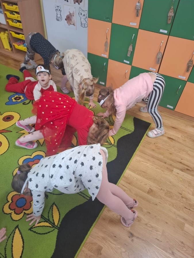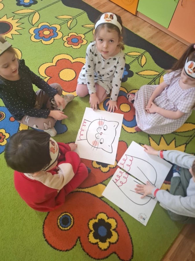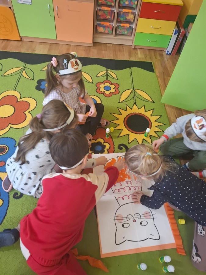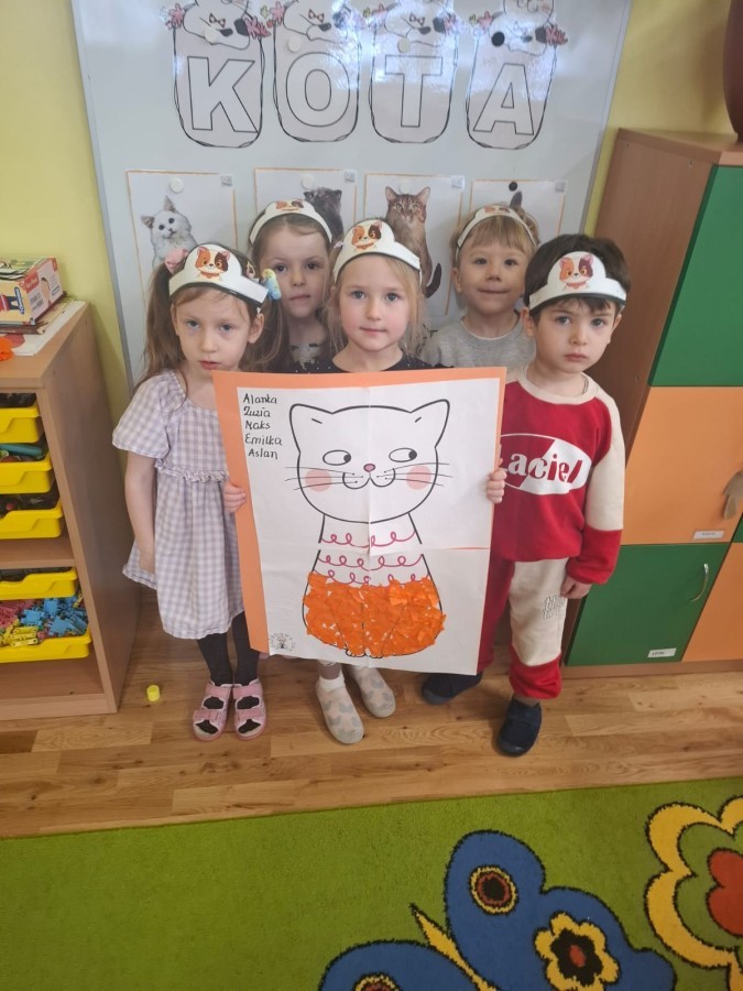 Dzieci brały udział w różnorodnych zabawach ruchowych, plastycznych i dydaktycznych inspirowanych światem kotów. Nie zabrakło „kocich” zadań, ćwiczeń zręcznościowych oraz twórczych aktywności, które dostarczyły przedszkolakom mnóstwo radości.