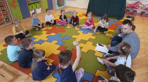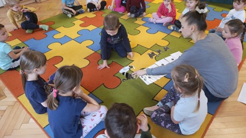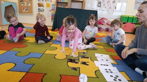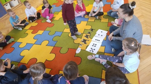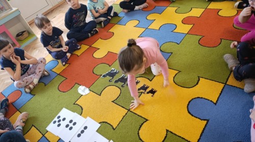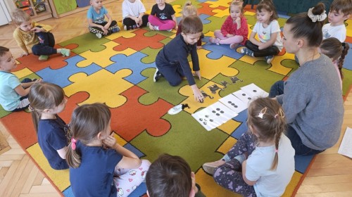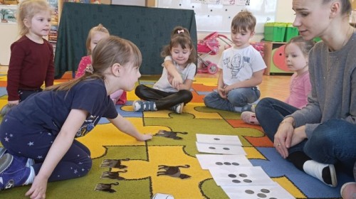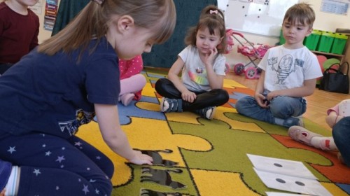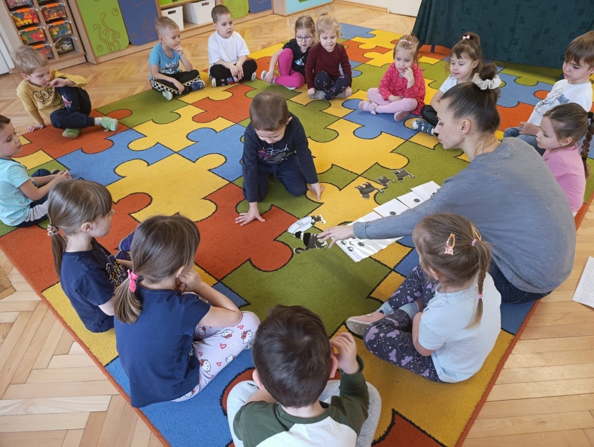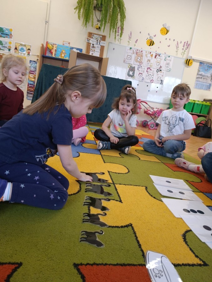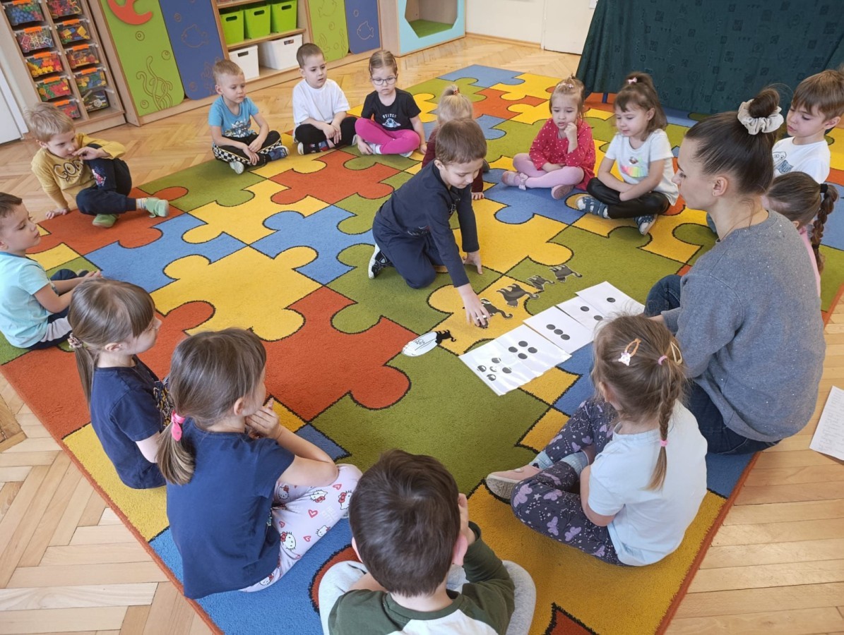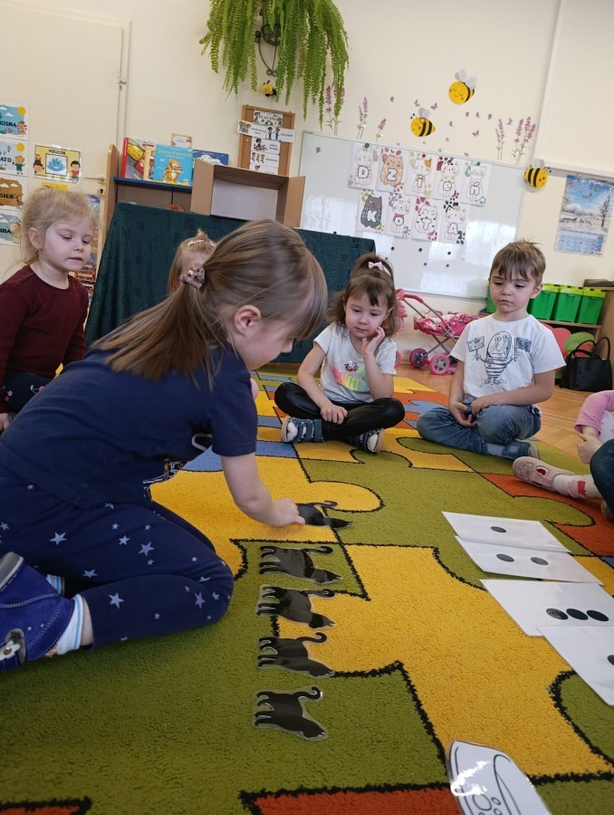 Nie zabrakło również zajęć matematycznych. Dzieci przeliczały kotki, porównywały ich wielkość oraz układały je od najmniejszego do największego. Ćwiczyły przy tym spostrzegawczość i logiczne myślenie. Wykonywały także zadania związane z wycinaniem, doskonaląc swoje umiejętności manualne.