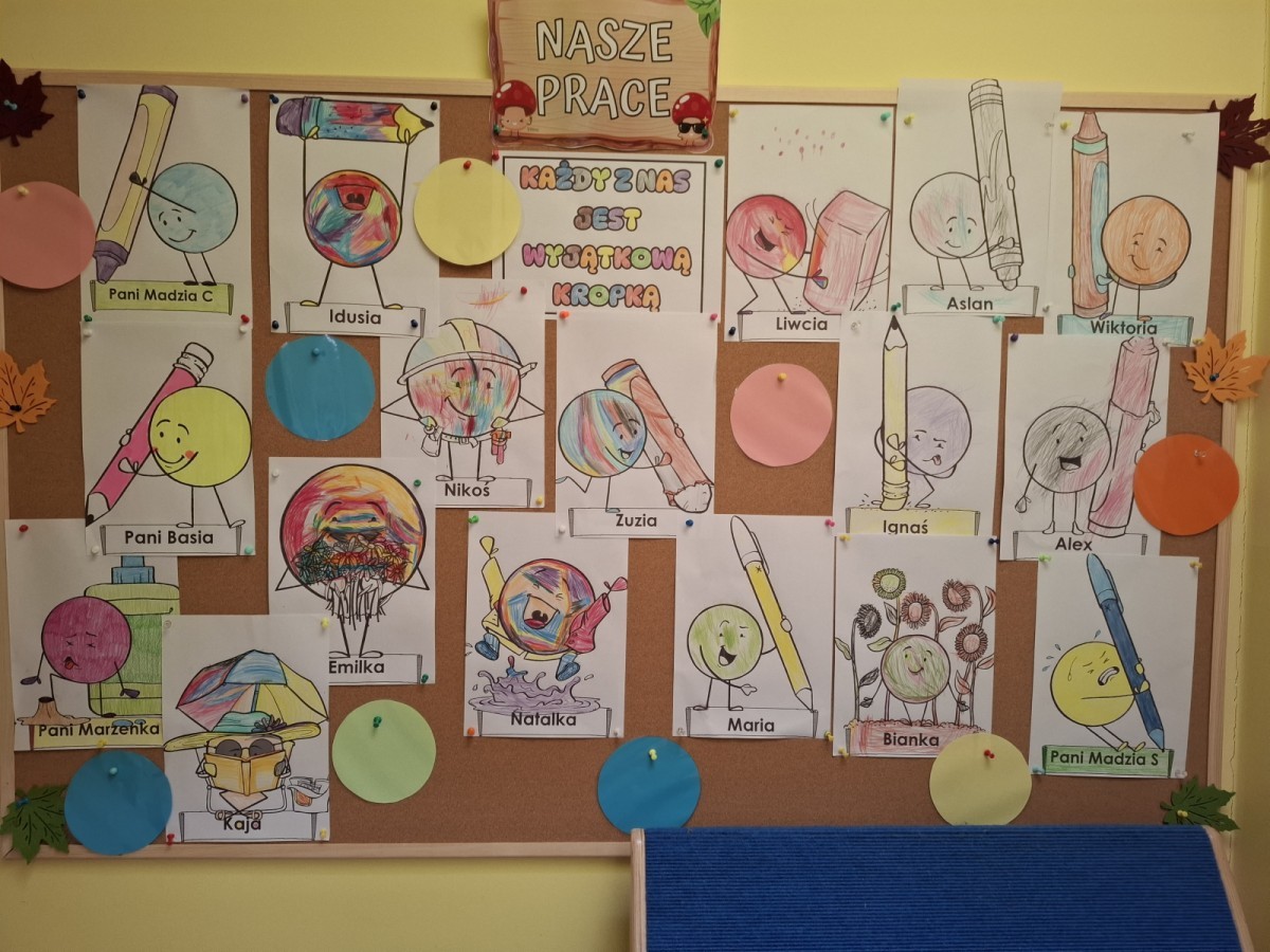 Dziś, 15 września, w naszym przedszkolu świętowaliśmy Międzynarodowy Dzień Kropki – dzień, który promuje kreatywność, odwagę i wiarę w siebie. Z tej okazji na dzieci czekało mnóstwo ciekawych zabaw i kolorowych aktywności. Przedszkolaki z wielkim entuzjazmem brały udział w zajęciach, uśmiechy nie znikały z twarzy, a radosna atmosfera towarzyszyła nam przez cały dzień!
