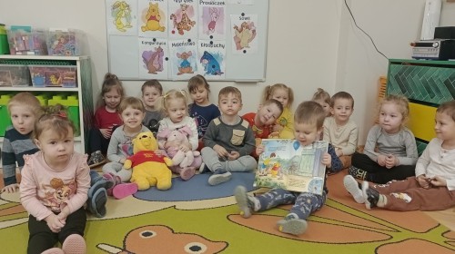 W poniedziałek 20 stycznia przedszkolaki z naszego przedszkola obchodziły DZIEŃ KUBUSIA PUCHATKA. Tego niezwykle przyjaznego, ale nieco niezdarnego puchatego misia, kochającego miodek, znają i uwielbiają dzieci na całym świecie. Dzieci miały okazję dowiedzieć się jaka była historia powstania książki o przygodach Puchatka i jego przyjaciół. Nie zabrakło również czytania książeczki o Kubusiu Puchatku.