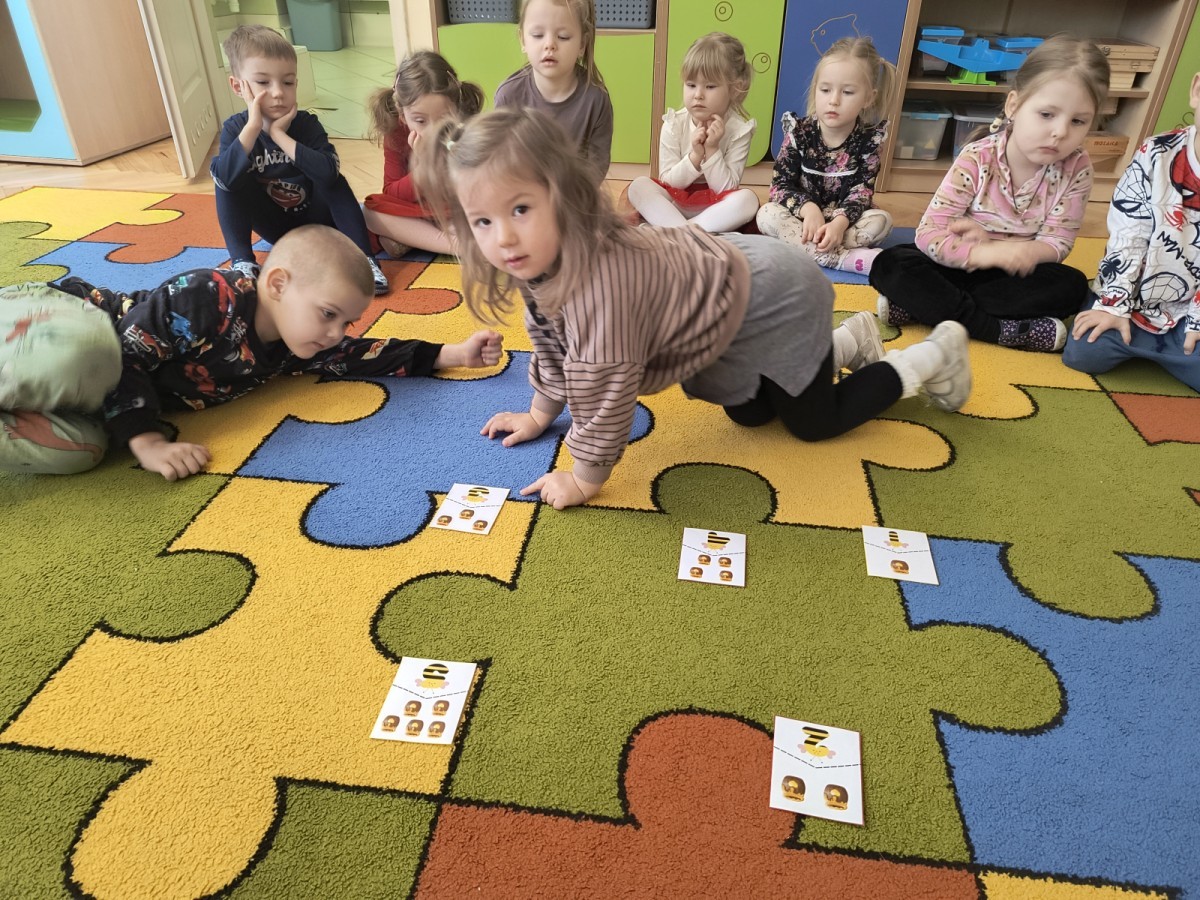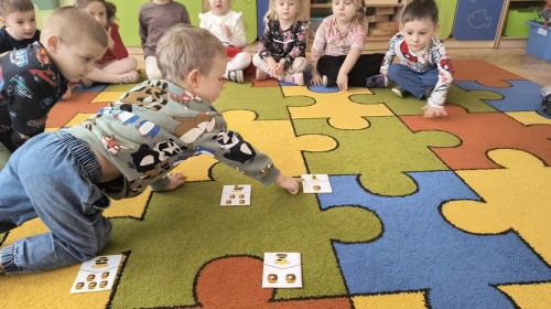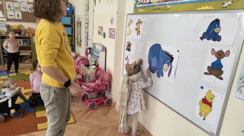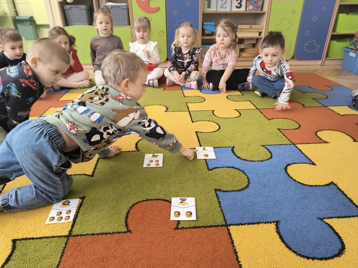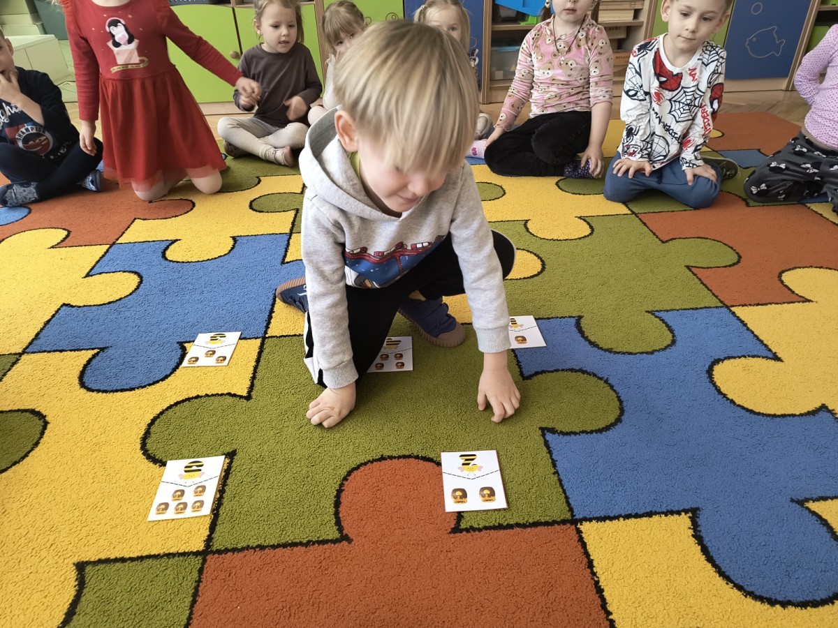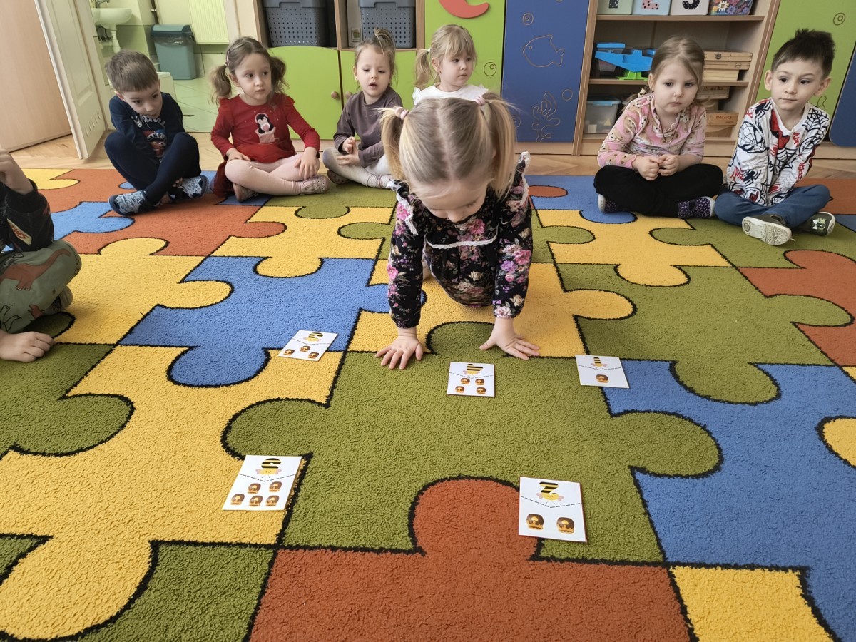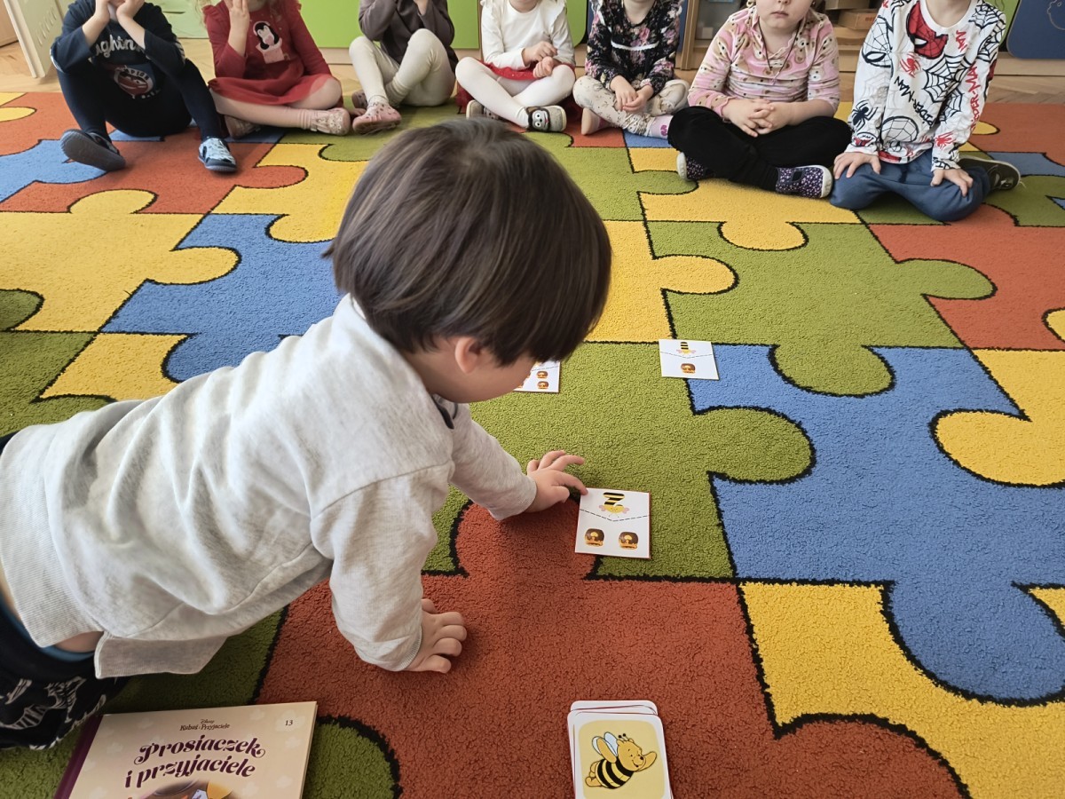 Przedszkolaki rozwiązywały również zagadki dotyczące przyjaciół ze Stumilowego Lasu, układały puzzle, wykonywały prace plastyczne związane z Kubusiem. To był prawdziwie Kubusiowy dzień! Uśmiech zagościł na buzi każdego przedszkolaka.