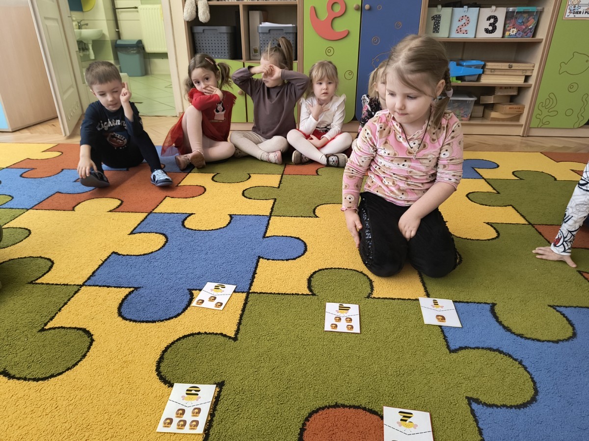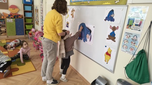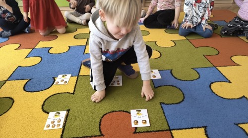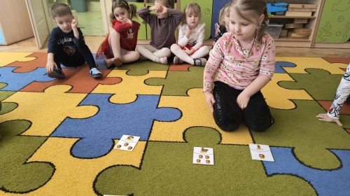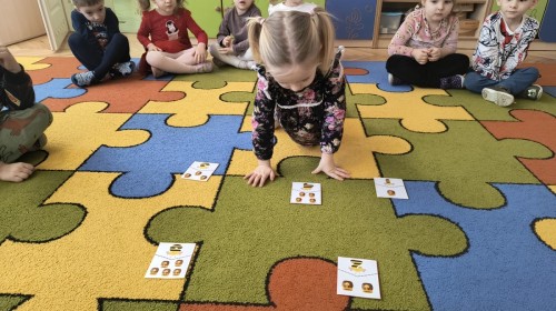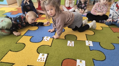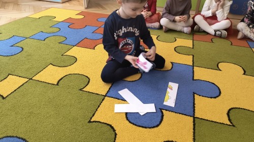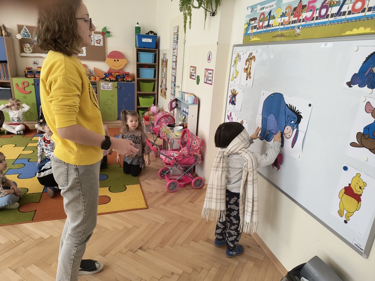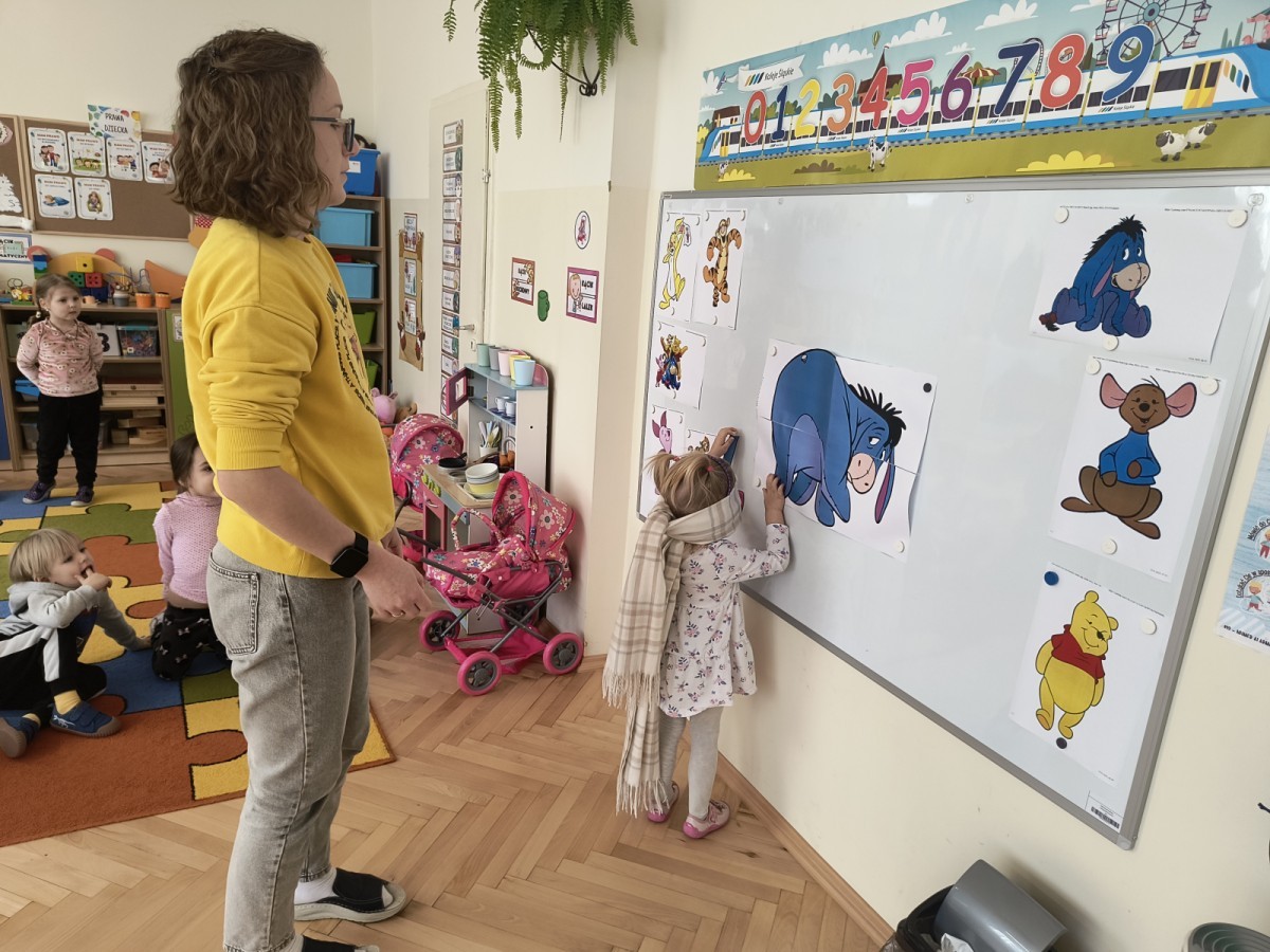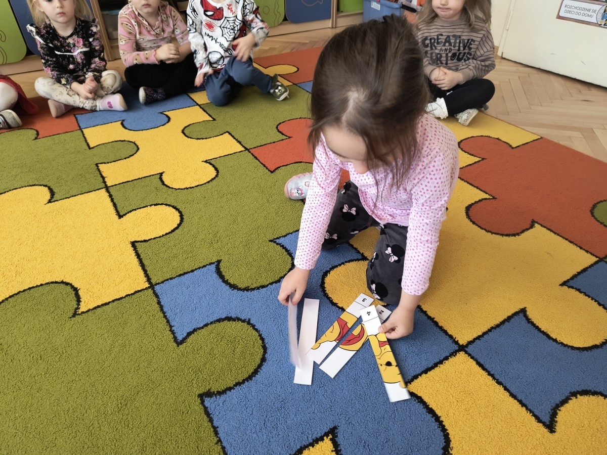 Przedszkolaki rozwiązywały również zagadki dotyczące przyjaciół ze Stumilowego Lasu, układały puzzle, wykonywały prace plastyczne związane z Kubusiem. To był prawdziwie Kubusiowy dzień! Uśmiech zagościł na buzi każdego przedszkolaka.