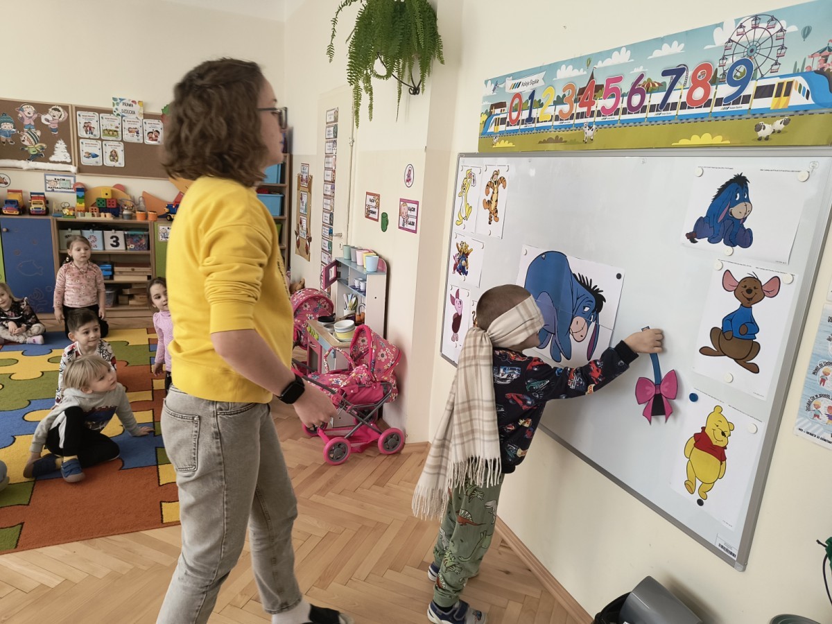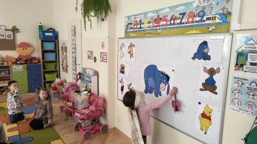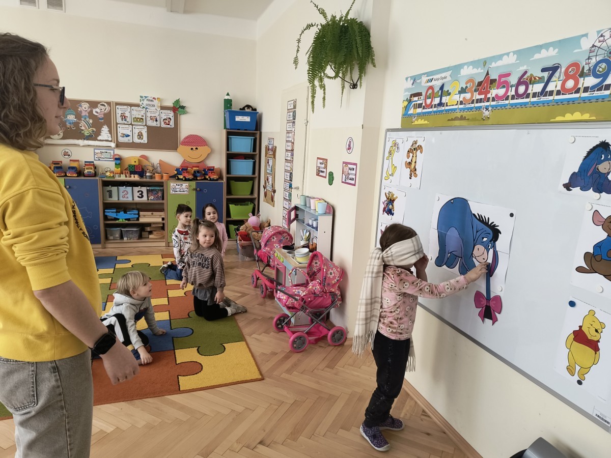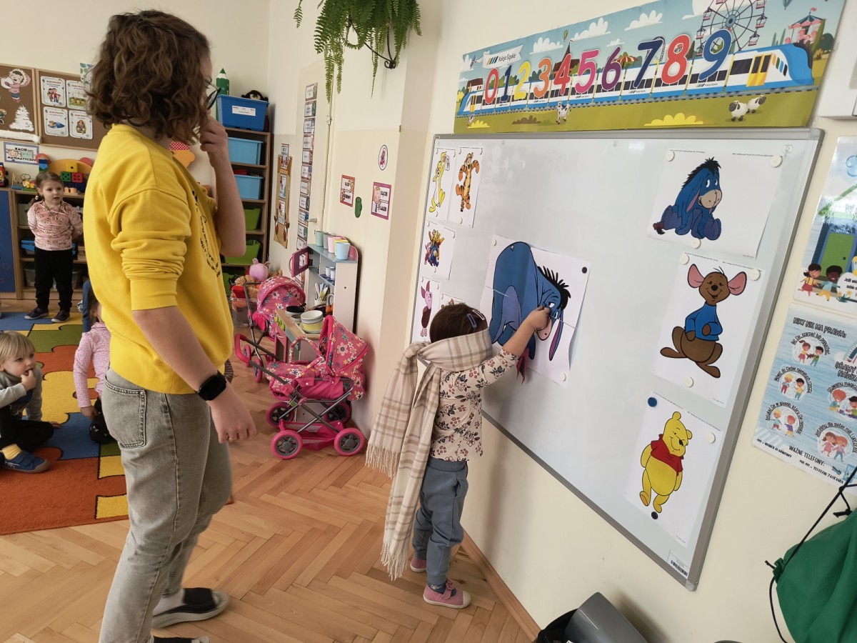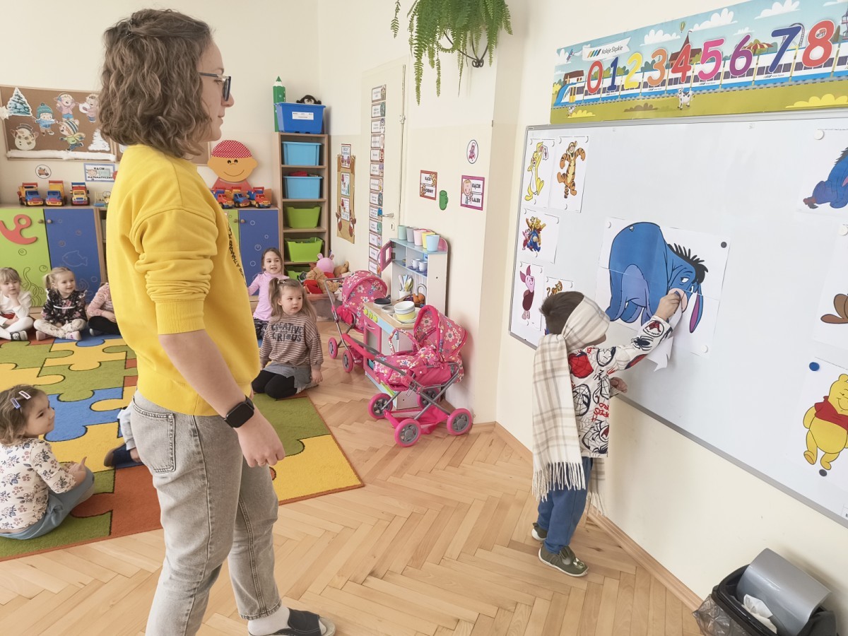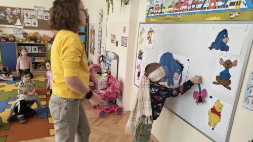 Przedszkolaki rozwiązywały również zagadki dotyczące przyjaciół ze Stumilowego Lasu, układały puzzle, wykonywały prace plastyczne związane z Kubusiem. To był prawdziwie Kubusiowy dzień! Uśmiech zagościł na buzi każdego przedszkolaka.