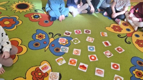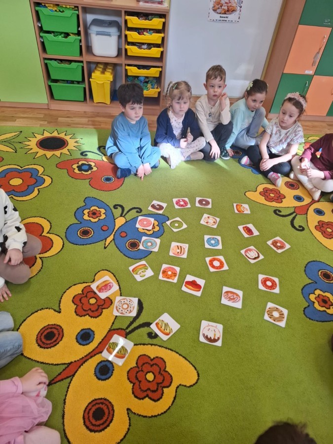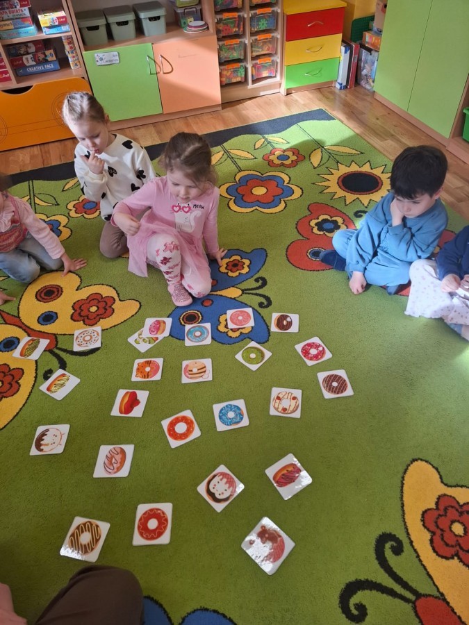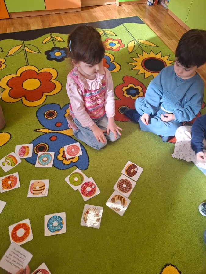 Tego dnia nie zabrakło radosnych zabaw, tematycznych aktywności oraz rozmów o tradycjach związanych z tym pysznym przysmakiem. Dzieci uczestniczyły w zabawach ruchowych i dydaktycznych inspirowanych pączkami, rozwijały spostrzegawczość, liczyły, porównywały oraz ćwiczyły swoją zręczność. 🎯🎨