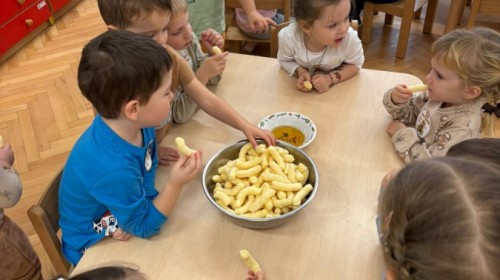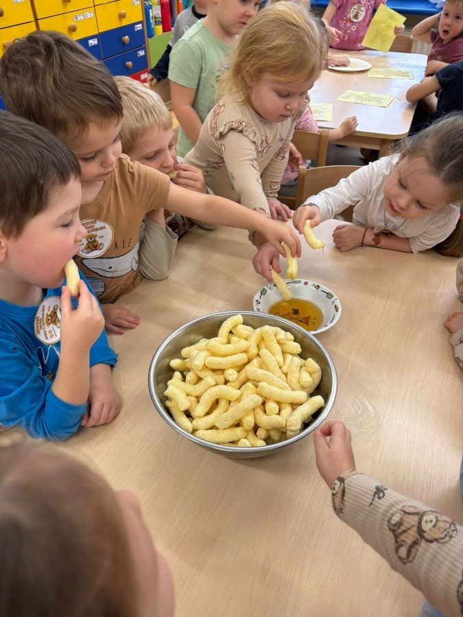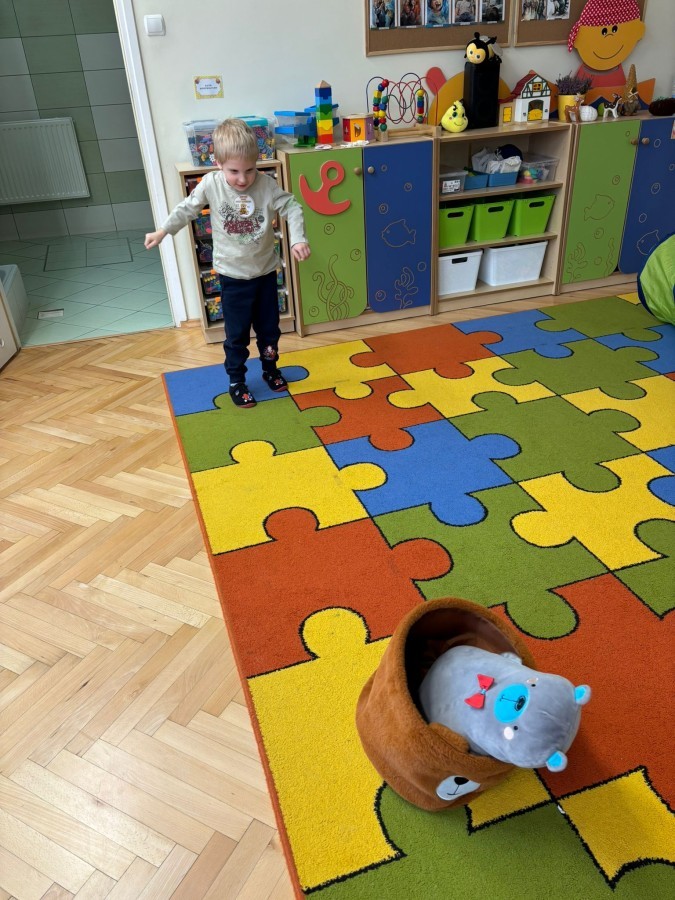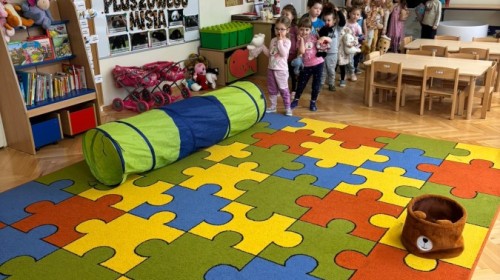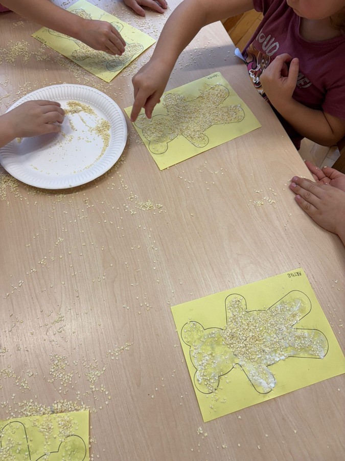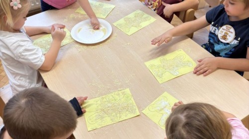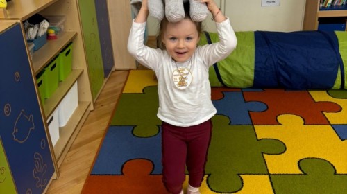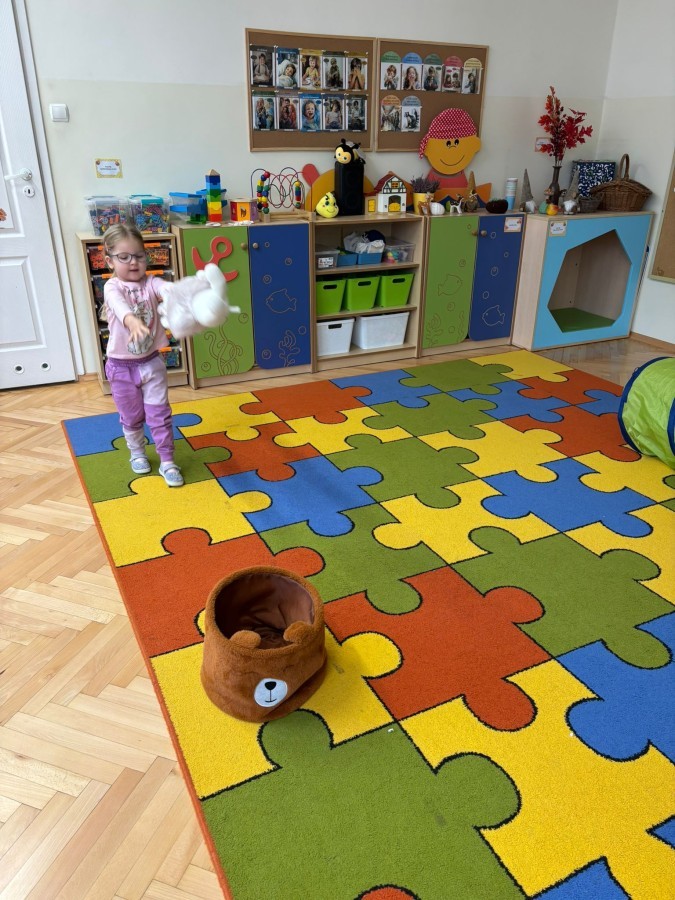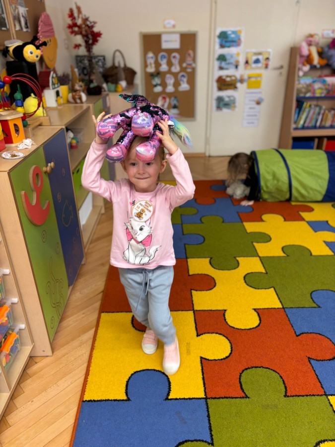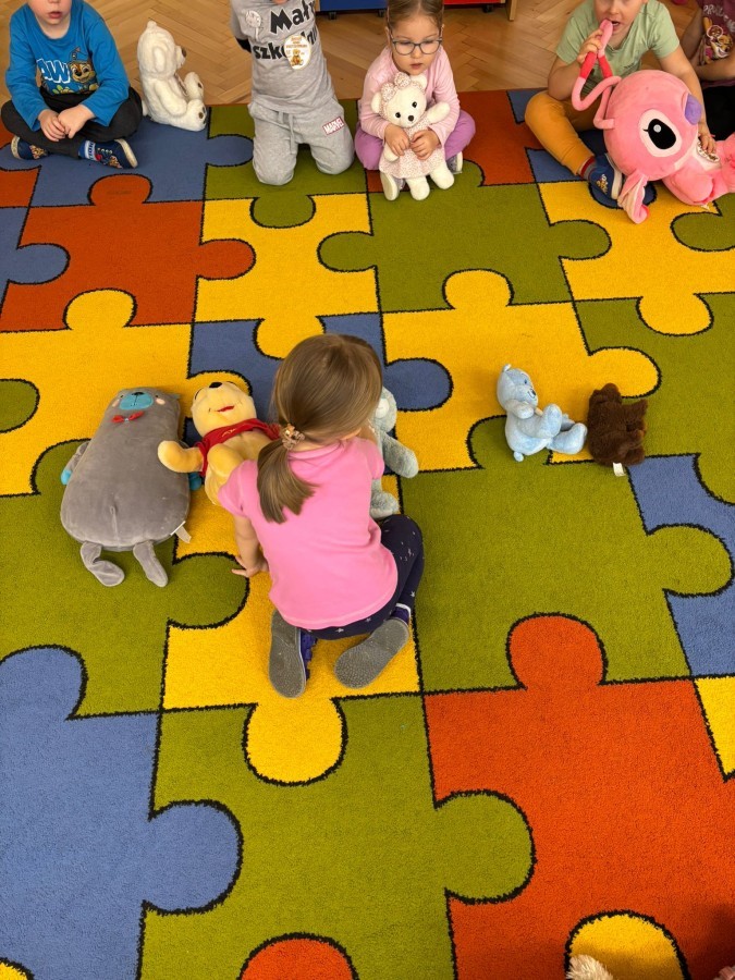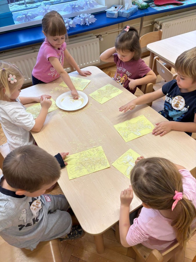 25 listopada świętowaliśmy Dzień Pluszowego Misia. Dzieci wykonały prace plastyczne, wysypując sylwetki misiów płatkami jaglanymi, a także uczestniczyły w torze przeszkód z misiem, ćwicząc równowagę i koordynację.