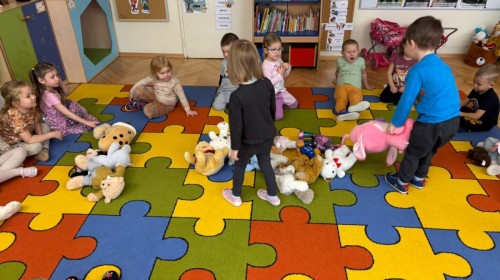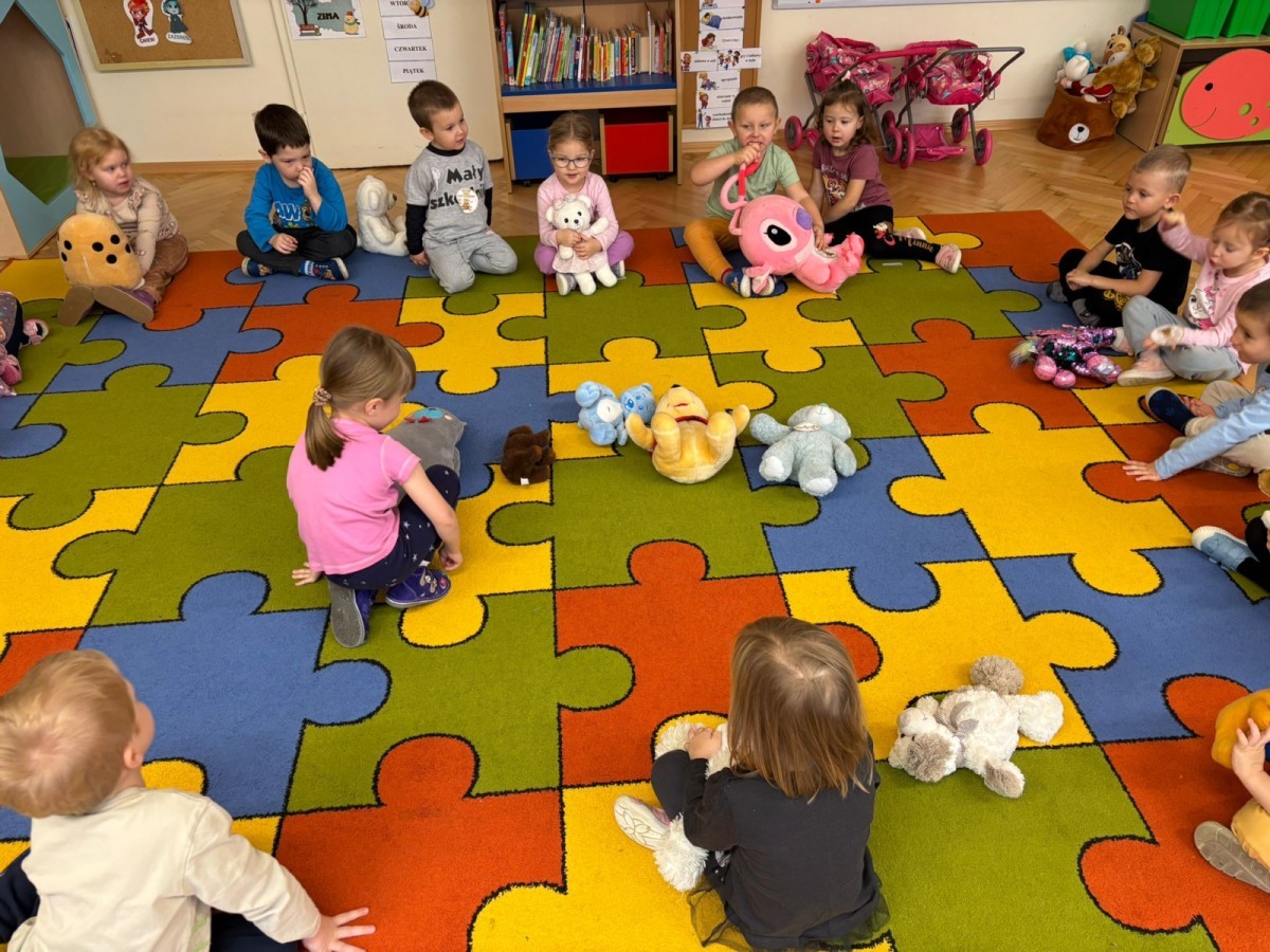 Nie zabrakło również śpiewania misiowych piosenek oraz opowiadania o swoich ukochanych pluszakach, które dzieci z dumą przyniosły do przedszkola.
