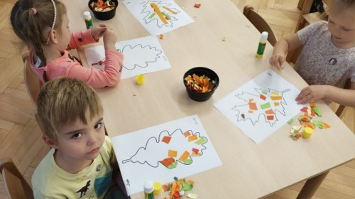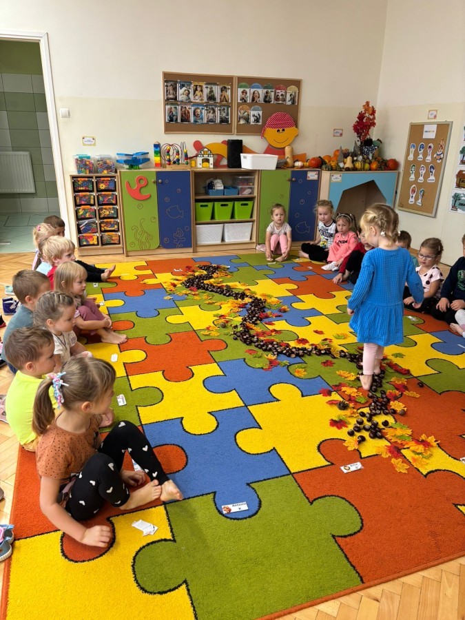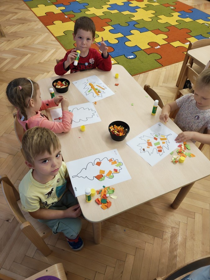 23 września, dzieci uroczyście powitały pierwszy dzień jesieni. Z okazji Dnia Spadającego Liścia odbyły się zabawy o tematyce jesiennej, podczas których dzieci poznawały oznaki nowej pory roku. Nie zabrakło również części artystycznej – dzieci wykonały pracę plastyczną inspirowaną jesienią. Atmosfera była radosna i twórcza! 🍁
