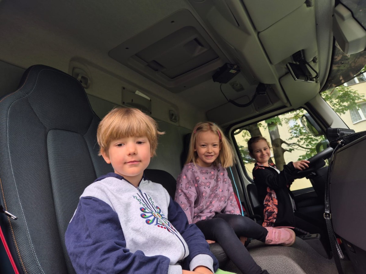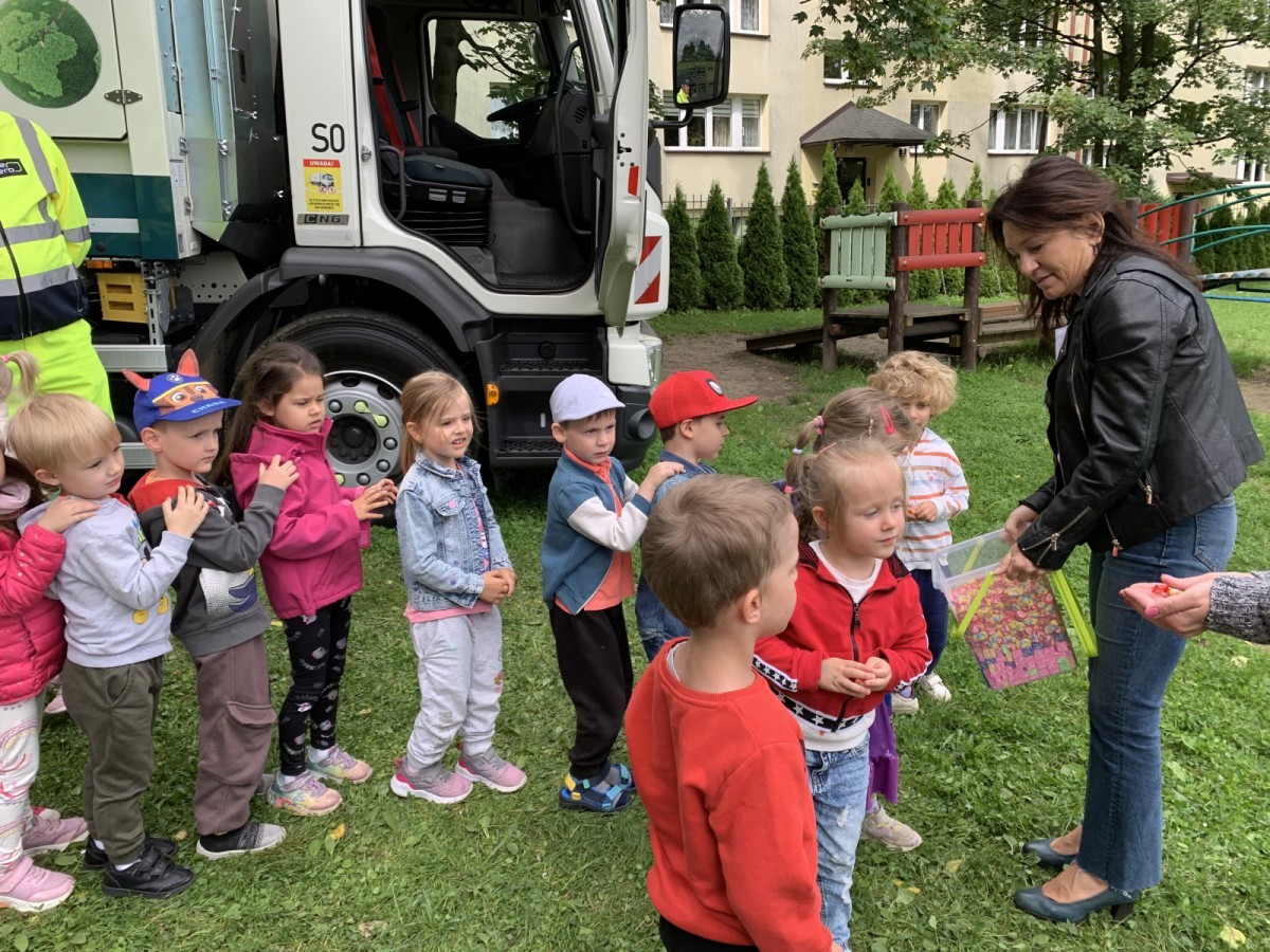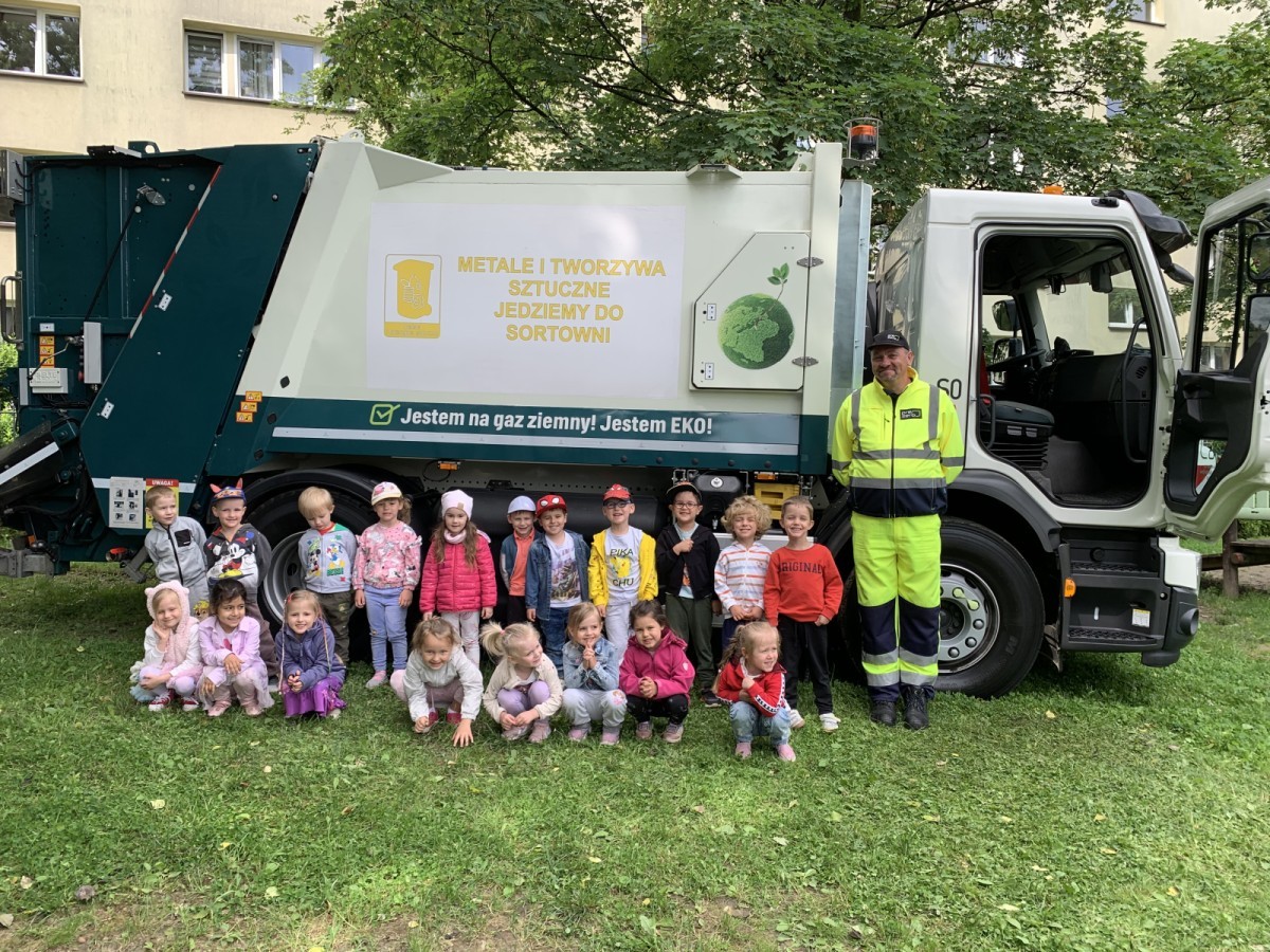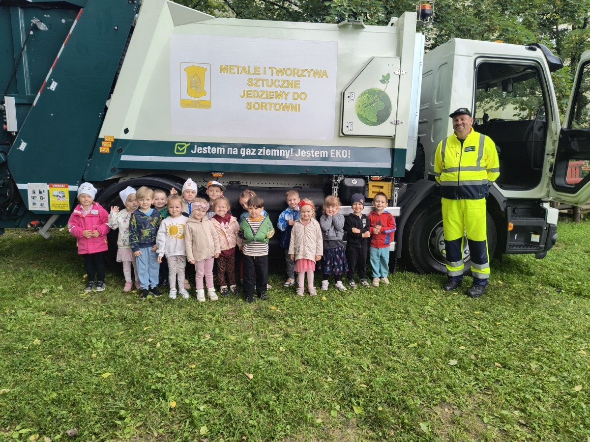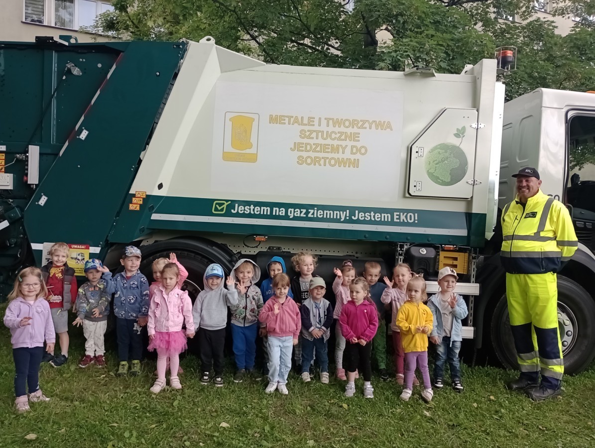 W naszym przedszkolu odbyła się wyjątkowa wizyta – przyjechała ekośmieciarka! Dzieci miały okazję z bliska obejrzeć specjalistyczny pojazd do odbioru odpadów, zajrzeć do środka i dowiedzieć się, jak działa. Pracownicy opowiedzieli o segregacji śmieci i znaczeniu dbania o środowisko. Na zakończenie spotkania każde dziecko zostało poczęstowane słodkim upominkiem. To była nie tylko ciekawa, ale i bardzo pouczająca przygoda!