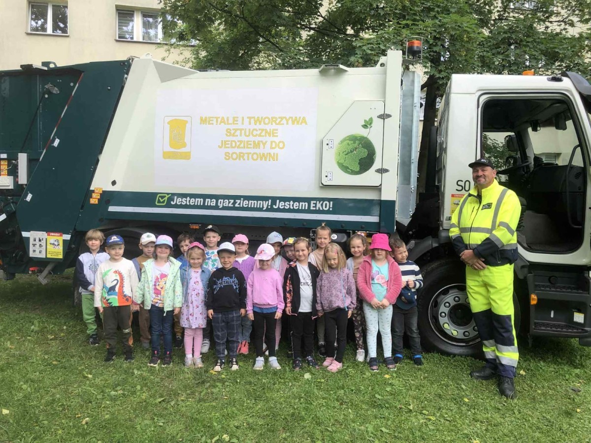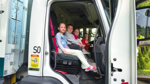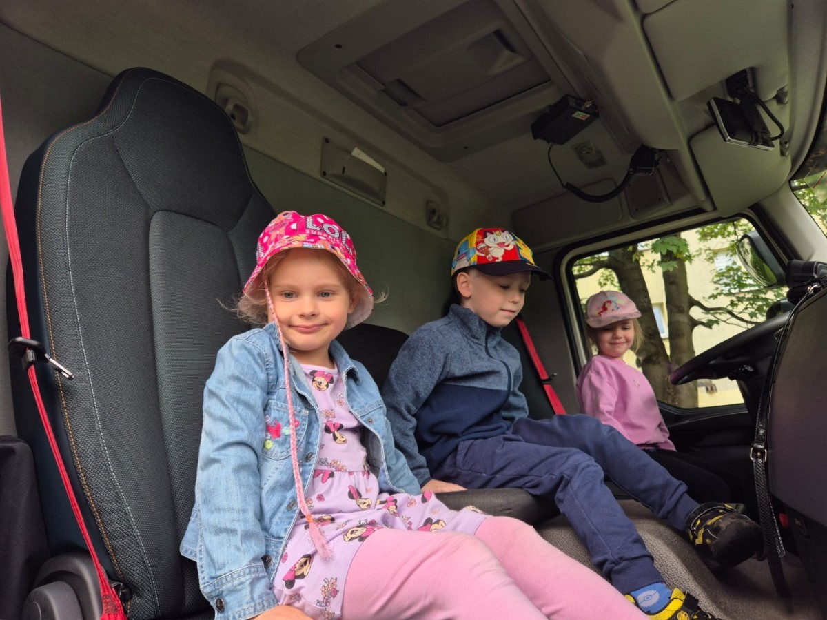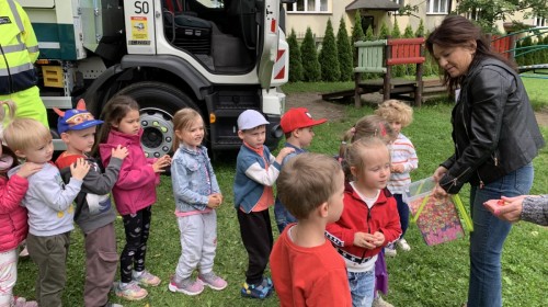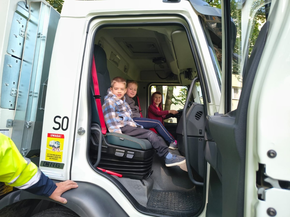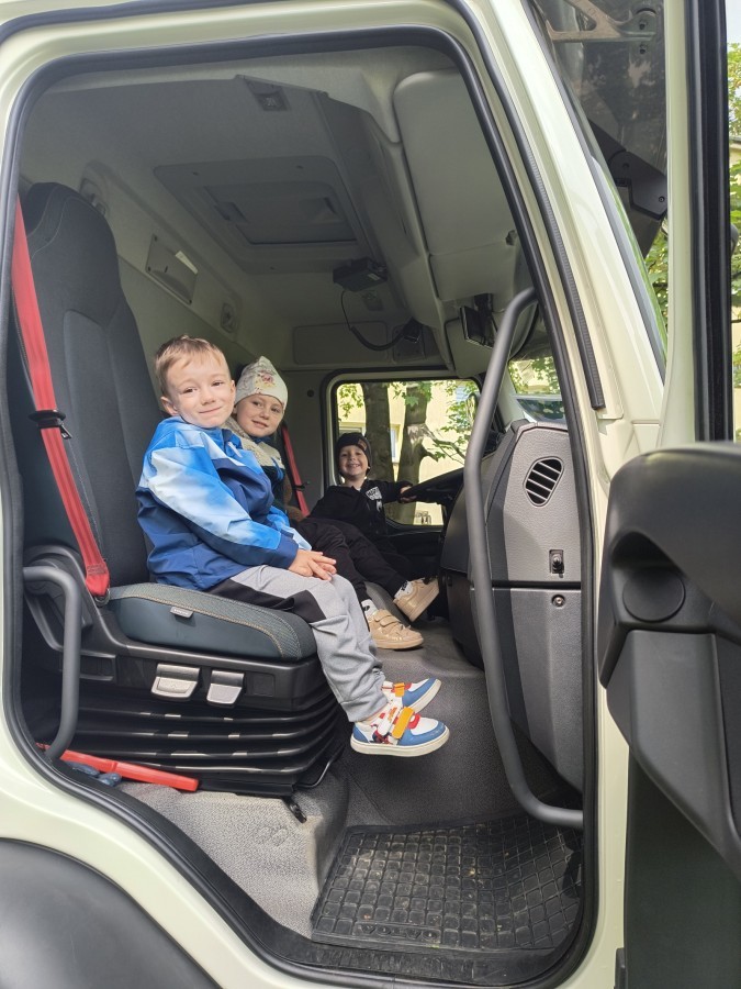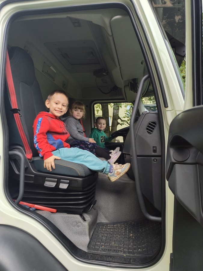 W naszym przedszkolu odbyła się wyjątkowa wizyta – przyjechała ekośmieciarka! Dzieci miały okazję z bliska obejrzeć specjalistyczny pojazd do odbioru odpadów, zajrzeć do środka i dowiedzieć się, jak działa. Pracownicy opowiedzieli o segregacji śmieci i znaczeniu dbania o środowisko. Na zakończenie spotkania każde dziecko zostało poczęstowane słodkim upominkiem. To była nie tylko ciekawa, ale i bardzo pouczająca przygoda!