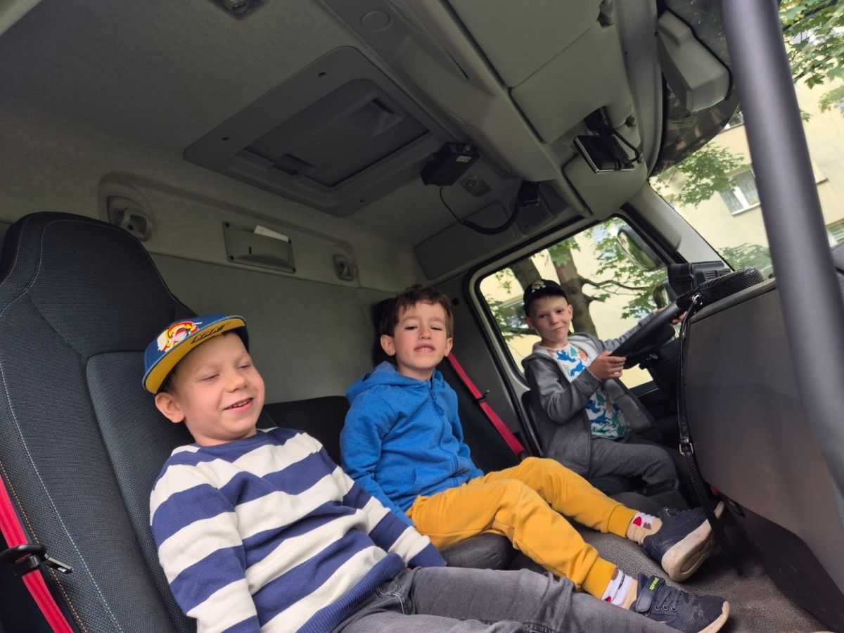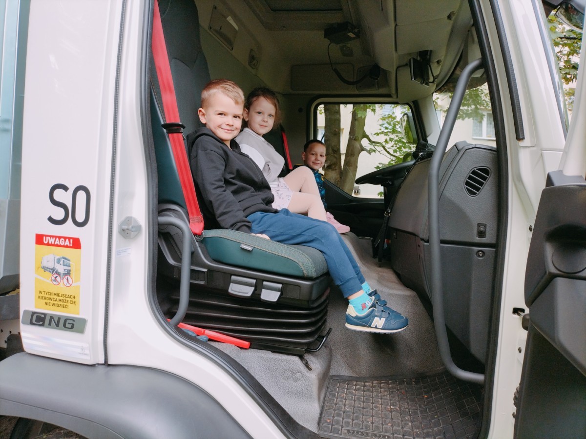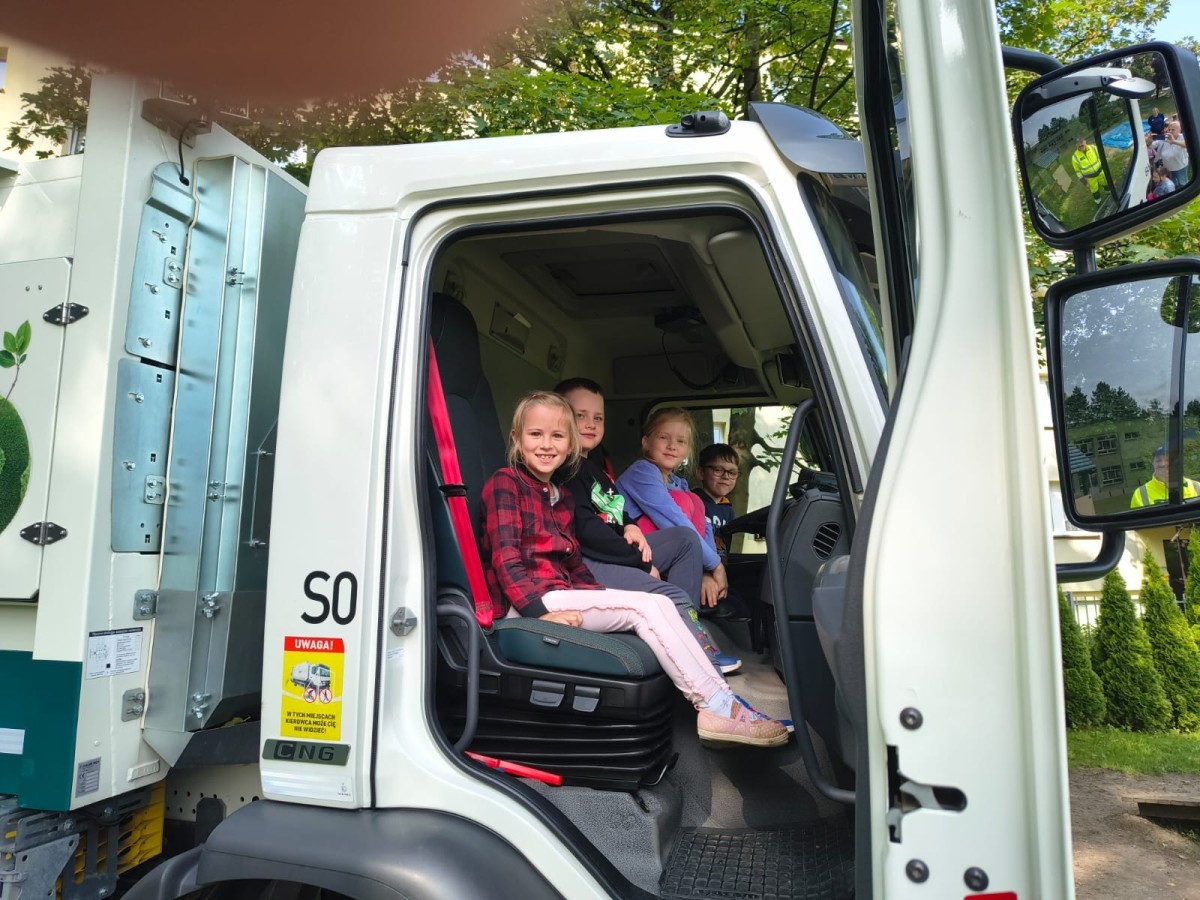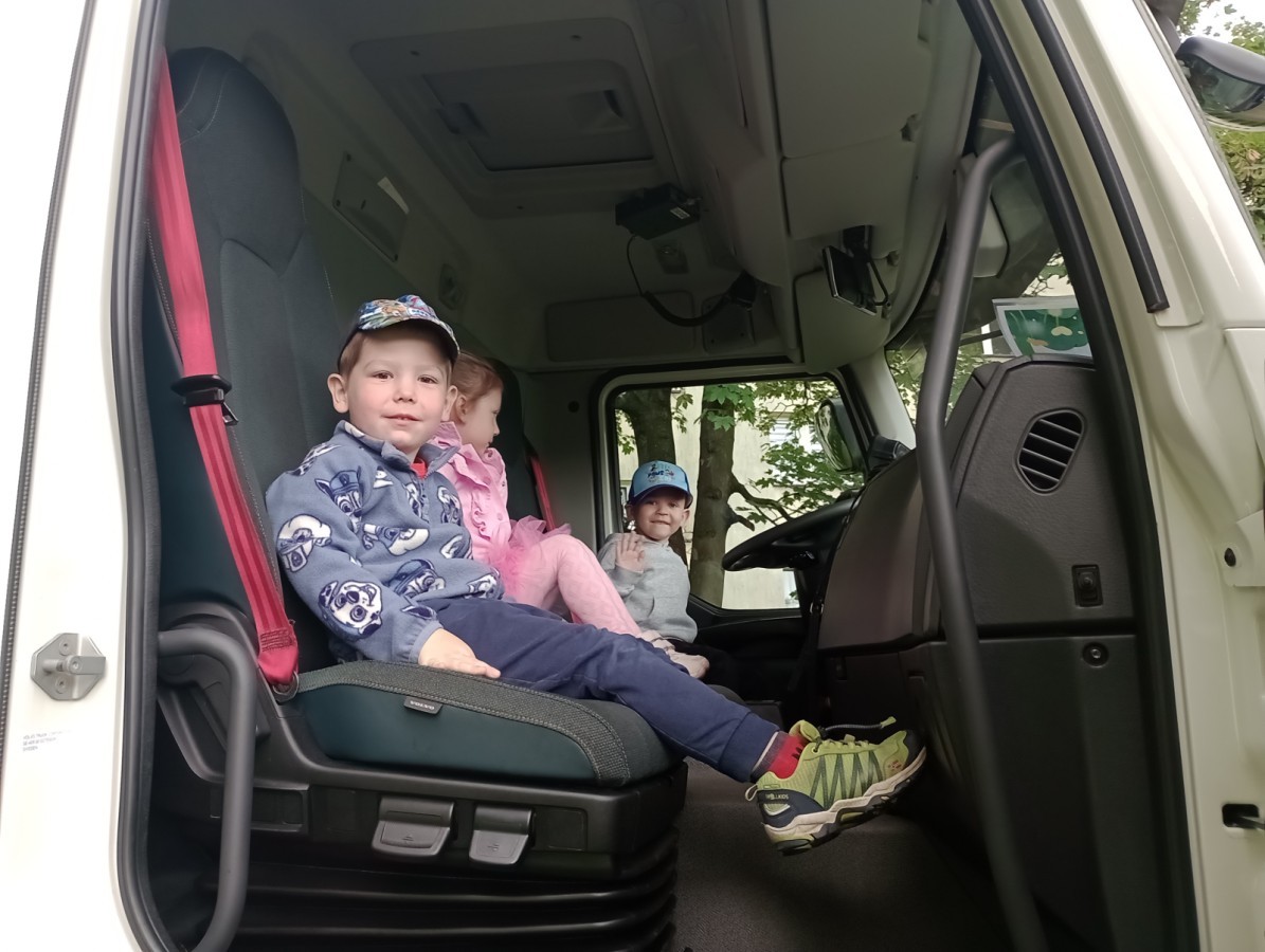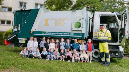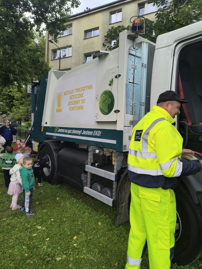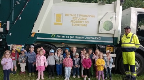 W naszym przedszkolu odbyła się wyjątkowa wizyta – przyjechała ekośmieciarka! Dzieci miały okazję z bliska obejrzeć specjalistyczny pojazd do odbioru odpadów, zajrzeć do środka i dowiedzieć się, jak działa. Pracownicy opowiedzieli o segregacji śmieci i znaczeniu dbania o środowisko. Na zakończenie spotkania każde dziecko zostało poczęstowane słodkim upominkiem. To była nie tylko ciekawa, ale i bardzo pouczająca przygoda!
