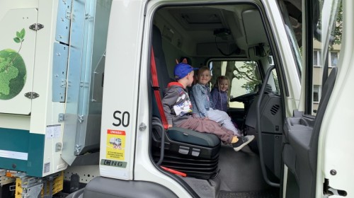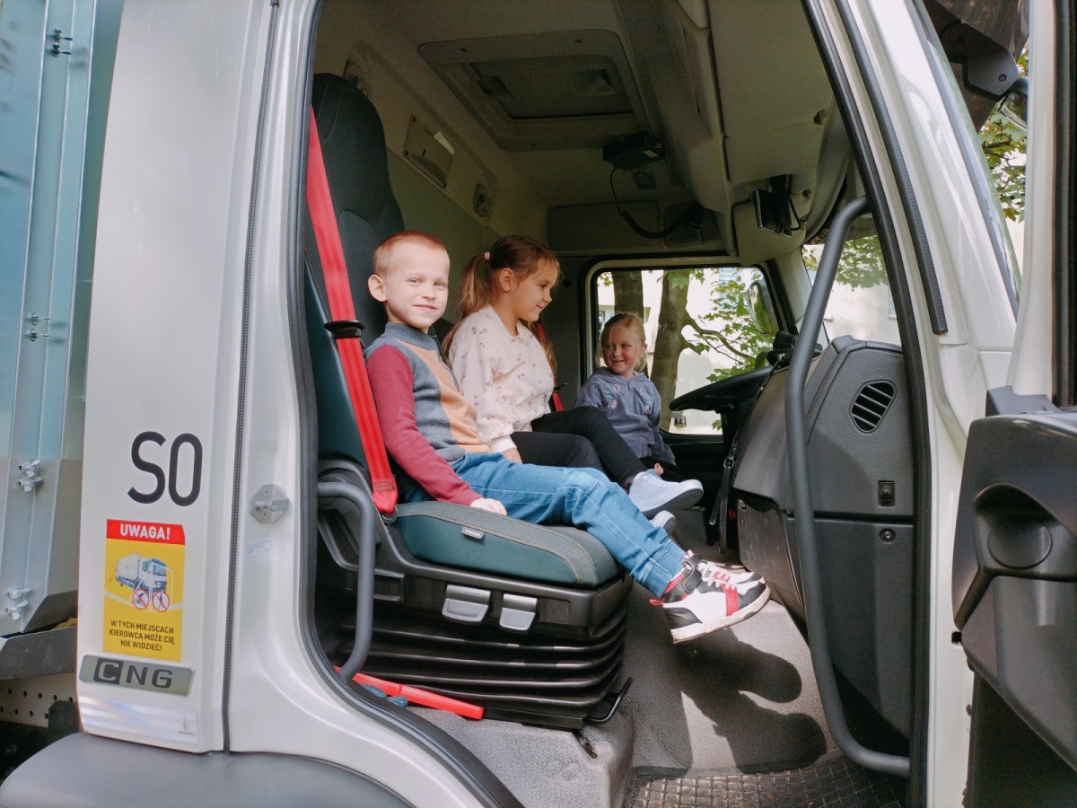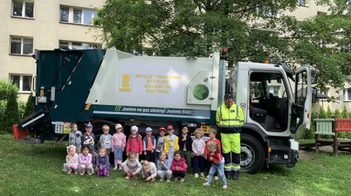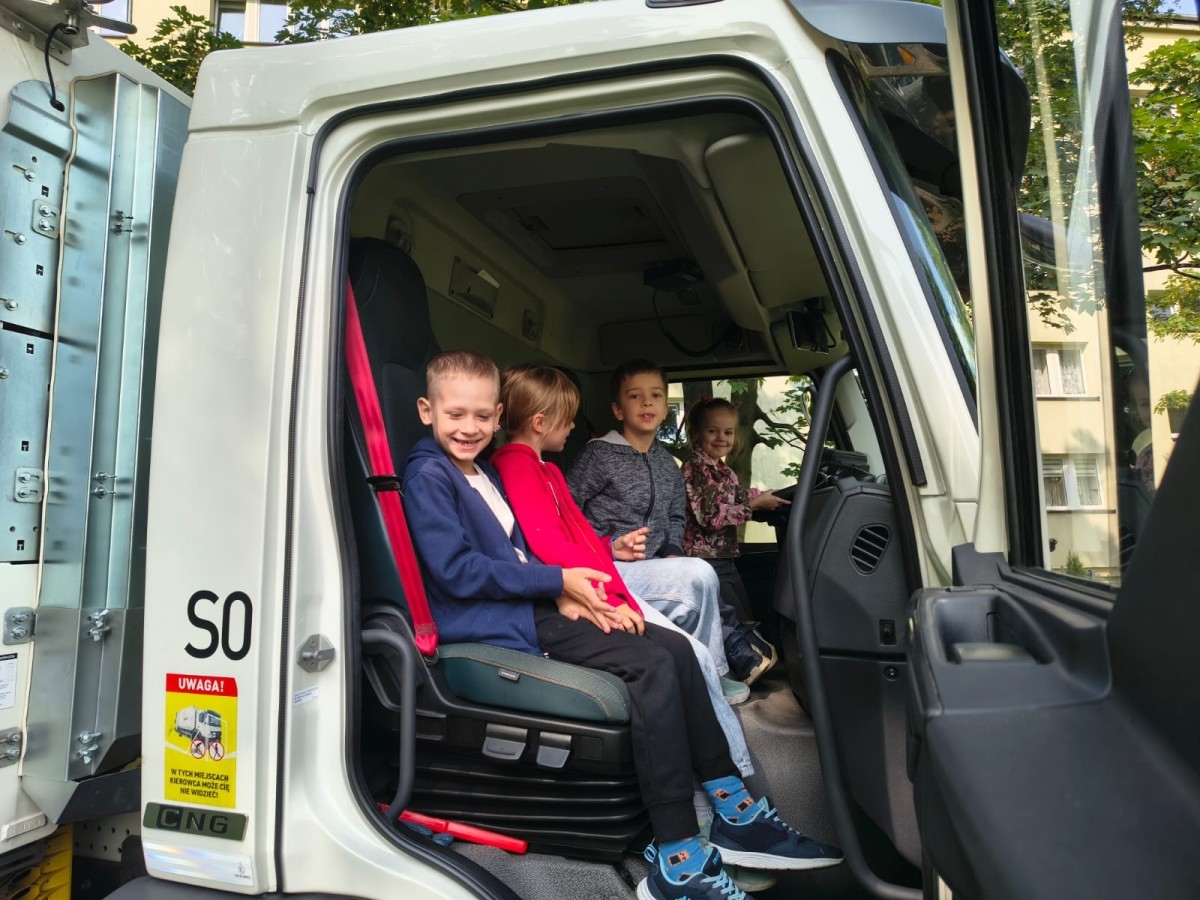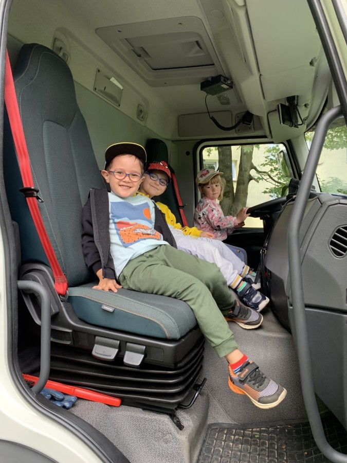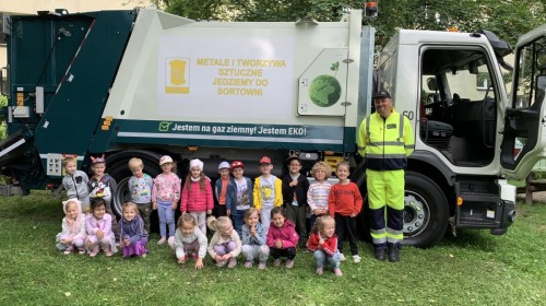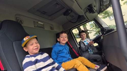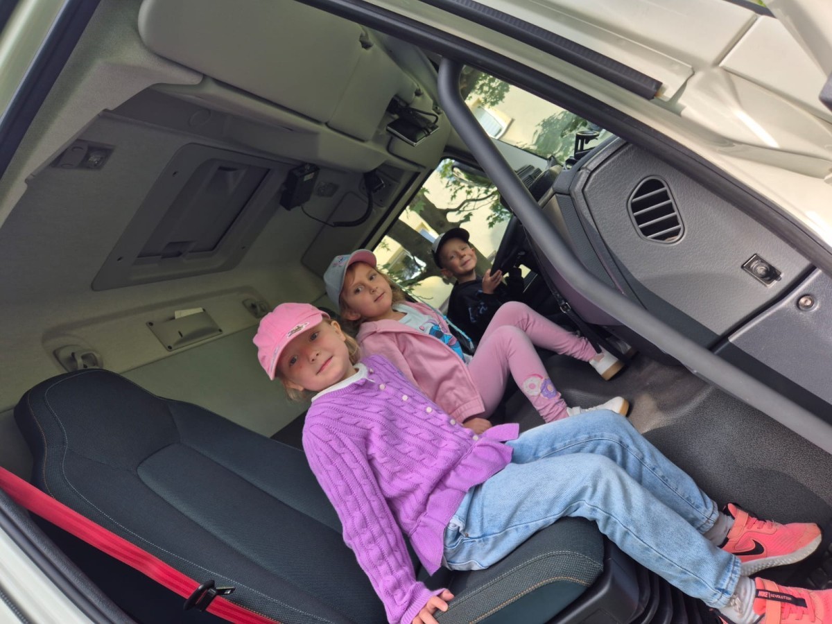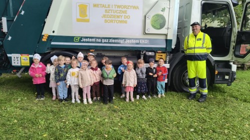 W naszym przedszkolu odbyła się wyjątkowa wizyta – przyjechała ekośmieciarka! Dzieci miały okazję z bliska obejrzeć specjalistyczny pojazd do odbioru odpadów, zajrzeć do środka i dowiedzieć się, jak działa. Pracownicy opowiedzieli o segregacji śmieci i znaczeniu dbania o środowisko. Na zakończenie spotkania każde dziecko zostało poczęstowane słodkim upominkiem. To była nie tylko ciekawa, ale i bardzo pouczająca przygoda!