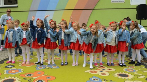 Podczas Festynu Rodzinnego w naszym przedszkolu grupa „Misie” zaprezentowała piękny i wzruszający występ z okazji Dnia Mamy i Taty.