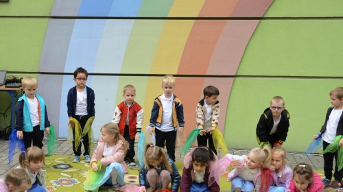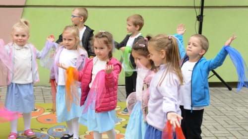 Podczas Festynu Rodzinnego w naszym przedszkolu grupa „Wilczki” zaprezentowała piękny i wzruszający występ z okazji Dnia Mamy i Taty.