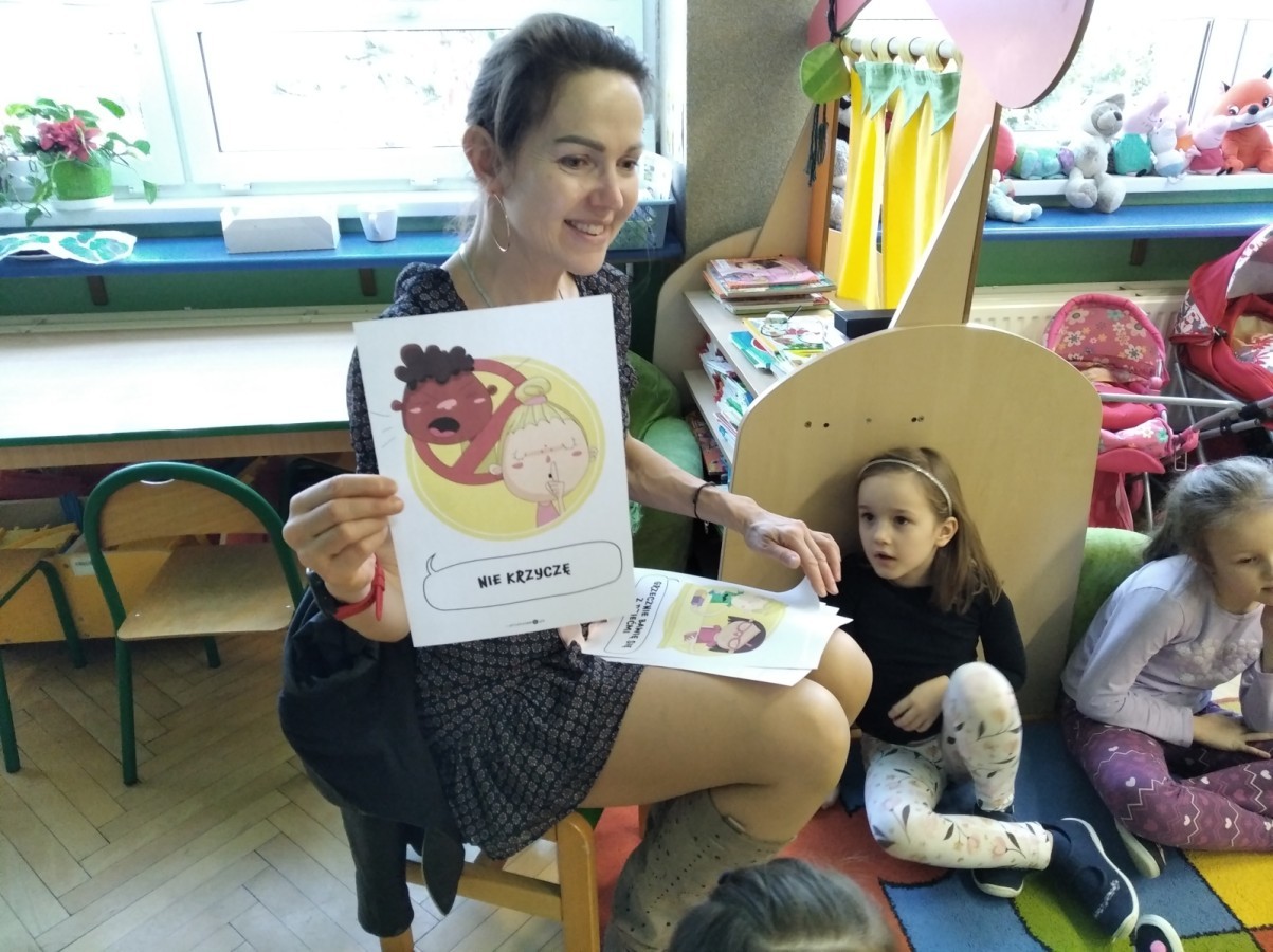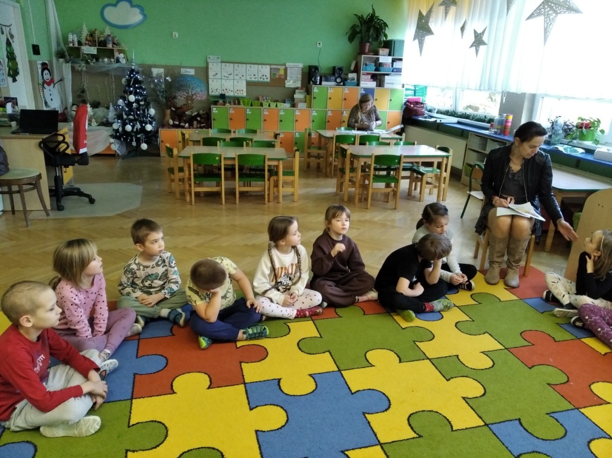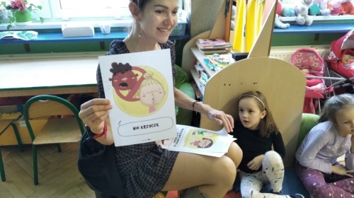 W środę tj. 22 stycznia pani pedagog przeprowadziła pogadankę z dziećmi z grupy "Tygryski" na temat: "Jak być dobrym dla innych". Poruszyła bardzo ważne wątki związane z zachowaniem się w grupie, a także jak należy współpracować ze sobą, dbać o dobre relacje z innymi. Pokreśliła również to, że każde dziecko jest wyjątkowe i każdy człowiek zasługuje na szacunek, dobre słowo. To była bardzo ważna lekcja dla nas. Dziękujemy!