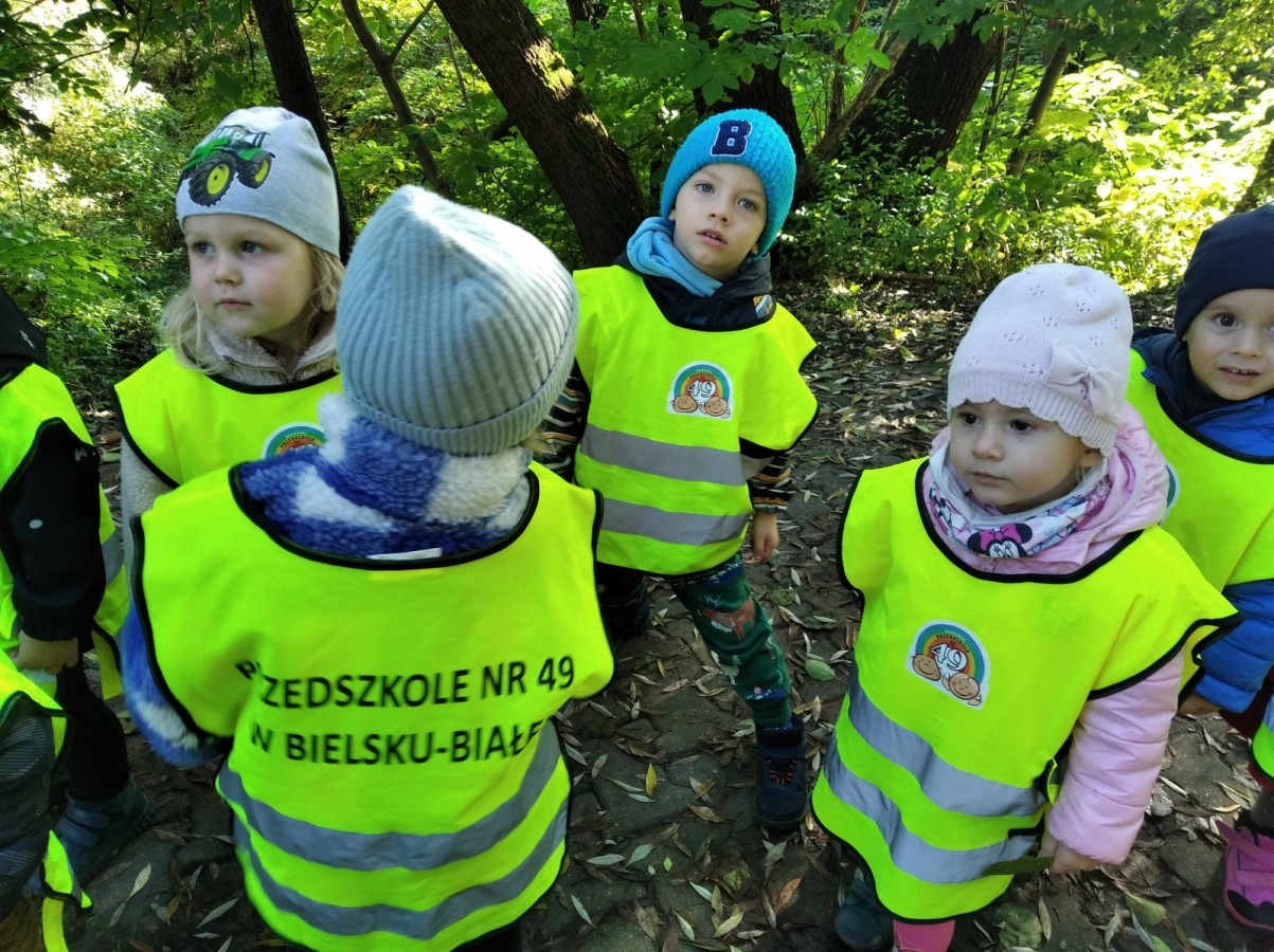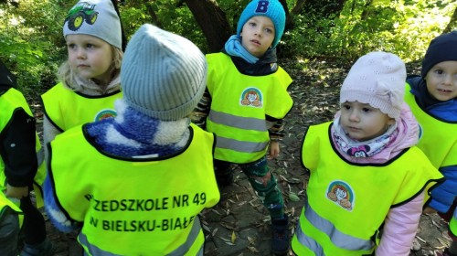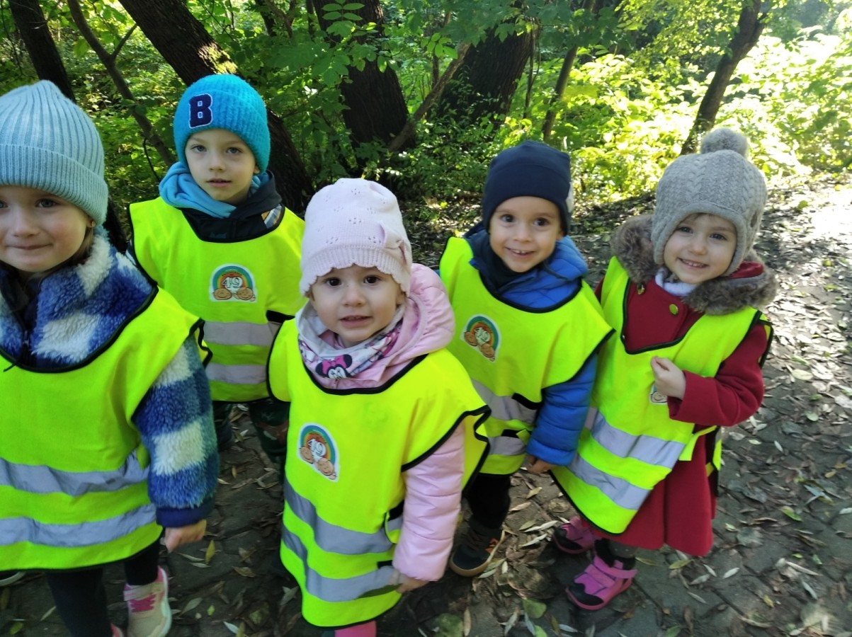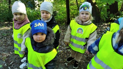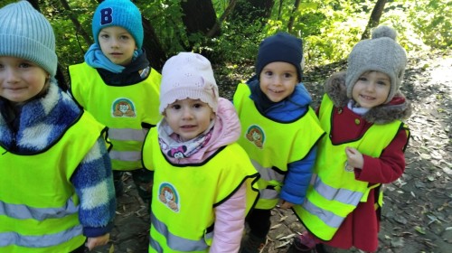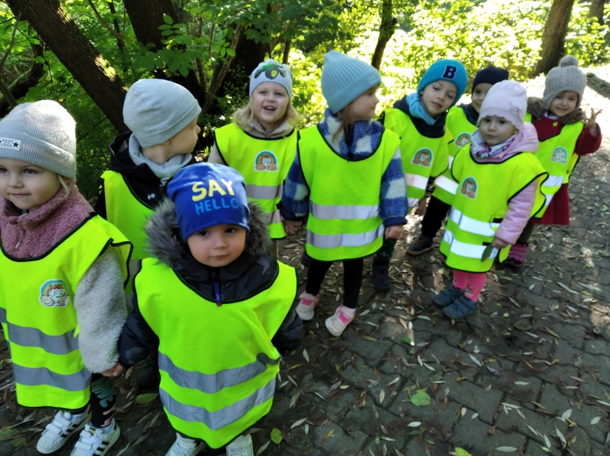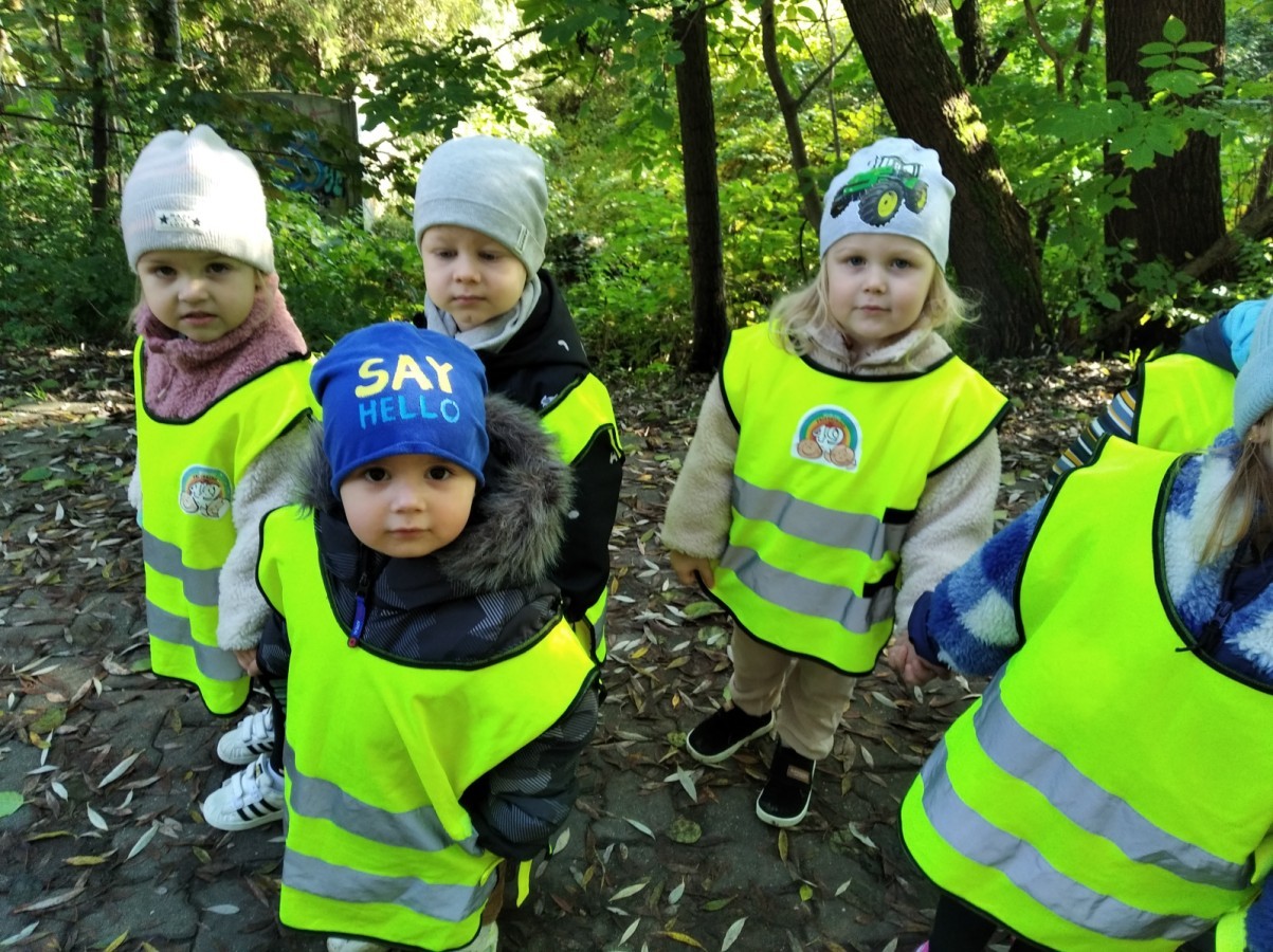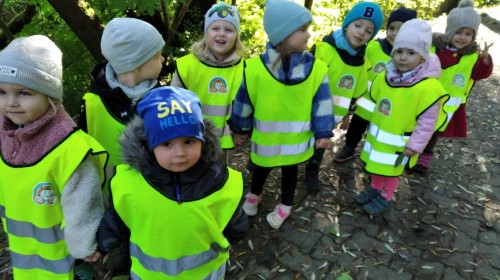 Kotki wybrały się na swój pierwszy jesienny spacer. Poznając okolice, utrwalały poruszanie się w parach z zachowaniem zasad bezpieczeństwa.