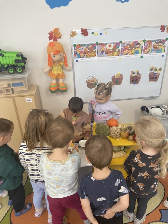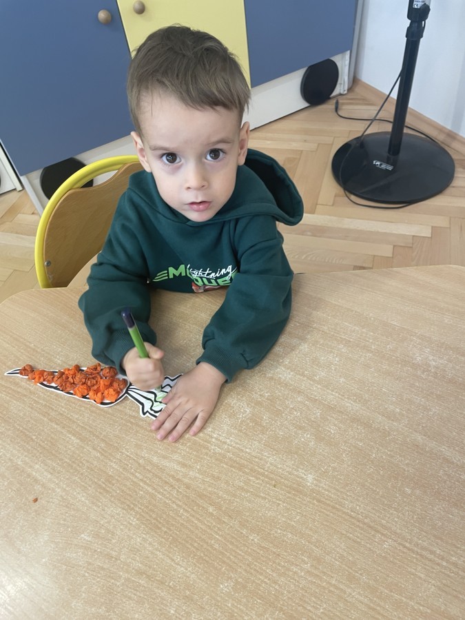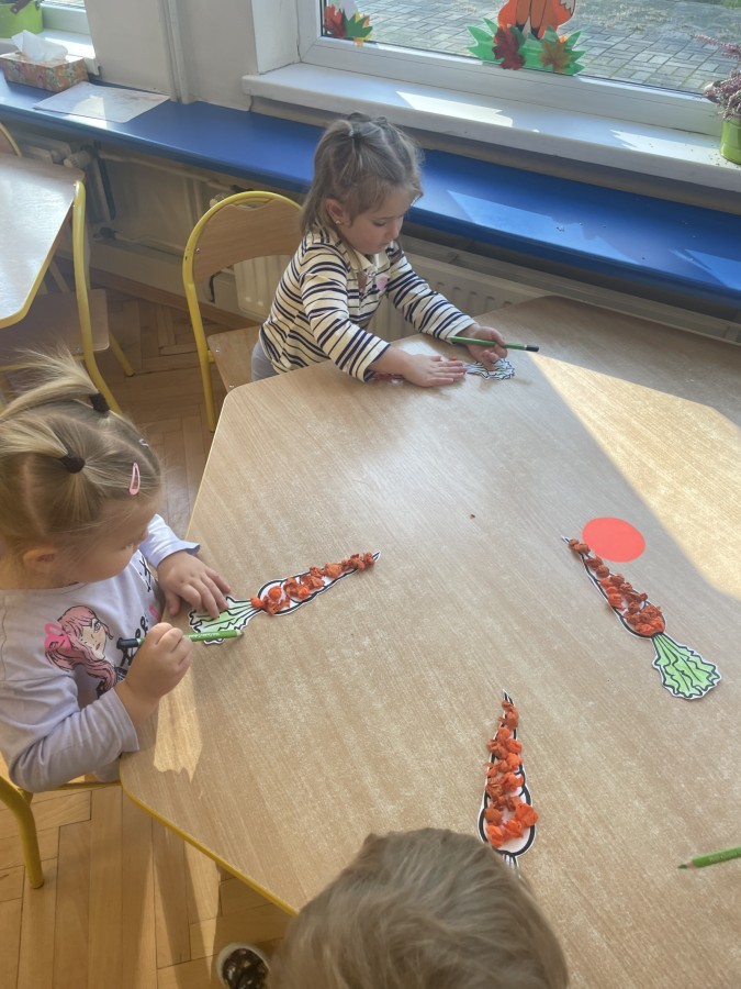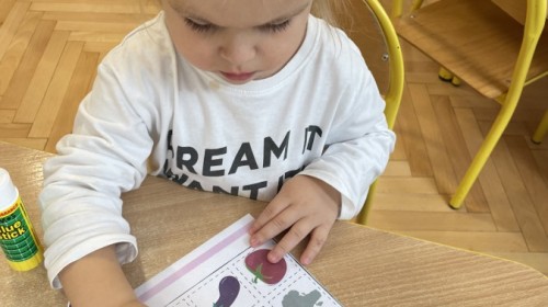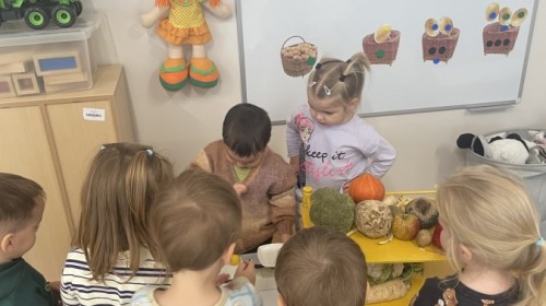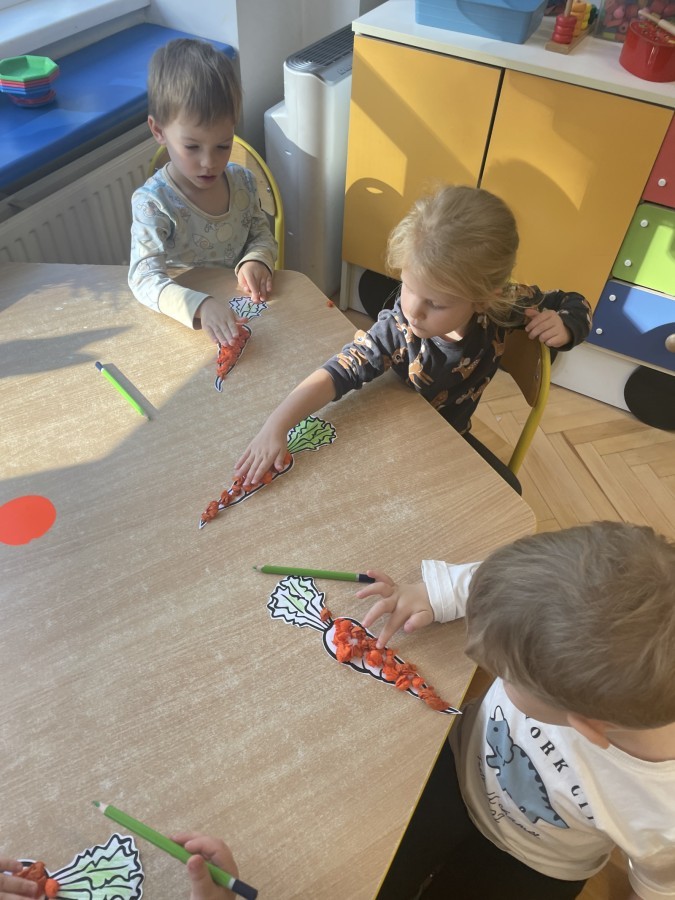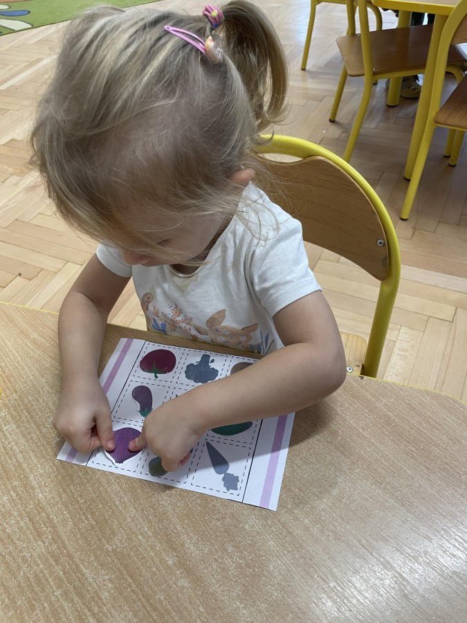 Nie zabrakło również innych zabaw utrwalających nazwy poznanych warzyw i ich cech.