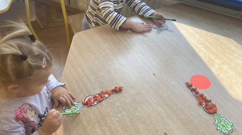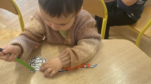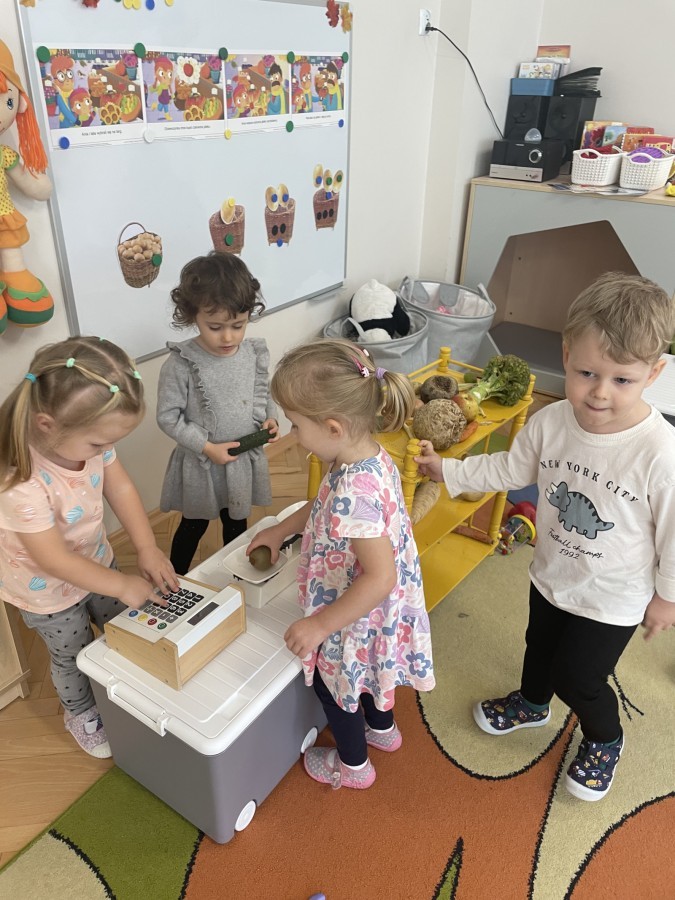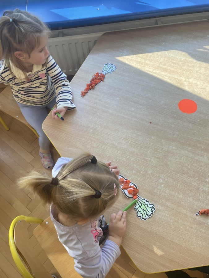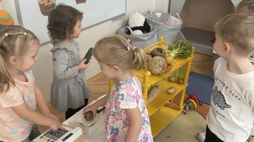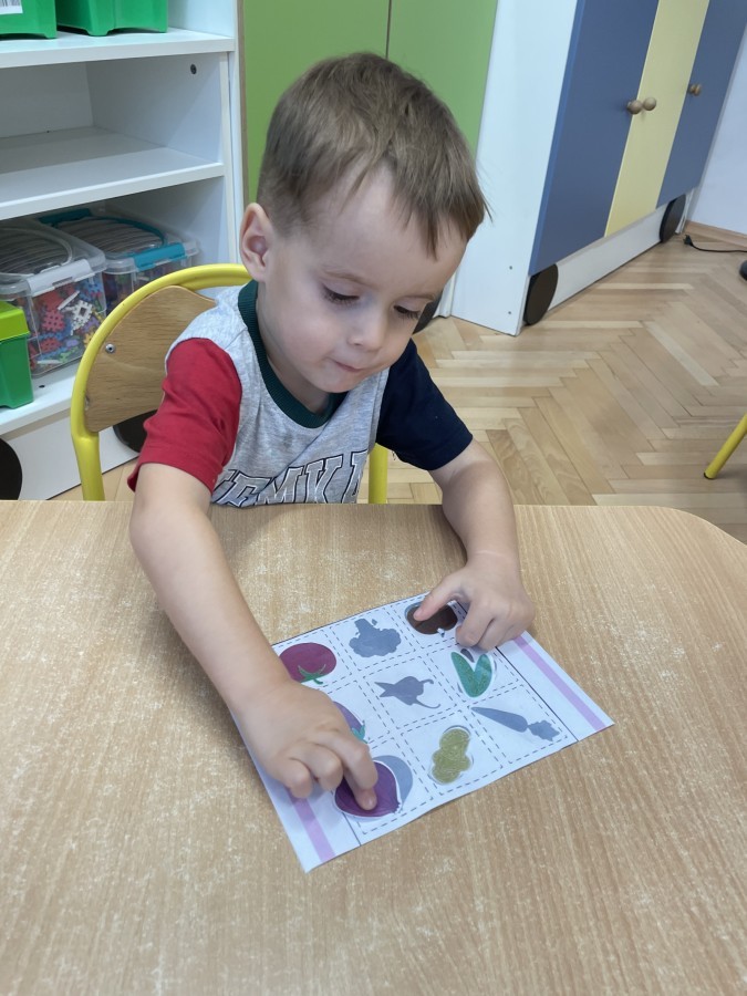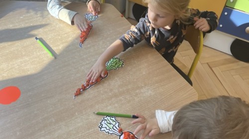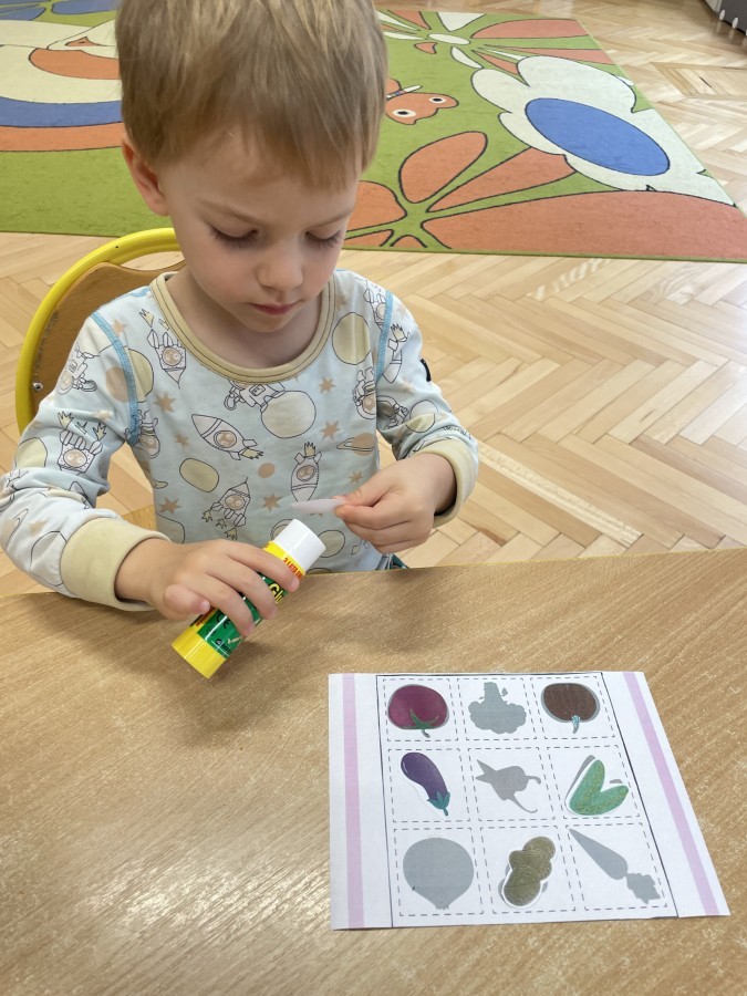 Nie zabrakło również innych zabaw utrwalających nazwy poznanych warzyw i ich cech.