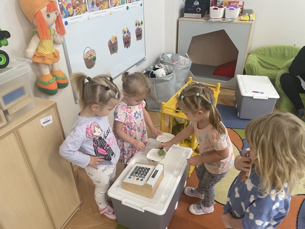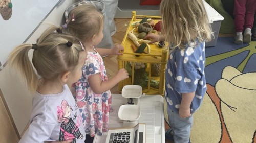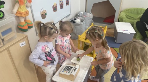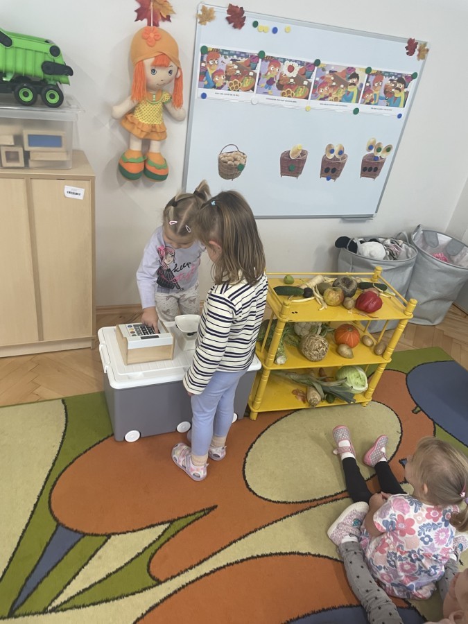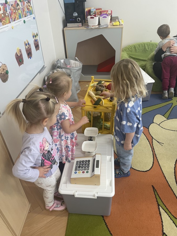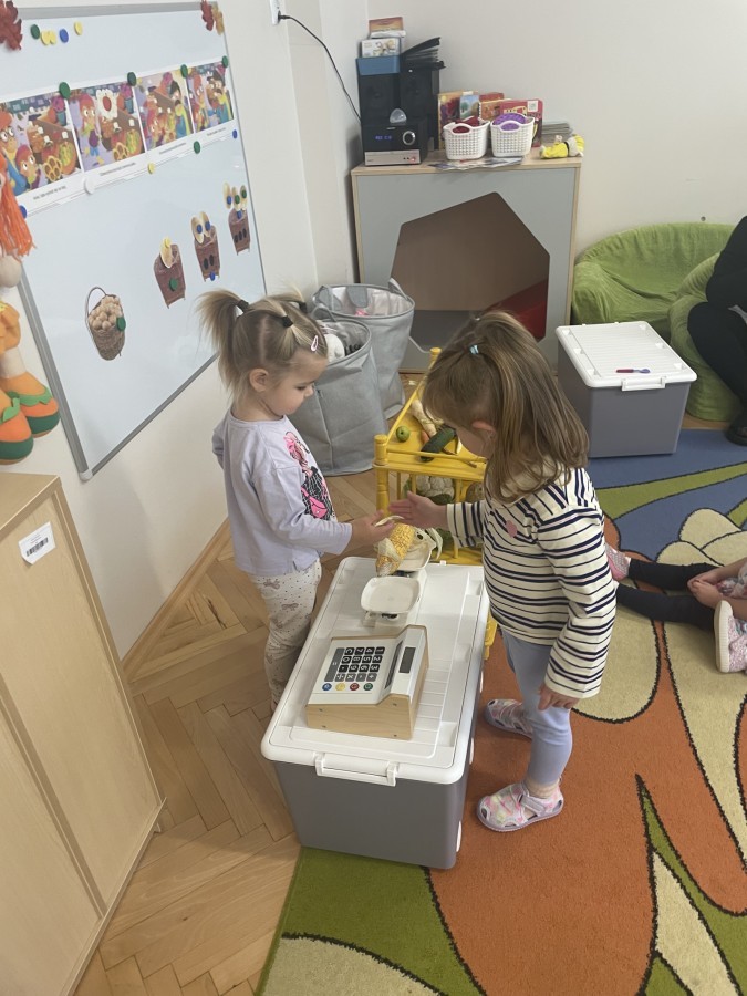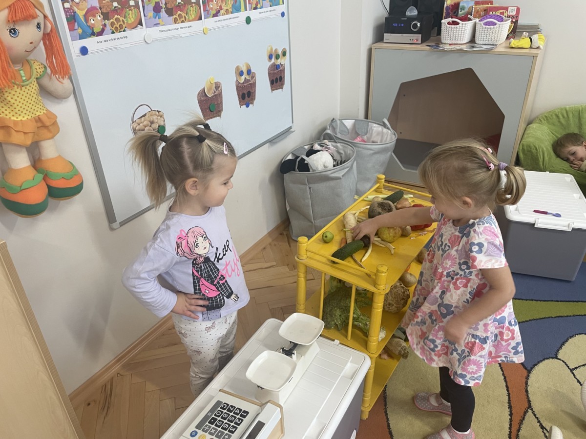 Na straganie w dzień targowy … słychać było dzieci śmiech :) Zabawa przebiegała według określonych zasad - dzieci musiały czekać na swoją kolej , stosowały zwroty grzecznościowe i zamiennie odgrywały rolę sprzedawcy i kupującego.