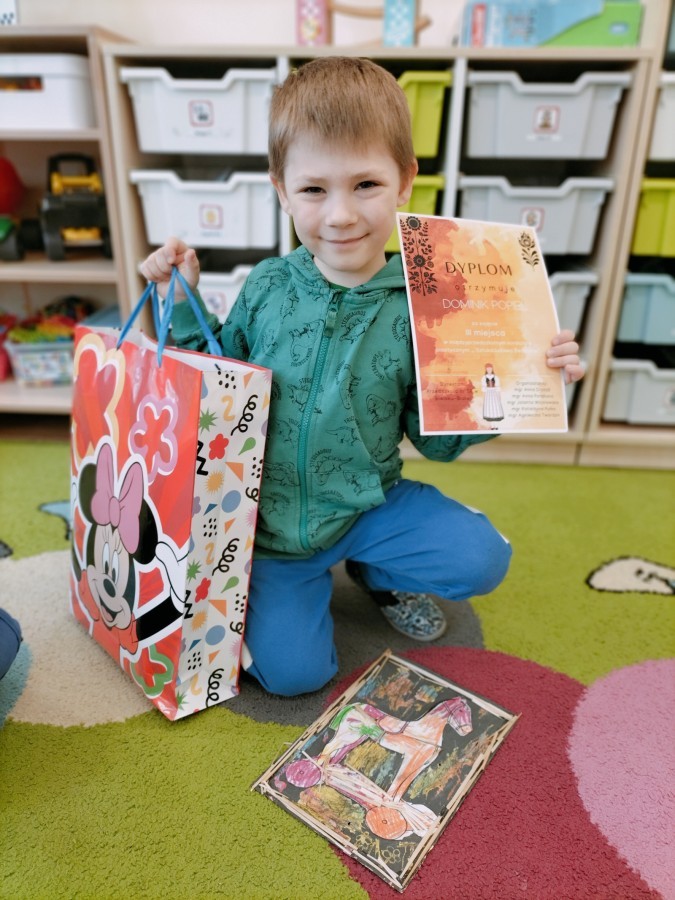 Serdecznie gratulujemy Dominikowi z grupy Biedronek, który zdobył III miejsce w między przedszkolnym konkursie plastycznym