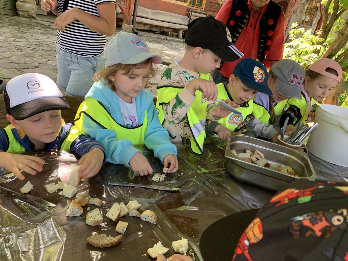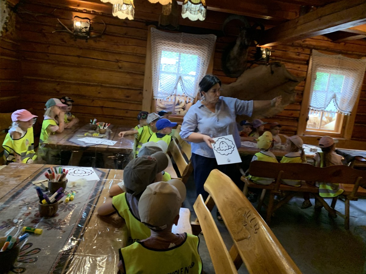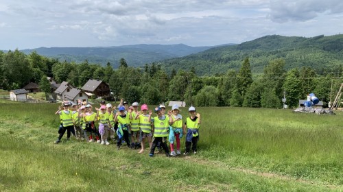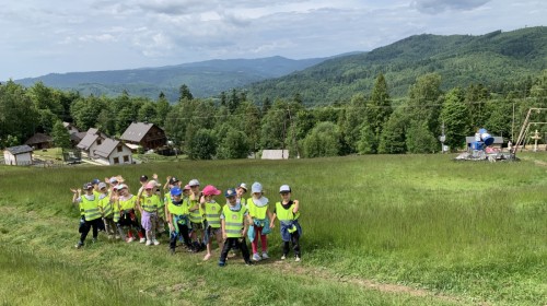 Później ruszyliśmy na spacer po okolicznych polach, gdzie dzieci mogły podziwiać piękne widoki i zaczerpnąć świeżego, górskiego powietrza. Na zakończenie dnia odbyła się wesoła góralska sesja zdjęciowa – kapelusze, ciupagi i ogrom radości sprawiły, że zdjęcia będą cudowną pamiątką tej pełnej przygód wyprawy.